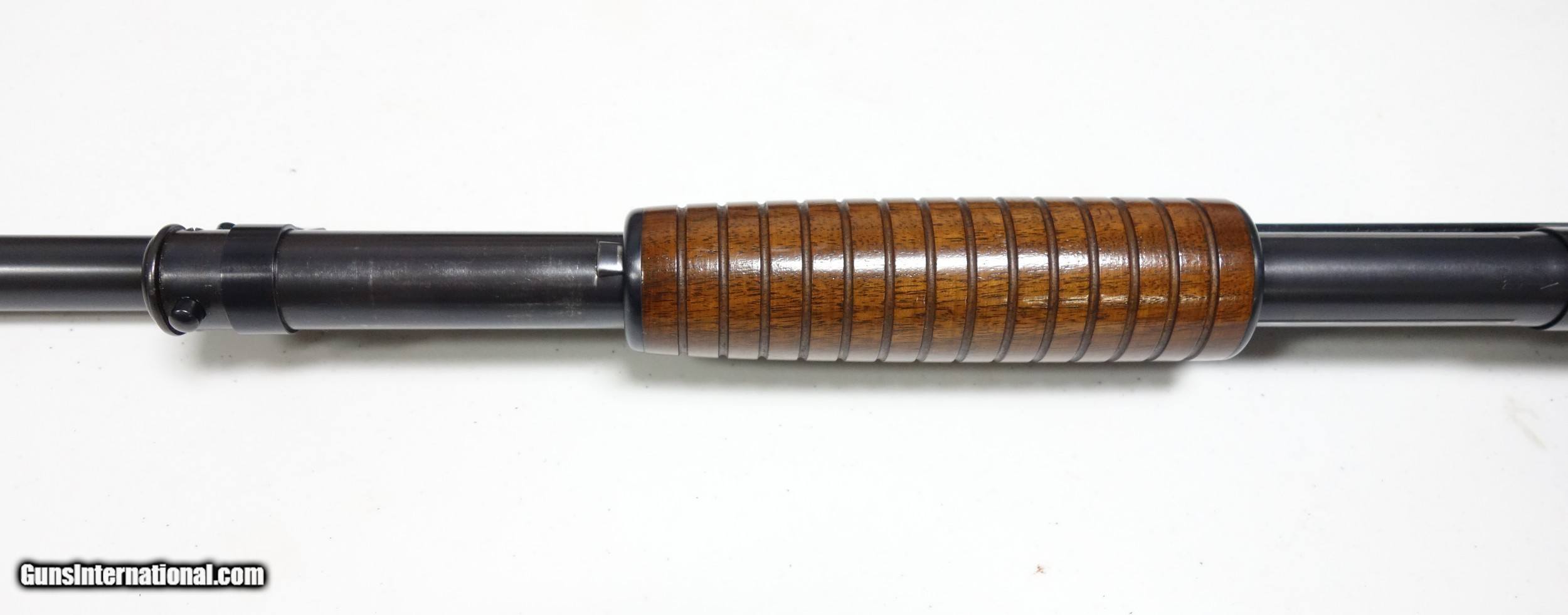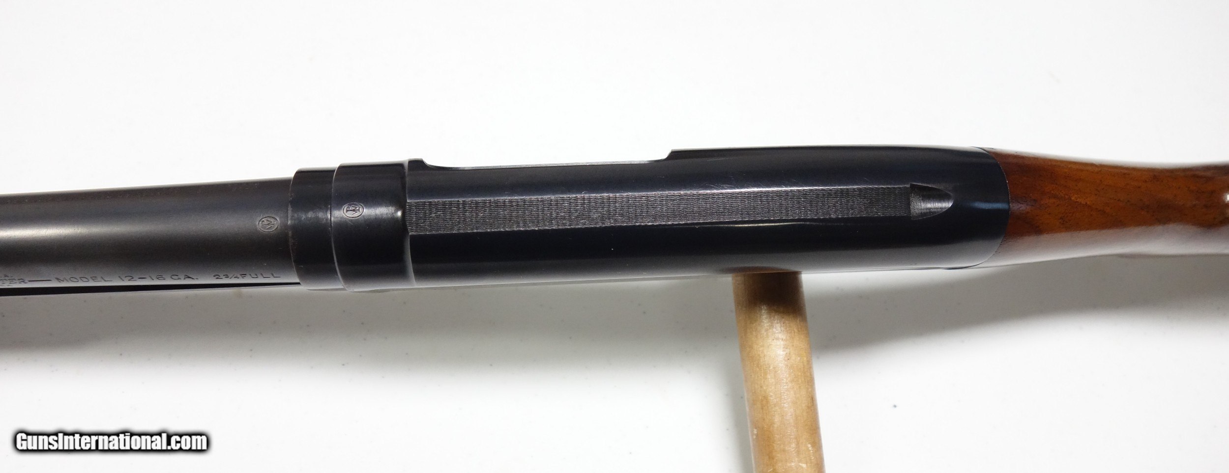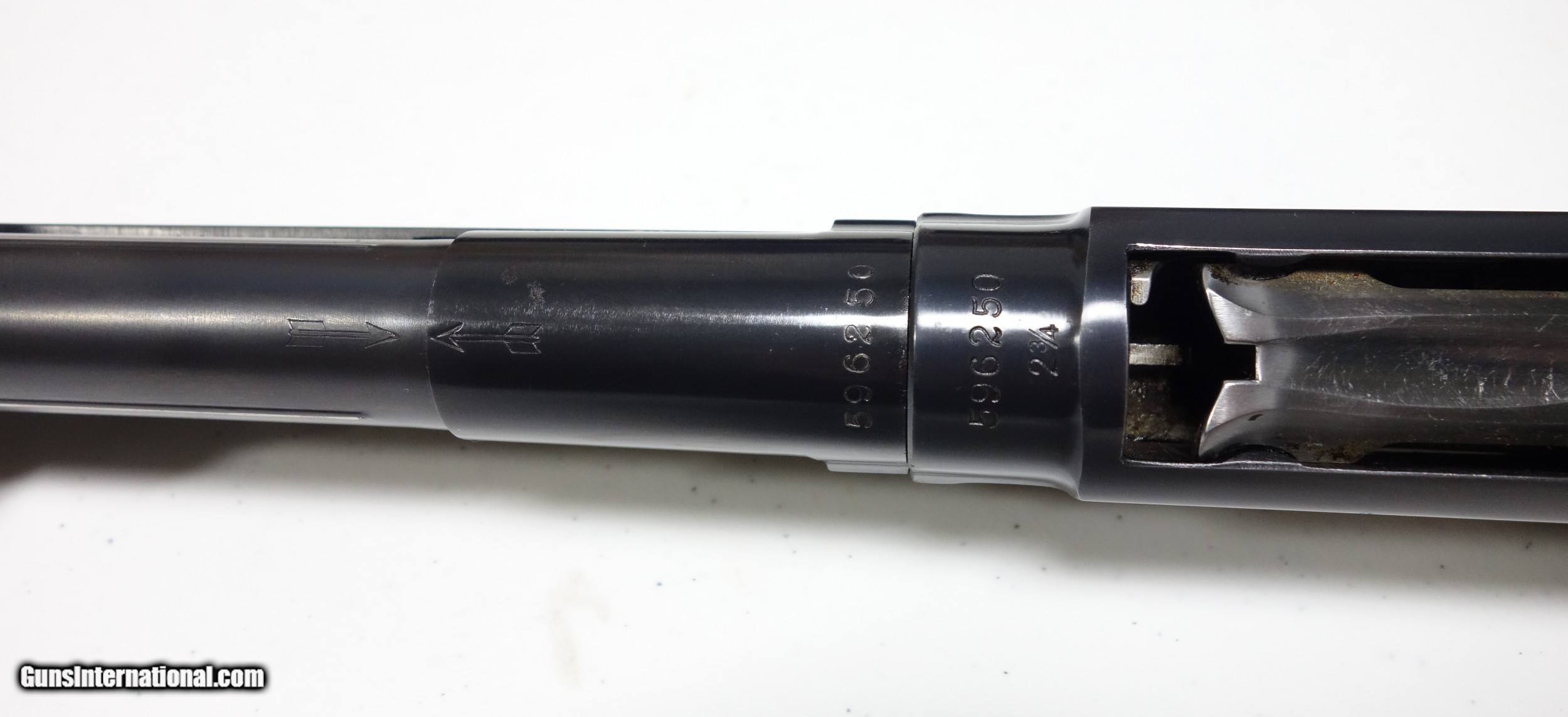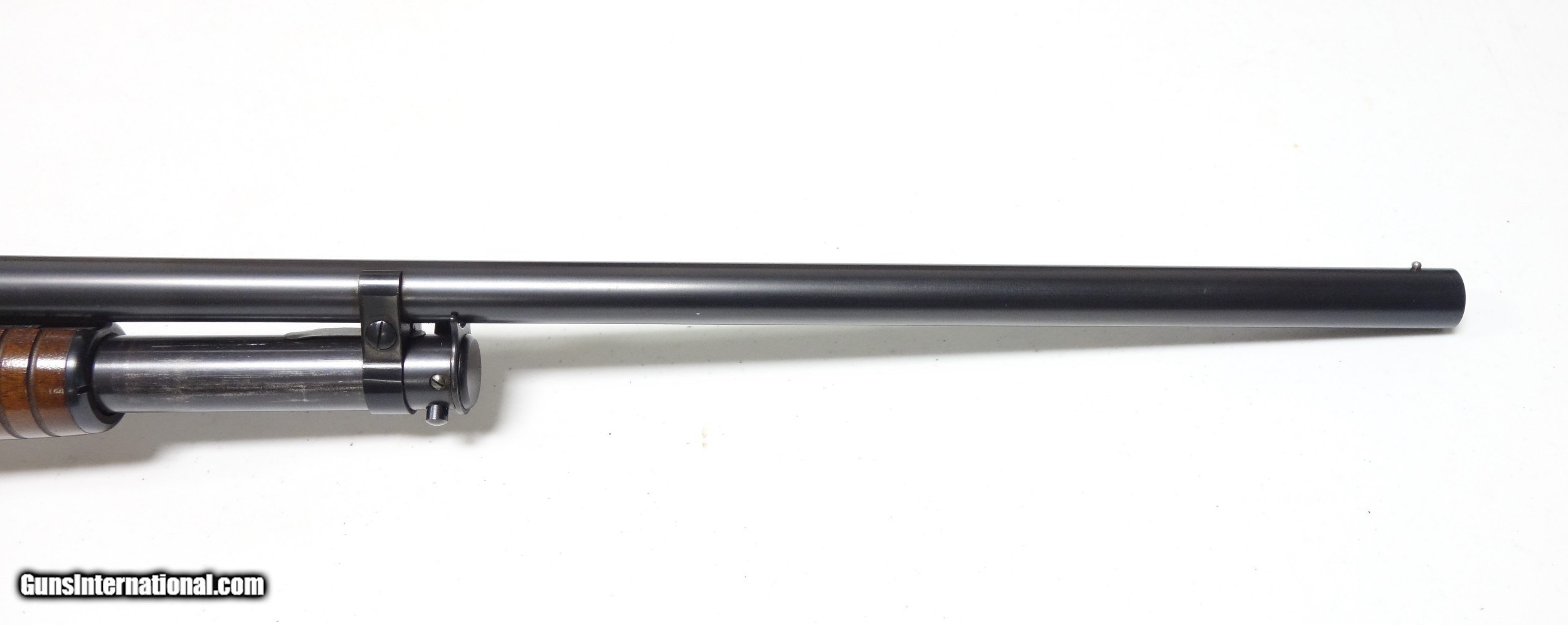 Description: Fabulous Pre War Winchester Model 12 in 16 gauge. This shotgun is 100% original in all regards and the best example I have ever seen or owned. The overall condition easily rates 98% or better with only minimal signs of handling. S/N 596*** made in 1929! The 28" nickel steel barrel has a mirror bore. The choke is Full. The chamber is 2 3/4" and is factory stamped as such on the barrel and under the receiver S/N after having made the transition from 2 9/16" shells just two years prior in 1927. The mechanics and lock up are naturally like new. There are even remnants of what appears to be factory cosmoline type grease inside of the action components and I doubt this shotgun has been fired much if any beyond factory testing. You will look long and hard to ever find one as good. SOLD Curio/Relic: Yes |