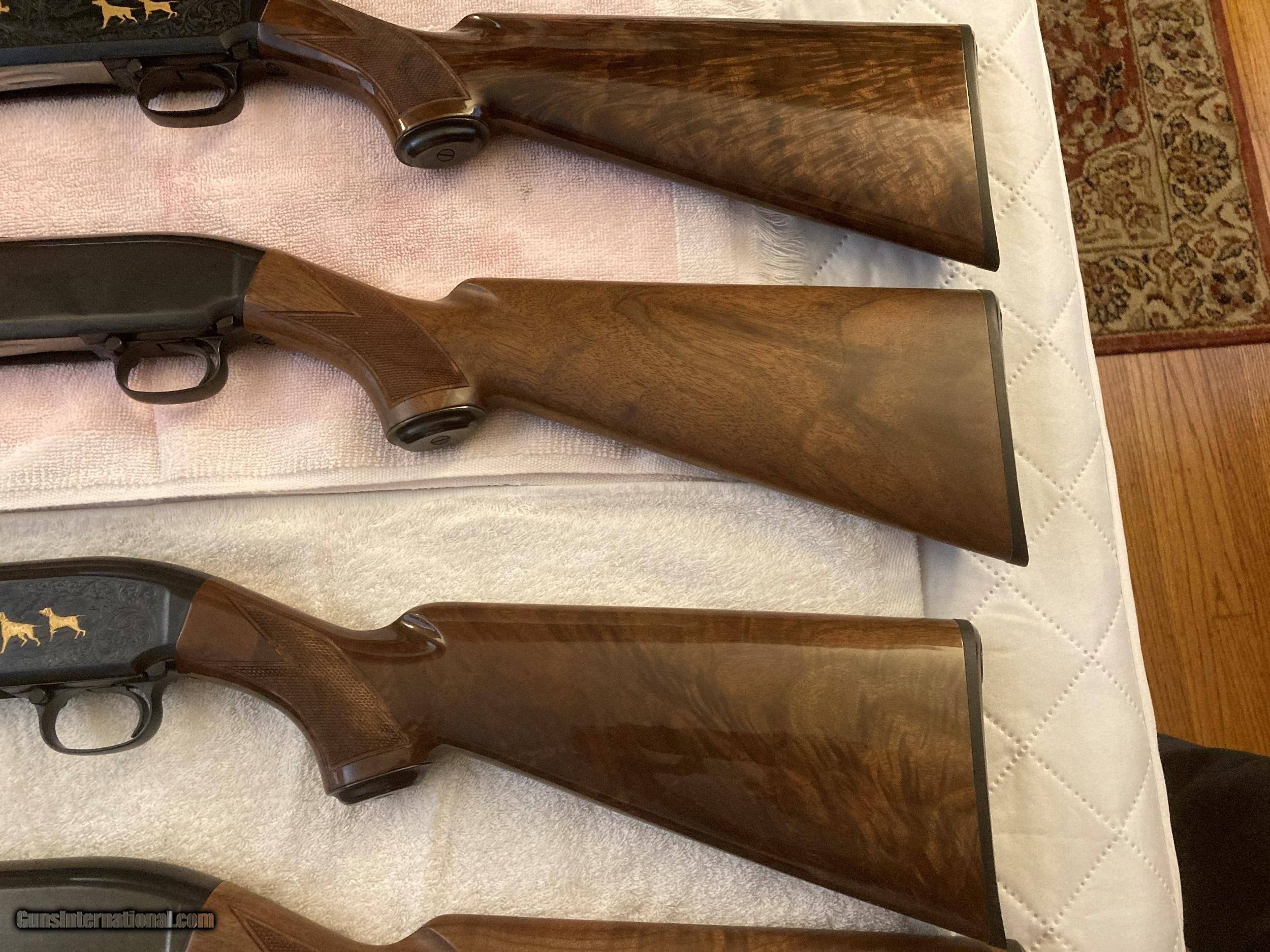 Description: Something for the man (or woman) who has everything. One of a kind, matched set of Winchester Model 12s (Browning/Miroku mfgr). Actually the .410s are Model 42, but you knew that. One each Grade I and Grade V of each gauge (20, 28 & .410). Serial numbers match. All NIB with vent ribs, beautiful wood, never fired, and except for taking pictures they have resided in a humidity controlled vault. The .410s have 3” chambers. $12,000 for the set and will ship for actual cost. I did not include all the pictures of all of them in their boxes. That seemed redundant, there are six boxes and they all look about the same. Buy with confidence. I have a 100% positive iTrader rating on the Calguns (39 transactions). SOLD Condition: New In Box |