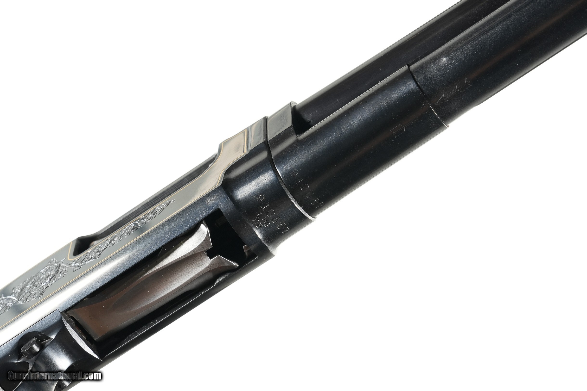 Description: Manufactured in 1941 and subsequently upgraded with gold inlaid borders around attractive scroll engraving. "ENG/DB" marked on underside of action/ Chamber marked 2 3/4", choke marked full, and 14" LOP. Condition. Excellent retaining most all custom finishes. Mechanically excellent. • Free Shipping, No Credit Card Fees. • Lay-a-way available for this firearm. • 1/3 Down, a 1/3 in 30 Days 1/3 in 60 Days. SOLD Curio/Relic: Yes Shotgun Gauge: 16 Gauge Manufacturer: Winchester Model: 12 Serial Number: 912657 Barrel Length: 28 |