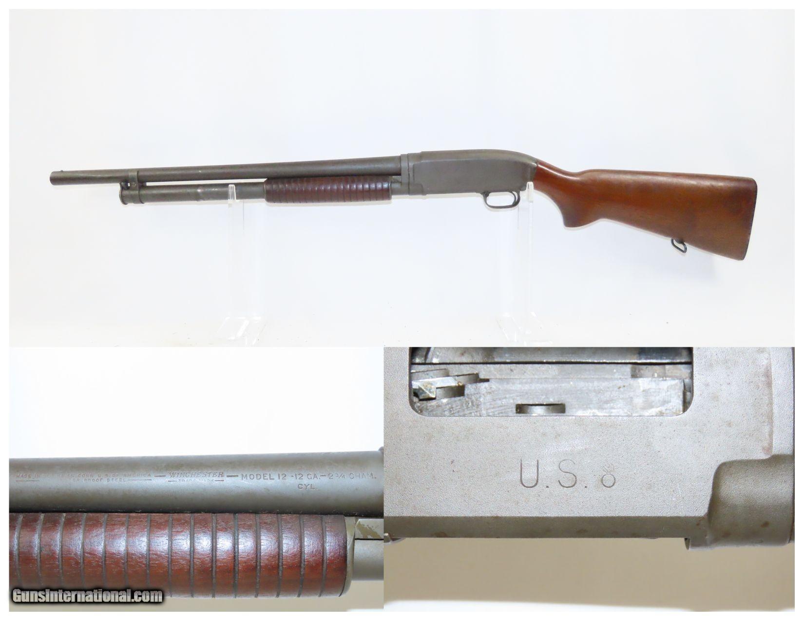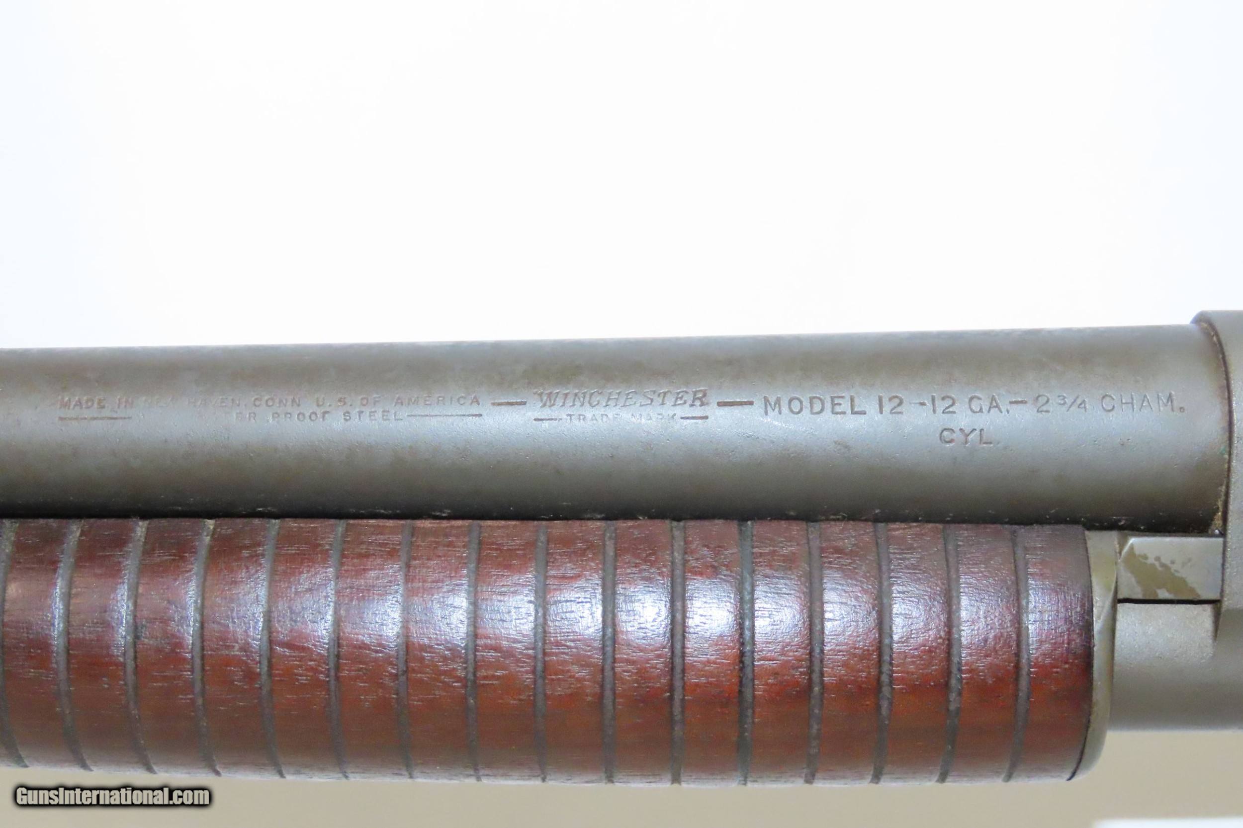 US Ordnance WINCHESTER Model 12 Slide Action RIOT SHOTGUN wFLAMING BOMB C&R WORLD WAR II 1942 Manufactured in New Haven, Connecticut