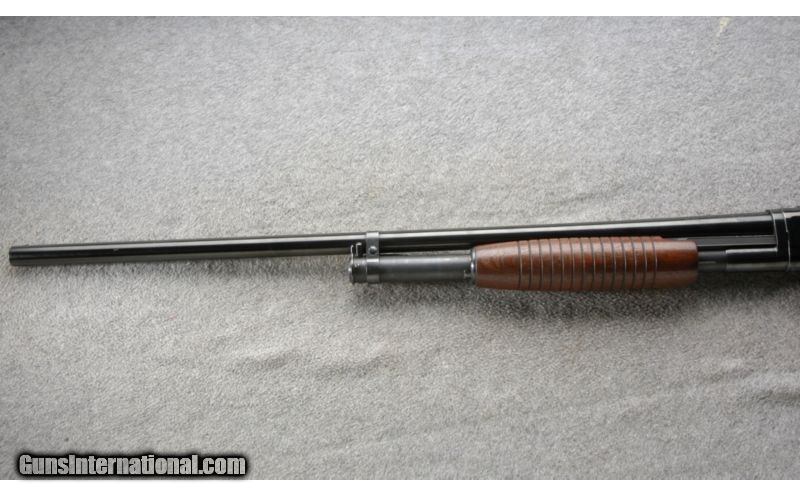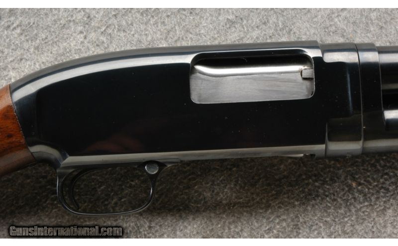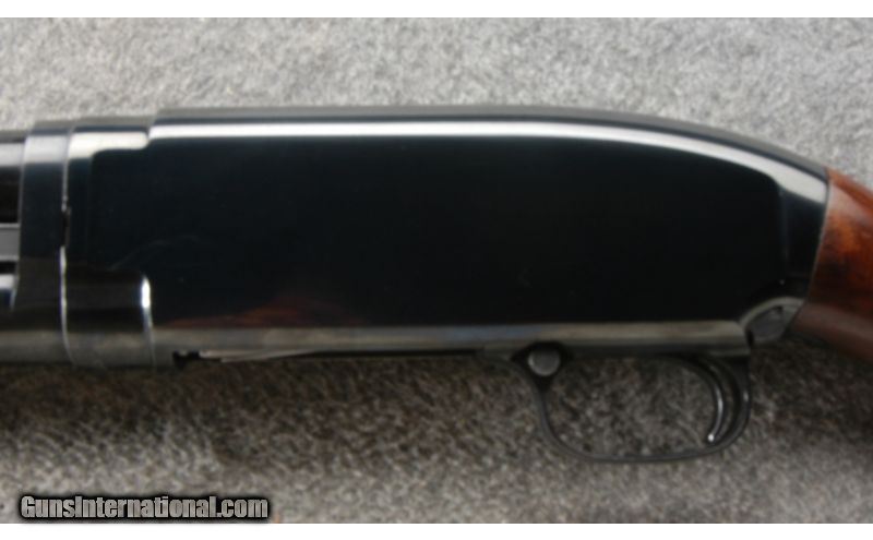 Description: This is a very high conditioned Winchester Model 12 shotgun. The shotgun has a 30 inch blue barrel with a fixed full choke. The blue is very close to new looking and the wood only has a very few small dings.**DON'T FORGET TO PUT THE FIREARM ON YOUR CABELA'S CLUB VISA AND EARN POINTS TOWARDS YOUR NEXT PURCHASE! ** SOLD Curio/Relic: Yes Manufacturer: 1958 Caliber Info: 12 Gauge. Chambers: 2 3/4 inch pump action. Metal Condition: Excellent. Wood Condition: Excellent. Bore Condition: Bright and shiny. Barrels: 30 inch blue. Triggers: SIngle blue. Stock: Nice but plain American walnut with a pistol grip. Stock Dimensions: 13 7/8 inch LOP. Fore End: 14 rib round matching walnut. Butt Pad: Winchester black butt plate. Weight: 7 Lbs 8 Oz. Sights: Single front bead. Chokes: Fixed FULL. Item Location: Avon, OH |