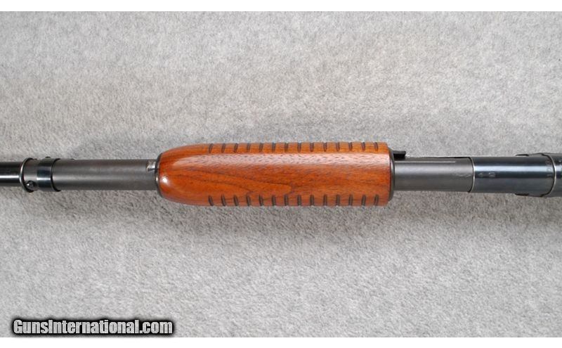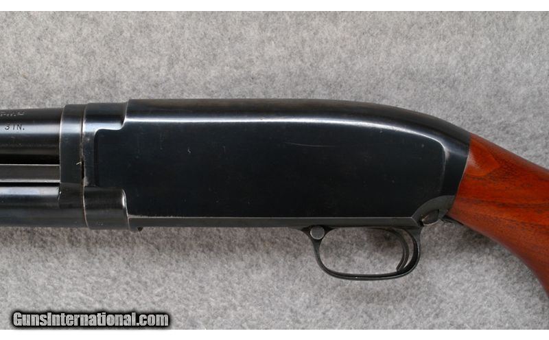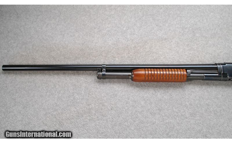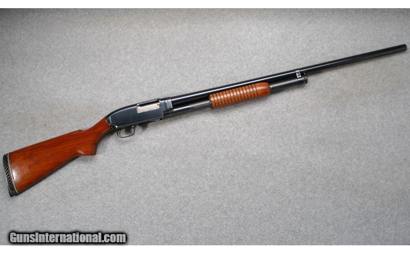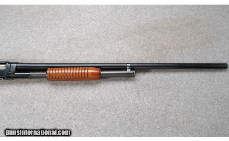 Description: 12 Gauge SOLD Chambers: "3"", pump action repeater. Metal Condition: Good Wood Condition: Very good. (stock has been cut) Bore Condition: Good. Barrels: "30"", blued. Triggers: Single. Stock Dimensions: 13 5/8" LOP. (stock has been cut) Fore End: Matching walnut with cob grooves. Butt Pad: Rubber pad. Weight: 8 lb. 14 oz. Sights: "Plain barrel, single bead. Chokes: Fixed full. Item Location: Dundee, MI |