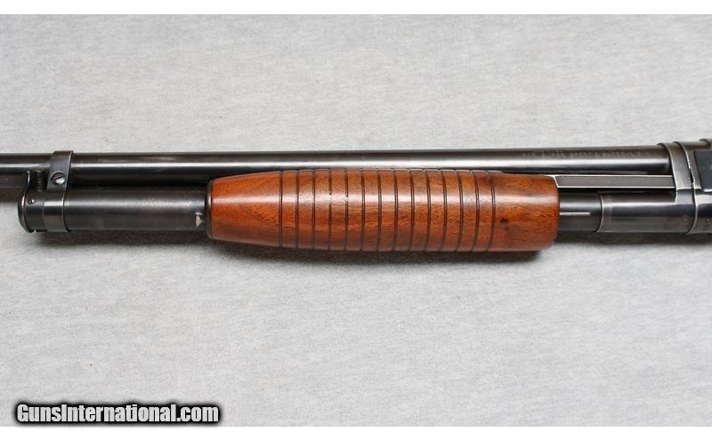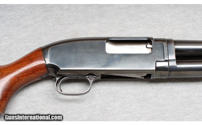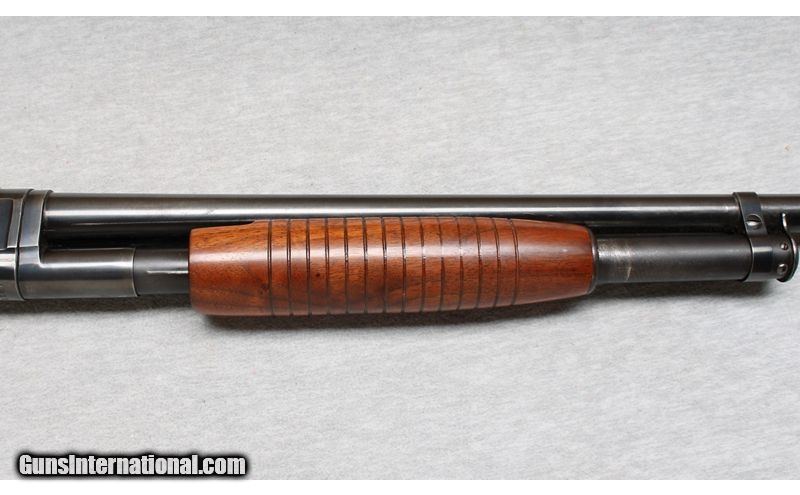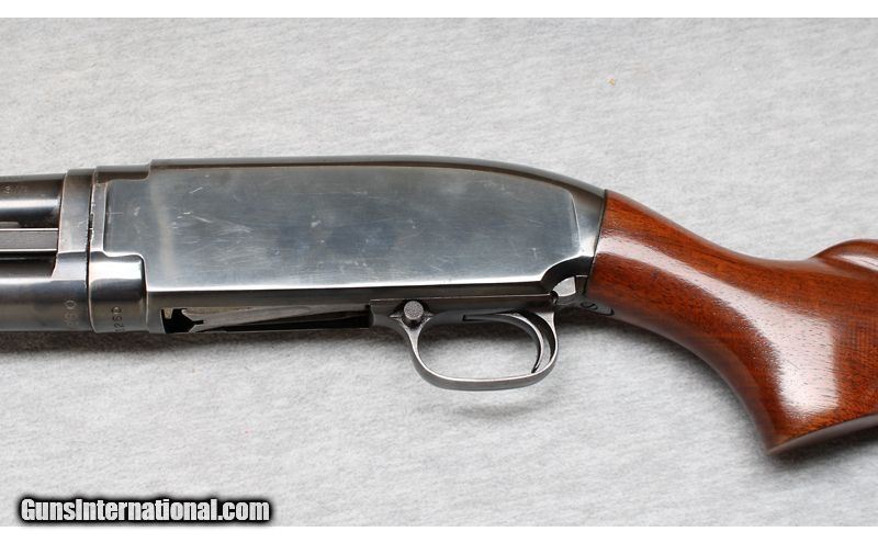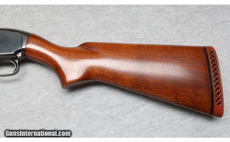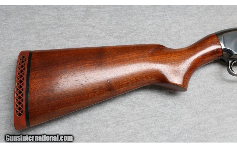 Description: Very good, some finish wear, small nicks and scratches. Pump action 12 gauge with 30" barrel, 3" chamber, full choke, and factory recoil pad, manufactured in 1960. 12 Gauge SOLD Chambers: 3 Metal Condition: Very good Wood Condition: Very good Bore Condition: Bright Barrels: 30 Triggers: Factory Stock Dimensions: 13 3/4" LOP Fore End: Ribbed Butt Pad: Factory pad Sights: Single silver bead Chokes: Fixed full Item Location: La Vista, NE |