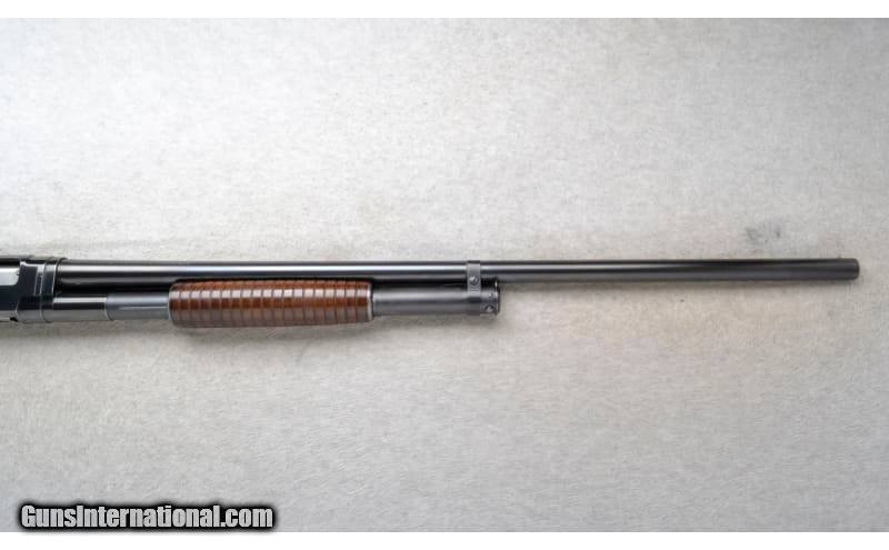 Description: This Winchester Model 12 is a right hand pump action shotgun in 12 Ga. It has a 30 inch barrel with a metal bead front sight. With a 2 3/4 inch chamber it has a fixed Full choke. The butt stock is a smooth grip walnut pistol grip. The forearm is a grooved grip walnut. Serial number 810650 (1939). This gun appears to have been refurbished. 12 Gauge SOLD Chambers: 2 3/4 inch. Metal Condition: Very Good. A little light freckling. Appears reblued. Wood Condition: Very Good. Some minor handling marks. Appears refinished. Bore Condition: Shiny. Barrels: 30 inch. Stock Dimensions: LOP 14 inch. Fore End: Grooved grip walnut. Butt Pad: Winchester checkered black plate. Weight: 7 lb. 10 oz. Sights: Metal bead front. Chokes: Fixed Full. Item Location: Richfield, WI |
