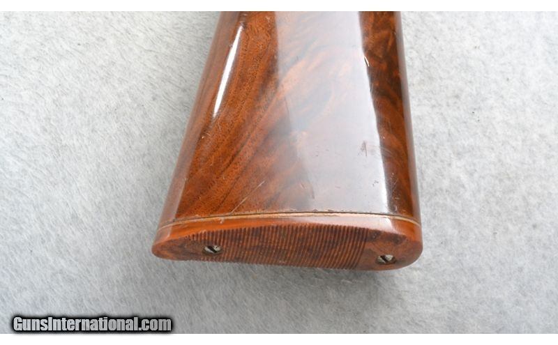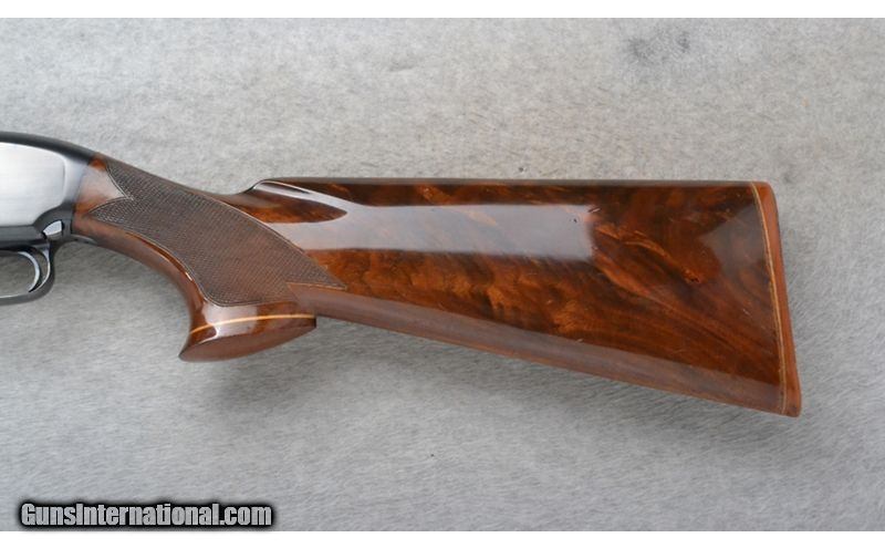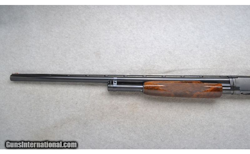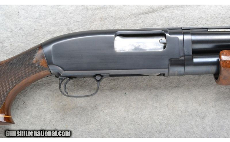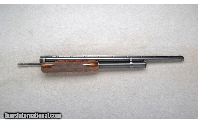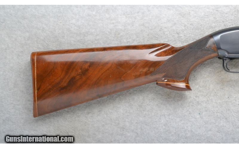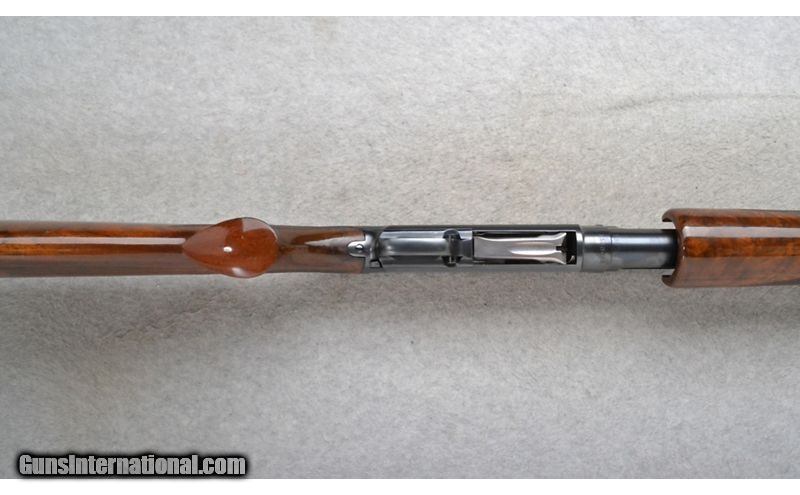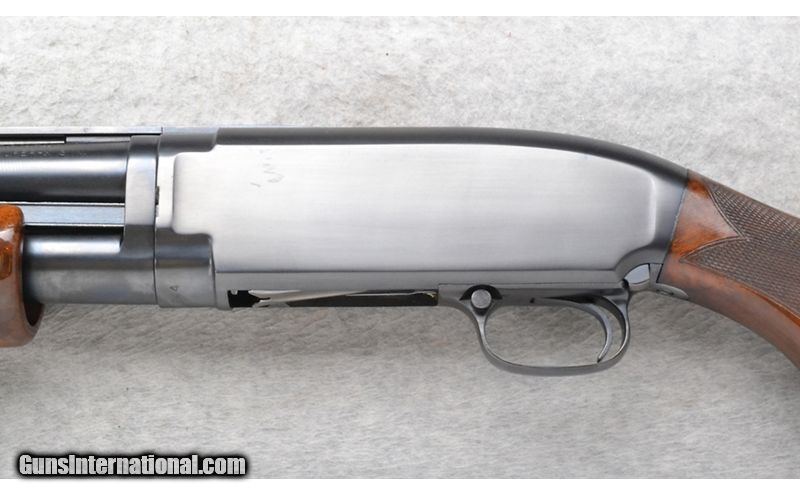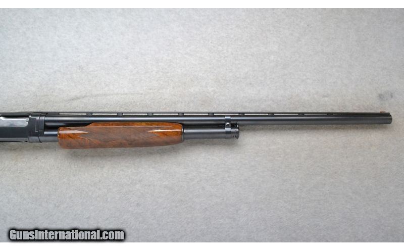 Description: This Winchester Model 12 is a 12 Ga. pump action shotgun that comes with two barrel assemblies. A 30 inch barrel and 26 inch barrel both with ventilated ribs. The 30 inch has a 3 inch chamber and fixed Full choke. The 26 inch is 2 3/4 inch chamber with a fixed Imp. Cyl. choke. The butt stock is a checkered grip walnut pistol grip with a rosewood cap. The forearm on both assemblies is a checkered grip walnut. S/N 1388644 (1953). Appears to have been reblued. 12 Gauge SOLD Chambers: 30 inch barrel is 3 inch. 26 inch barrel is 2 3/4 inch. Metal Condition: Very Good. Has been reblued. Wood Condition: Good. Has many light handling marks. Bore Condition: Shiny. Barrels: 30 inch barrel with a ventilated rib. 26 inch barrel with a ventilated rib. Stock Dimensions: LOP 14 1/8 inches. Fore End: Checkered grip walnut. Butt Pad: Grooved hard plastic. Weight: 8 lb. 12 oz. Sights: Red high visibility front. Chokes: 30 inch barrel is fixed Full. 26 inch barrel is fixed Imp.Cyl. Item Location: Richfield, WI |
