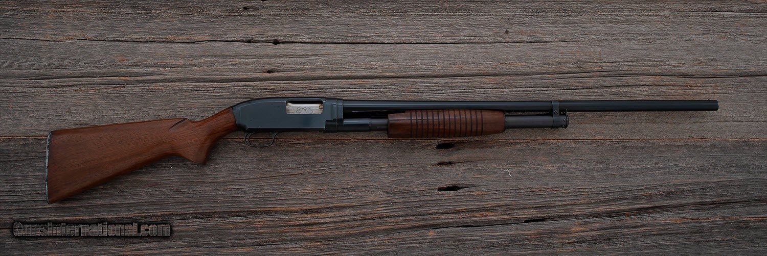 Description: Winchester - 12 - 12 ga - Item Number: WIN1722850 Shotgun type: Pump Action Action: Pump Ejectors: Yes Trigger: Single Grip: Pistol Grip Forend: Ribbed Lop: 14 " Type of butt: Factory Drop comb: 1 5/8 " Drop heel: 2 3/8 " Cast amount: 1/8 " Cast: On Weight: 7 lbs, 10 oz Manufactured in: USA Finish: Blue Overall condition: Good Stock condition: Good Metal condition: Good Stock: Original finish Metal: Original finish Type of Case: none Extra barrels: 0 Barrel info: Gauge: 12 ga Chamber: 2 3/4 " Length: 28 " Chokes: Mod Comments : Very nice example, original from the fifties. SG-127 SOLD |