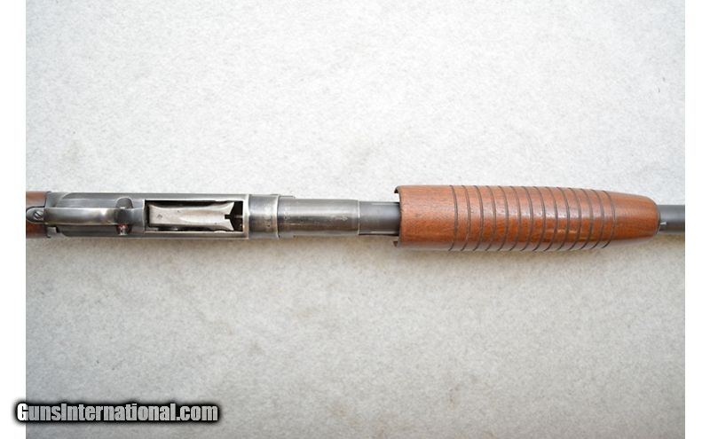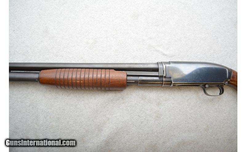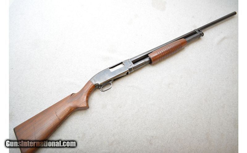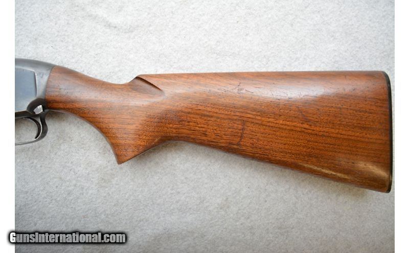 Description: Good shape overall but not really a collector grade example. The metal has been reblued; at least on the barrel. Some of the roll stamps on the barrel are a bit shallow and "faded". It would stand to reason that the receiver was redone as well. There are no obvious signs of rust, so it has that going for it. The furniture is well-worn but overall in good shape despite the scratches and such. Sources indicate 1954 as the year of manufacture. 12 Gauge SOLD Curio/Relic: Yes Chambers: Pump-action fed from a tubular magazine and chambering up to 2¾" shells. Metal Condition: Good. Wood Condition: Fair to good. Bore Condition: Excellent. Barrels: 28" Blued. Triggers: Blued metal with smooth face. Stock Dimensions: Smooth hardwood with 14" LOP. Fore End: Ribbed hardwood. Butt Pad: Black plastic plate. Weight: 7lbs 8oz Sights: Stainless front bead. Chokes: Fixed modified choke. Item Location: Green Bay |