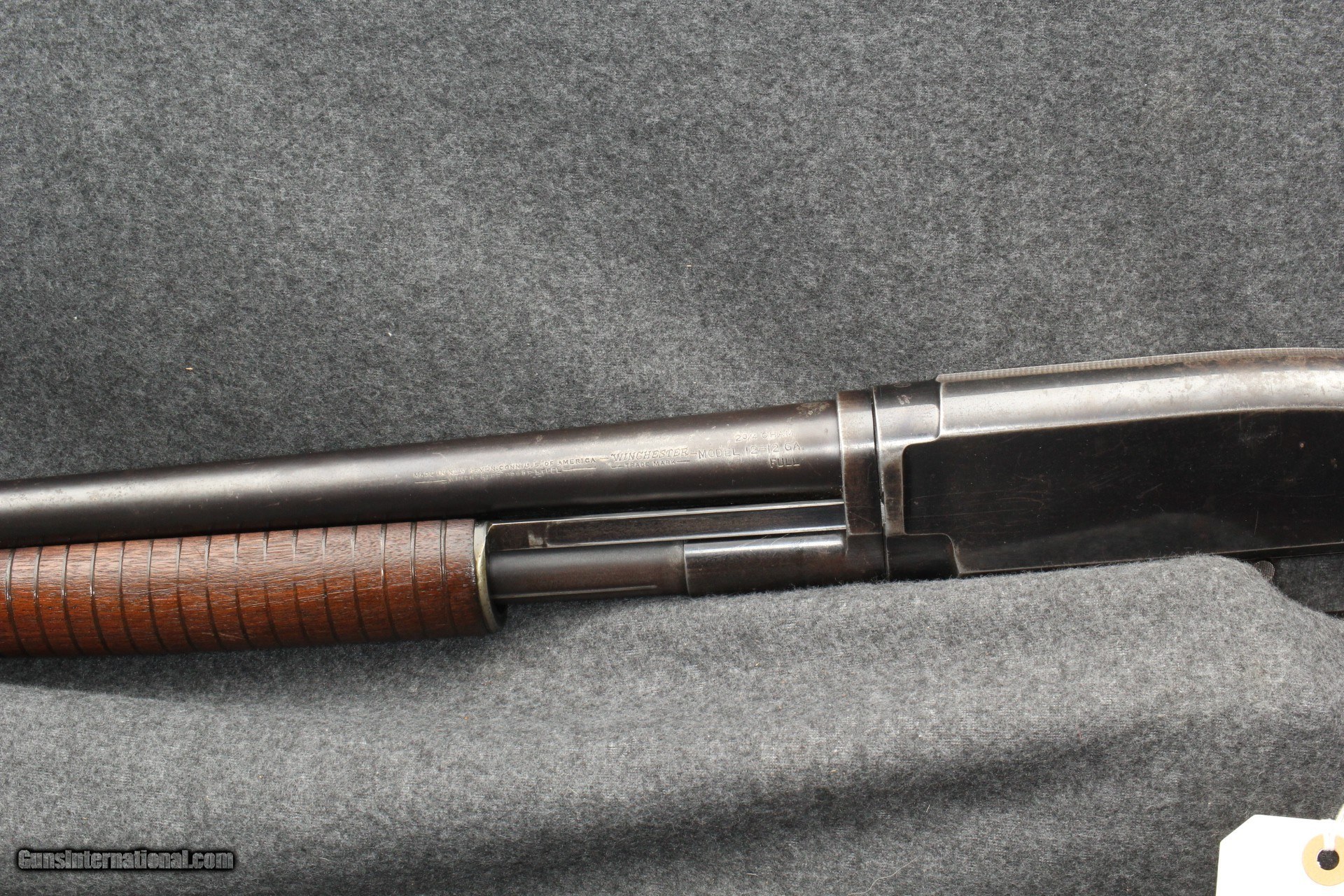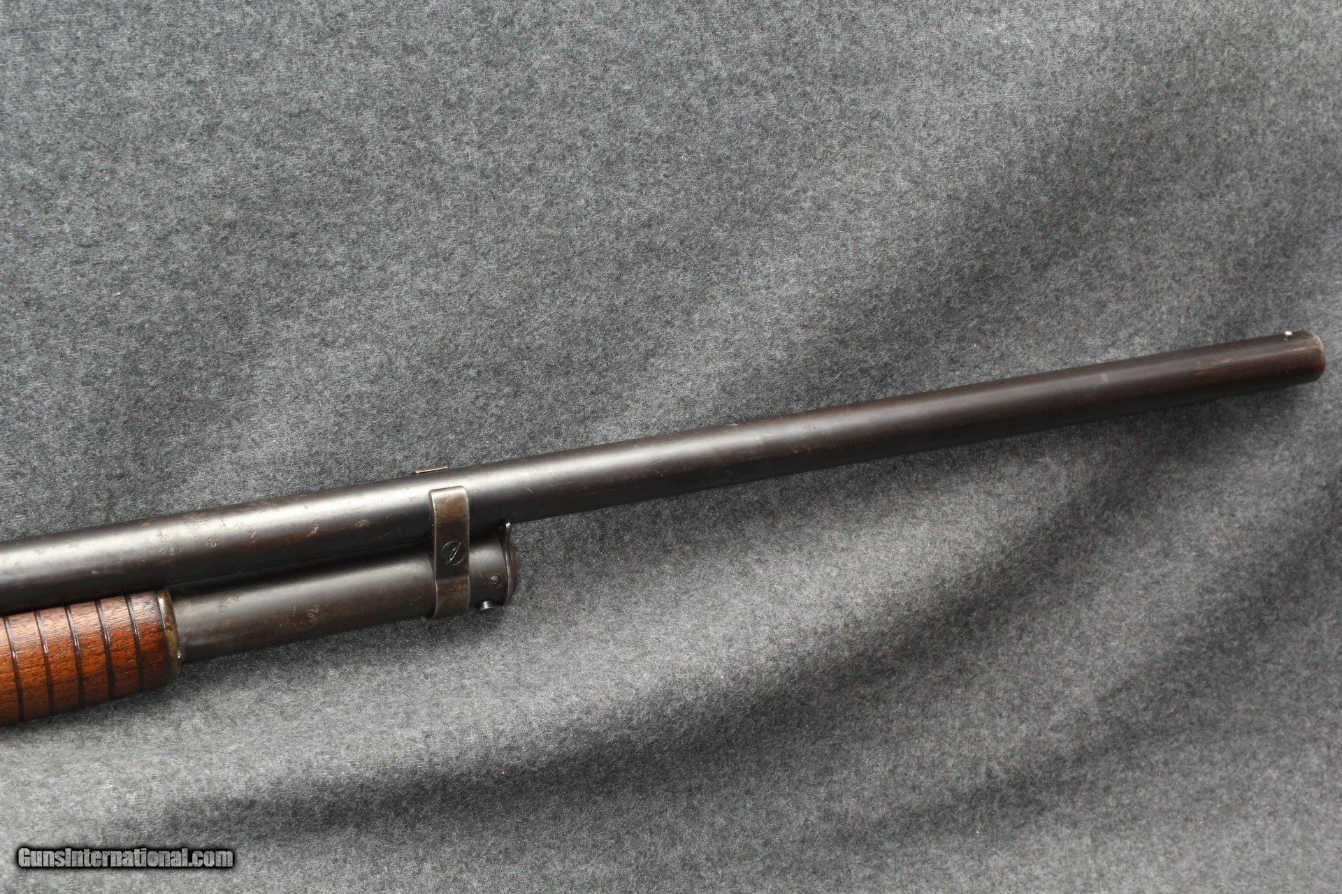 Description: 12ga, serial number 8955XX. 30" plain barrel, 2 3/4" chambers, fixed choke (full). Mfg 1942. Overall in fair condition-good condition. Finish has been added to buttstock and forend. Factory buttplate. Wood shows marring from use. No apparent cracks. Corn cob forend, normal wear. Metal shows moderate blue wear, normal use. Heavier on top of receiver and sharp edges. Flecking on receiver and barrel, heavier at top of receiver. Bore is excellent. More photos on request. Will ship to C&R. Please add $60.00 for shipping and insurance. SOLD Curio/Relic: Yes Shotgun Gauge: 12 Gauge |