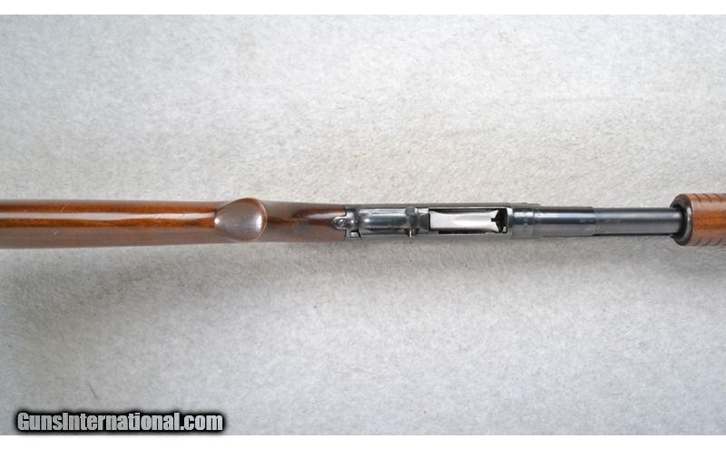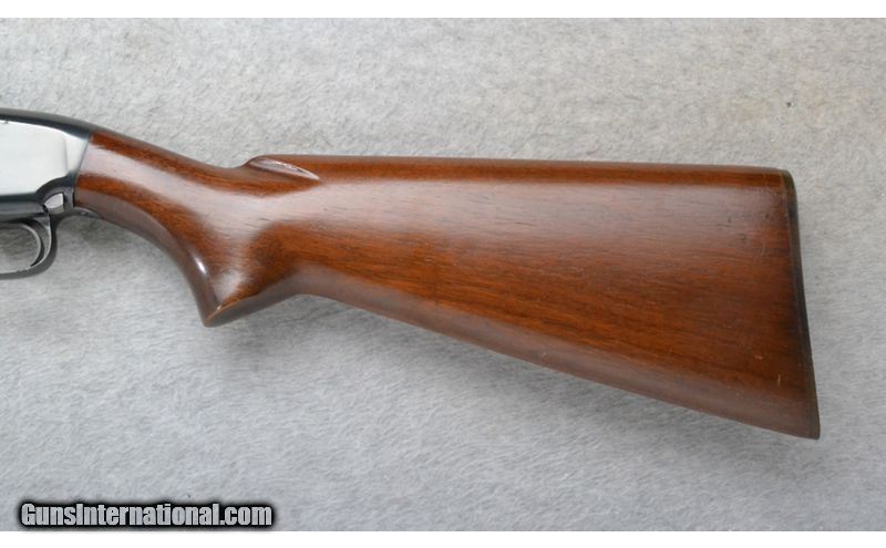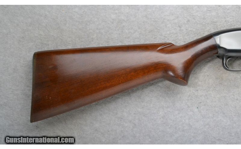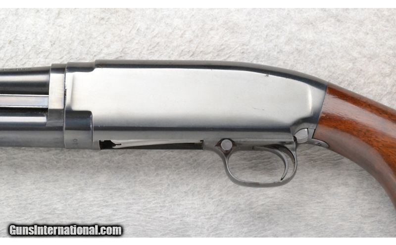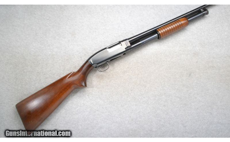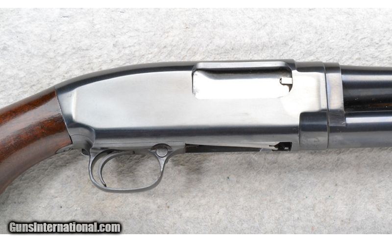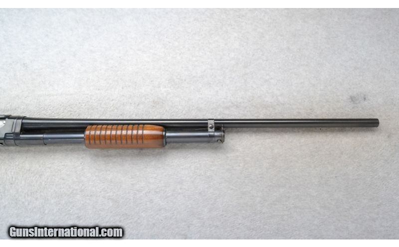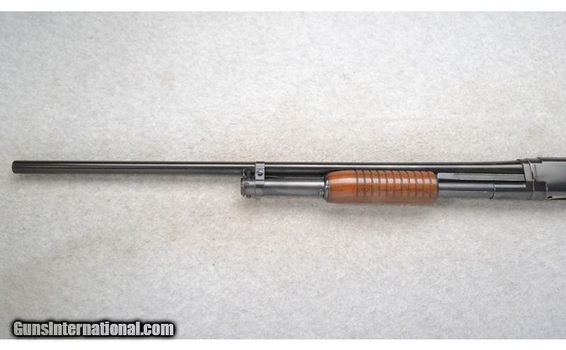 Description: This Winchester Model 12 is a 20 Ga. pump action repeating shotgun. It has a 28 inch barrel with a front metal bead. With a 2 3/4 inch chamber it has a fixed Full choke. The butt stock is a smooth grip walnut pistol grip. The forearm is a grooved grip walnut. This gun has been refinished. Serial Number 1170120 (1947). 20 Gauge SOLD Chambers: 2 3/4 inch. Metal Condition: Very Good. Minor freckling on the receiver. Has been reblued. Wood Condition: Very Good. Minor handling marks. Appears refinished. Bore Condition: Shiny. Barrels: 28 inch. Stock Dimensions: LOP 14 inches. Fore End: Ribbed grip walnut. Butt Pad: Winchester checkered black plate. Weight: 6 Lb. 6 Oz. Sights: Metal front bead. Chokes: Fixed Full. Item Location: Richfield, WI |