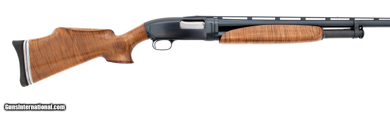 Description: Winchester - 12 Custom Trap - 12 ga - Item Number: WINY2015564 Shotgun type: Pump Action Action: Pump Ejectors: Yes Trigger: Single Grip: Pistol Grip w/Palm Swell Forend: Not Checkered Lop: 14 1/4 " Pad thickness: 1.25 " Type of butt: Adj. Buttplate Drop comb: 1 1/2 " Drop heel: 2 5/8 " Cast amount: 0 " Cast: Weight: 8 lbs, 10 oz Manufactured in: USA Manufacture Year: Finish: Blue Overall condition: Very Good Stock condition: Very Good Metal condition: Very Good Stock: Restocked Metal: Original Type of Case: none Extra barrels: 0 Barrel info: Gauge: 12 ga Chamber: 2 3/4 " Length: 30 " Chokes: Full Rib type: Ventilated Comments : A very nice custom. SG-1 SOLD |