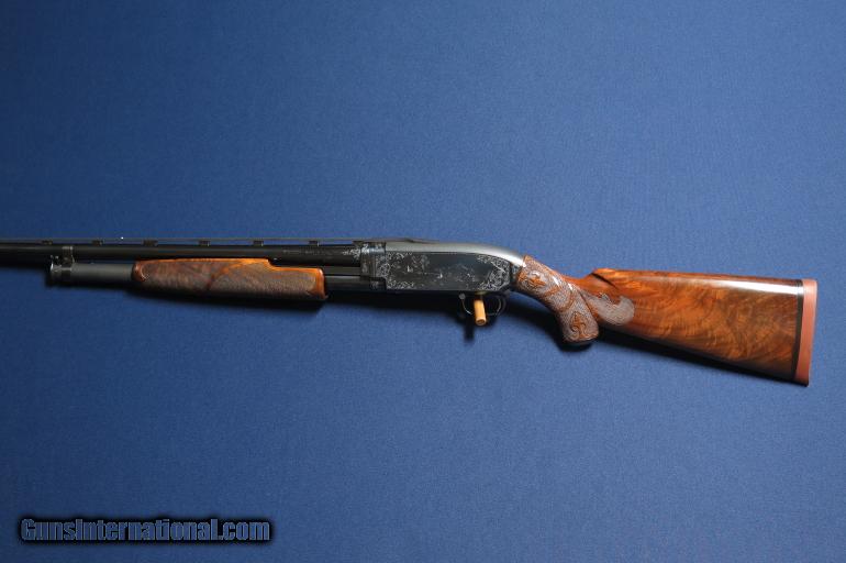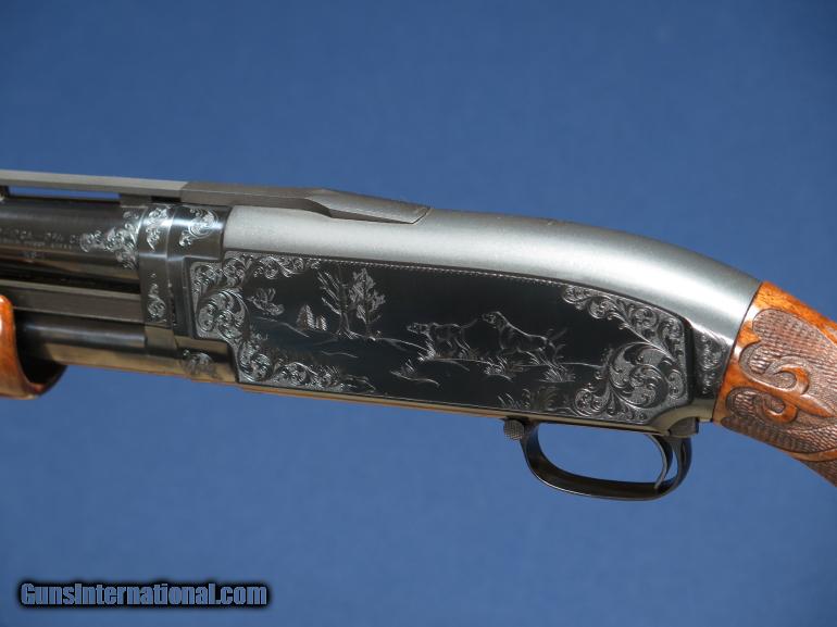 Description: Winchester 12 Pigeon Skeet #5 engraved 12ga. B carved wood. 26" factory duckbill vent rib. WS1 choke. 14 1/2 LOP Win pad. 1 3/8 comb, 1 5/8 heel. SN 1,897,XXX. Excellent bore. SOLD |