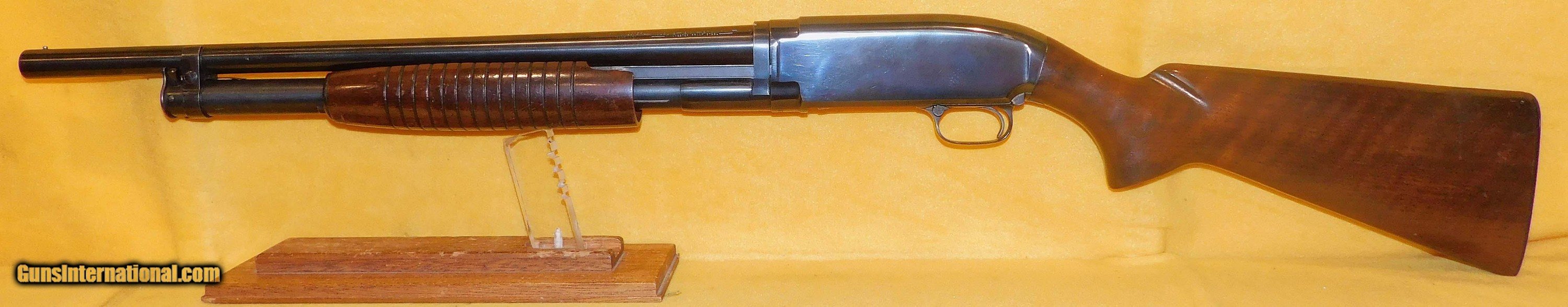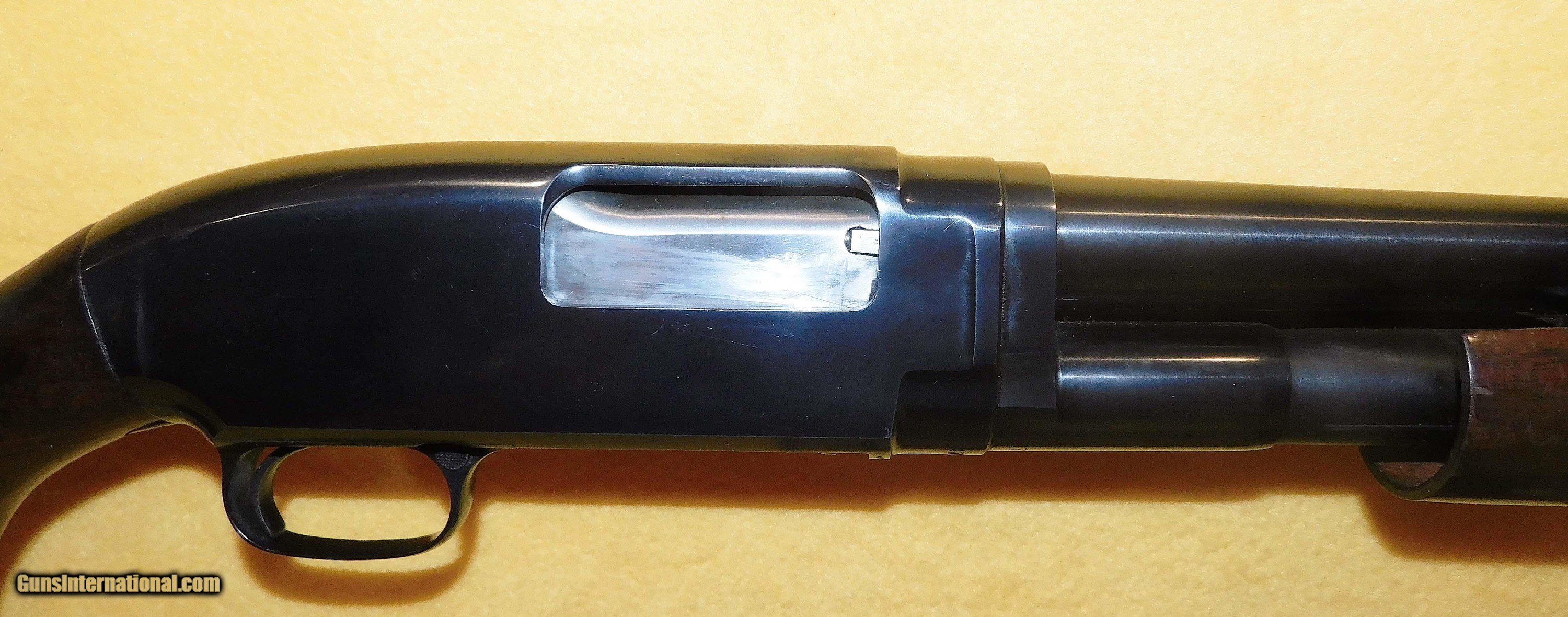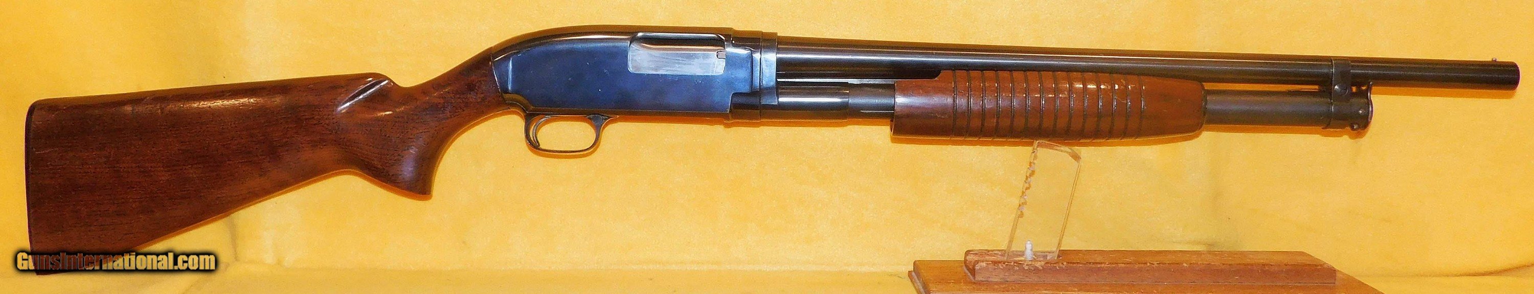 Description: WINCHESTER 12 RIOT GUN IN 12 GA., CAL., WITH 20" BARREL. COLOR BLUE. CONDITION 96%+. SERIAL NUMBER 1739316. WINCHESTER MODEL 12 PUMP RIOT GUN (CIRCA 1959) IN 12 GAUGE CALIBER, MIRROR BORE, WOOD EXCELLENT, 2 ¾” CHAMBER, FIXED CYLINDER BORE, THIS HAS BEEN IN A POLICE STATIONS INVENTORY SINCE 1959, 96%+ OVERALL CONDITION, OUR STOCK # D3389 SOLD |