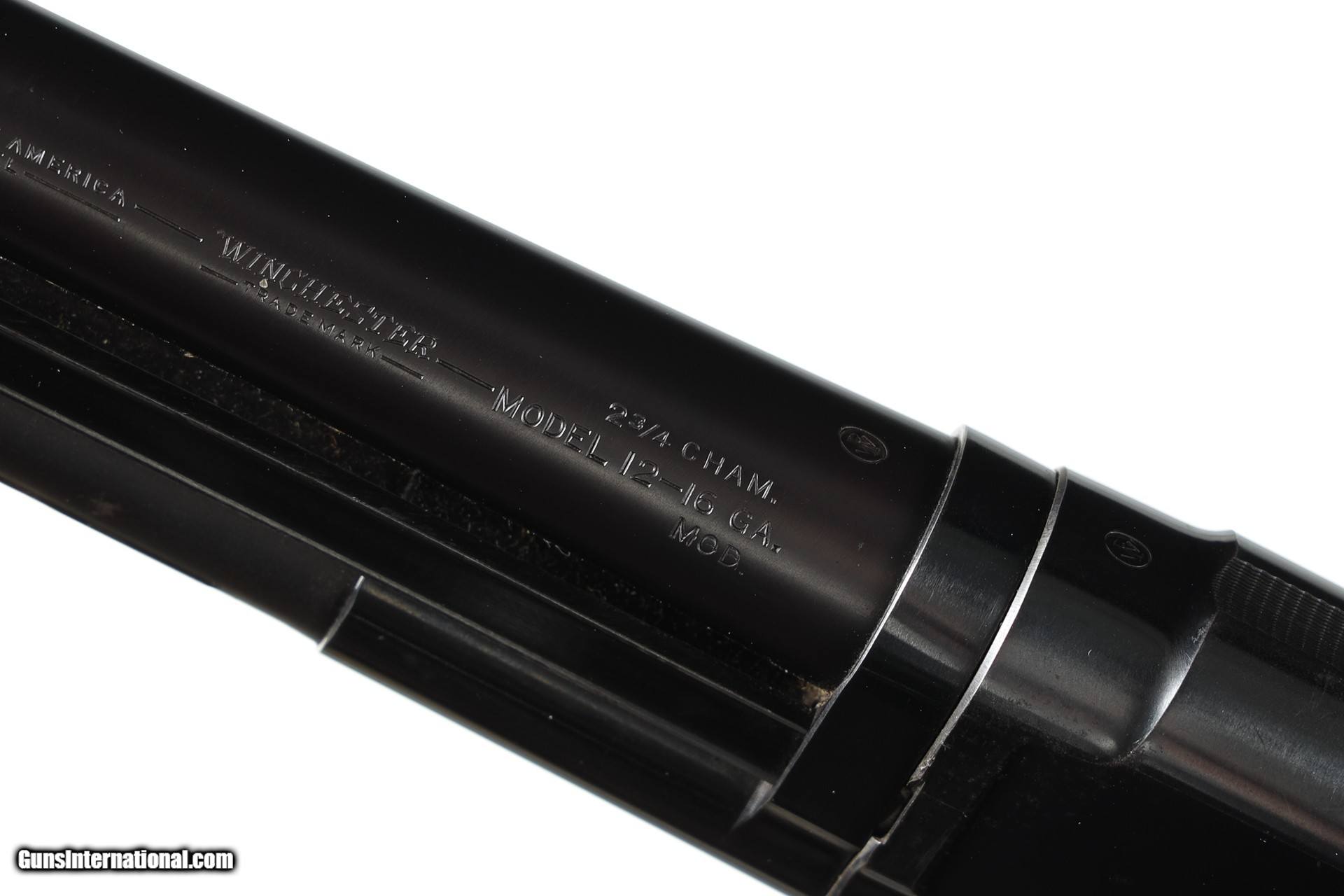 Description: Metal surfaces rate very good with a few areas of spotting and finish loss, light mars and abrasions to wood. Choke improved cylinder, LOP 14". The Winchester Model 12 slide-action 16-gauge shotgun is an iconic piece of shotgun history. This classic design features a round grooved forearm and smooth pistol grip stock with checkered plastic Winchester buttplate, single bead sight and bears the standard markings for this model. A smooth walnut stock is met by a 28” barrel sporting a nice, blued finish. This shotgun, formerly known as the “Perfect Repeater”, set the standard for pump-action shotguns for many decades following its release. • Free Shipping, No Credit Card Fees. • Lay-a-way available for this firearm. • 1/3 Down, a 1/3 in 30 Days 1/3 in 60 Days. SOLD Curio/Relic: Yes Manufacturer: Winchester Model: 12 Serial Number: 886390 Barrel Length: 28 |