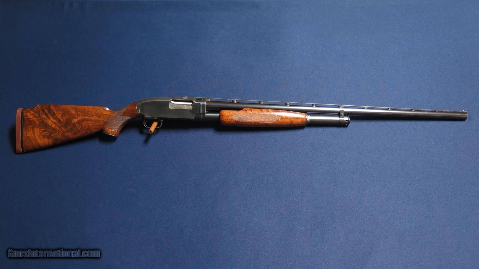 Description: ***SOLD****Winchester model 12 Trap 12ga. 1949 mfg. 30 inch duckbill 2 pin vent rib barrel. Full choke. Checkered wood Monte Carlo stock. 14 1/2 LOP Winchester pad. Original finish. Gun shows some hunting use. No cracks in wood. Excellent bore. SOLD Curio/Relic: Yes Shotgun Gauge: 12 Gauge |