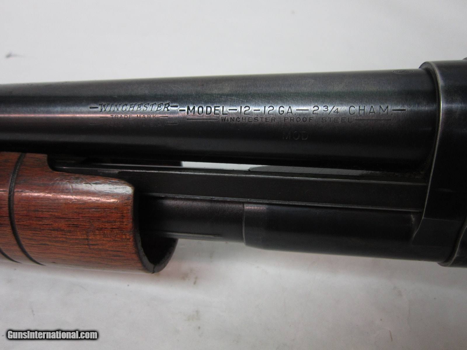 Description: Guns Listing ID: 850892 MAKE: Winchester MODEL: 12 ACTION: Pump CALIBER: 12 gauge FINISH: Blued TYPE OF STOCK: Wood CONDITION: Good (antique) BARREL LENGTH: 28\" OVERALL LENGTH: 47 1/2\" PULL LENGHT: 14\" SCOPE: N/A SIGHTS: Silver bead NUMBER OF MAGS: N/A CAPACITY: 5+1 CHOKE TYPE: Modified (.712\") CASE: N/A ACCESSORIES: N/A SERIAL #: 1863234 ADDITIONAL DESC: A good condition antique shotgun, that shows it‚‚s age and a little use in the field. There are no real signs of abuse or neglect. The original blue finish has faded a bit, but it has not changed to patina. The underside of the receiver does not have the usual finish wear from being carried hours on end in the field. The shotgun has surprisingly good bore, chamber and choke. It will make someone a nice shooter. Sorry, but there is no factory box, paper work, second barrel, or any other tools or accessories for the rifle. While the rifle has been cleaned, lubed and inspected by our gunsmith, it has not been test fired SOLD Manufacturer: WINCHESTER Model: 12 Condition: Used - Non-Certified Barrels: 28 BARREL Gauge Info: 12 GA Finish: BLUE |