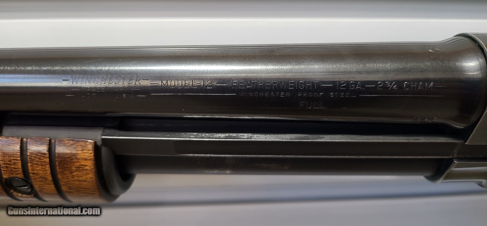 Description: Guns Listing ID: 604884 WINCHESTER 1960 WINCHESTER MODEL 12 FEATHERWEIGHT 12 GA. COLLECTOR GRADE ANTIQUE - 12 GA - 30 \" A nice collector grade Winchester Model 12 Featherweight 12 ga. 30\" round barrel, bead front sight, and an all original from 1960. The Featherweight was a limited edition option of the ever so popular Model 12. The Featherweight is similar to Standard Model 12 except made with an alloy guard and different takedown system. The Featherweight‚‚s were manufactured between 1959-62 in only a fraction of all the Model 12‚‚s manufactured. All Model 12 Featherweights have a \"F\" suffix after serial number. This Featherweight has serial number 1797857F. In 1960, only 4,500 Model 12‚‚s were manufactured and only a small portion were Featherweight‚‚s. This beautiful Model 12 Featherweight has some normal but minor wear marks and are shown in the photographs. The barrel is proofed with all the appropriate proof marks, engravings, etc. to include \"WINCHESTER - MODEL - 12 - FEATHERWEIGHT - 12 GA - 2 3/4 CHAM - WINCHESTER PROOF STEEL - FULL\". A great original limited production Model 12 Featherwei SOLD Curio/Relic: Yes Manufacturer: WINCHESTER Model: 1960 Winchester Model 12 Featherweight 12 ga. Collector Grade Antique Condition: Used - Non-Certified Barrels: 30 BARREL Gauge Info: 12 GA Finish: BLACK /W WOOD STOCK |