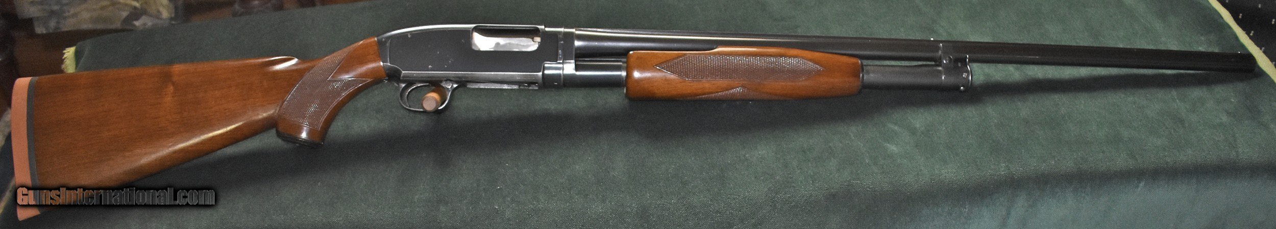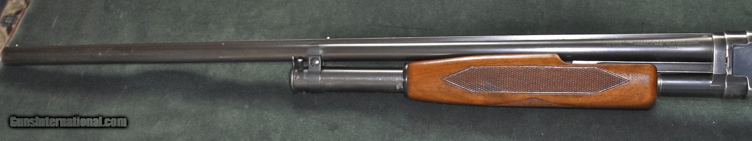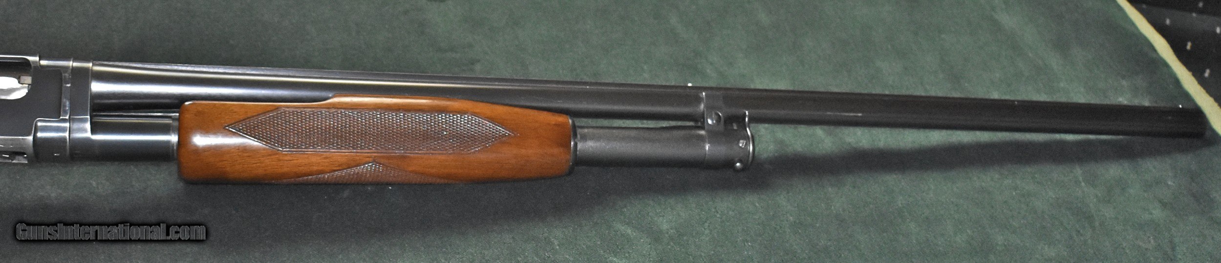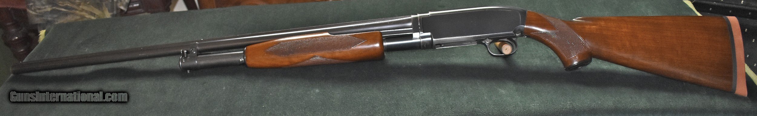 Description: Winchester model 12 20 gauge deluxe field grade.Built in 1953,this gun has a 28" solid rib barrel choked full.The gun is in very good original condition.It retains 95% of the original blue finish and 98% of the original wood finish.The stock has a 14" LOP over a Winchester solid pad.The stock and forend are sound with no cracks or damage.The bore is mint and free of any rust,dents,or pitting.The action works smoothly and locks up tight.This is a great classic hunting gun.Nice enough to take pride in but not too nice to shoot.C&R eligible. SOLD Curio/Relic: Yes Shotgun Gauge: 20 Gauge Manufacturer: Winchester Model: Deluxe field Serial Number: 1381605 Barrel Length: 28 Chambers: 23/4 Condition: excellent Metal Condition: very good Wood Condition: excellent Bore Condition: mint Barrel Type: Winchester proof steel Action: pump Stock Dimensions: 14"x11/2"x21/4 Fore End: Checkered Beavertail Butt Pad: Winchester solid pad Rib: Solid rib Manufacture Date: 1953 Chokes: full |