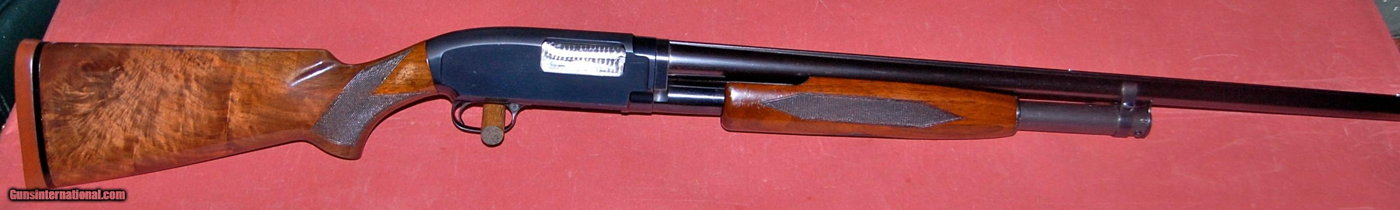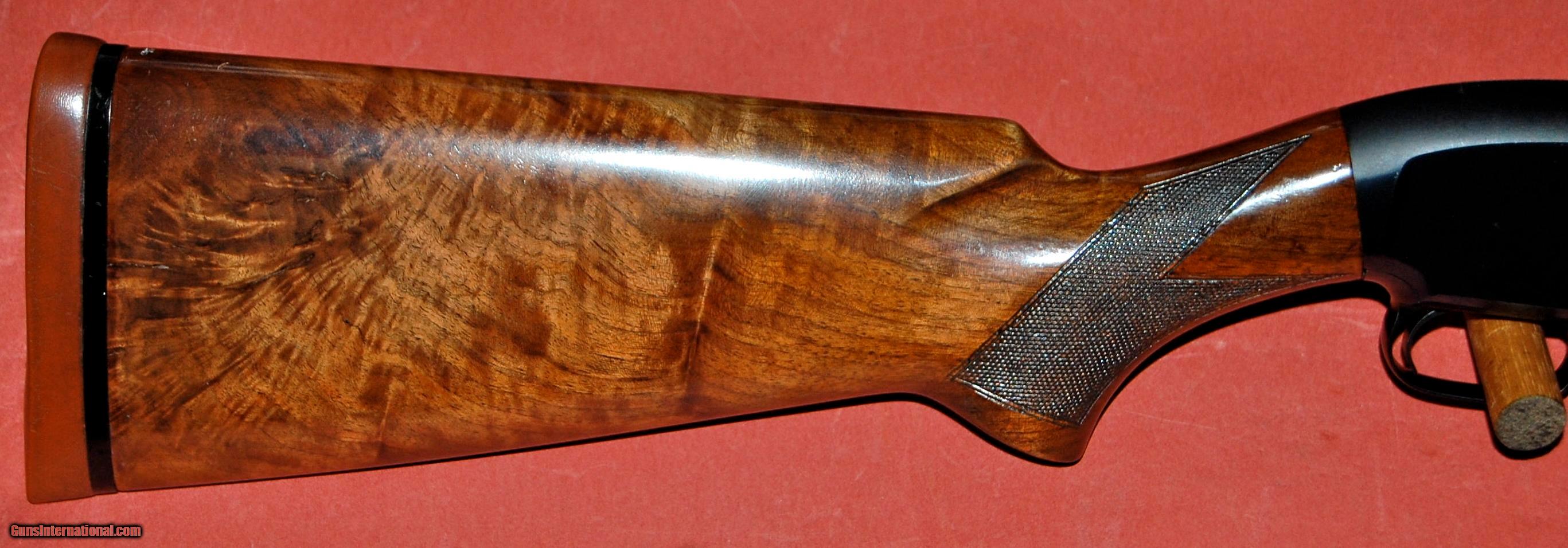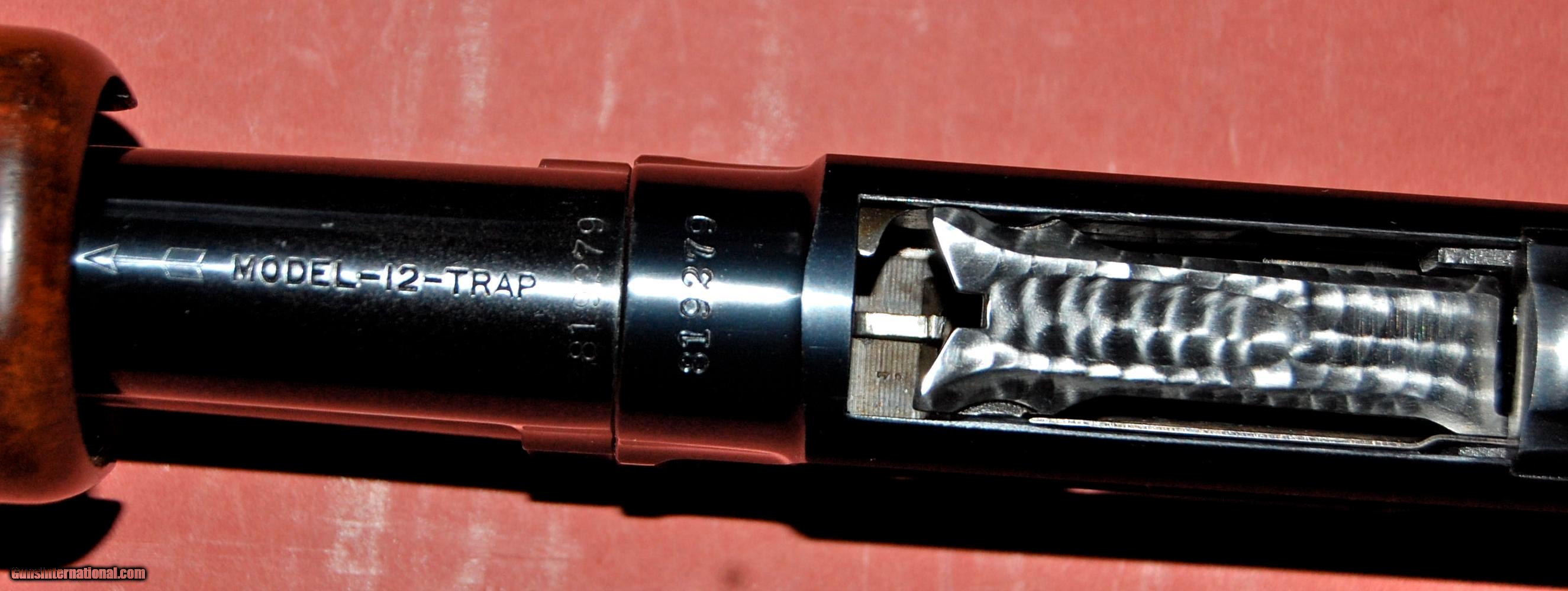 Description: Winchester pre 64 model 12 Deluxe Trap Grade built in 1940.This gun is very rare in that it has a solid rib 26" barrel choked Winchester Skeet 2 (WS-2).WS-2 falls between improved cylinder and modified and is seldom found on model 12s,particularly on a Trap grade.This gun is in remarkable condition for its age.It retains 98% of the original blue and 99% of the original wood finish.The bolt and follower are engine turned from the factory.The wood is highly figured 3X wood.This is a very rare gun in mint condition.I my opinion,it was probably part of a 2 barrel trap/skeet set and the trap barrel is lost.Either way,it is a very desireable model 12.C&R eligible. SOLD Curio/Relic: Yes Manufacturer: Winchester Model: 12 Deluxe Trap Serial Number: 819279 Chambers: 23/4 Metal Condition: mint Wood Condition: mint Bore Condition: mint Barrel Type: Winchester proof steel Action: pump Rib: solid rib Manufacture Date: 1940 Chokes: WS-2 (.014") |