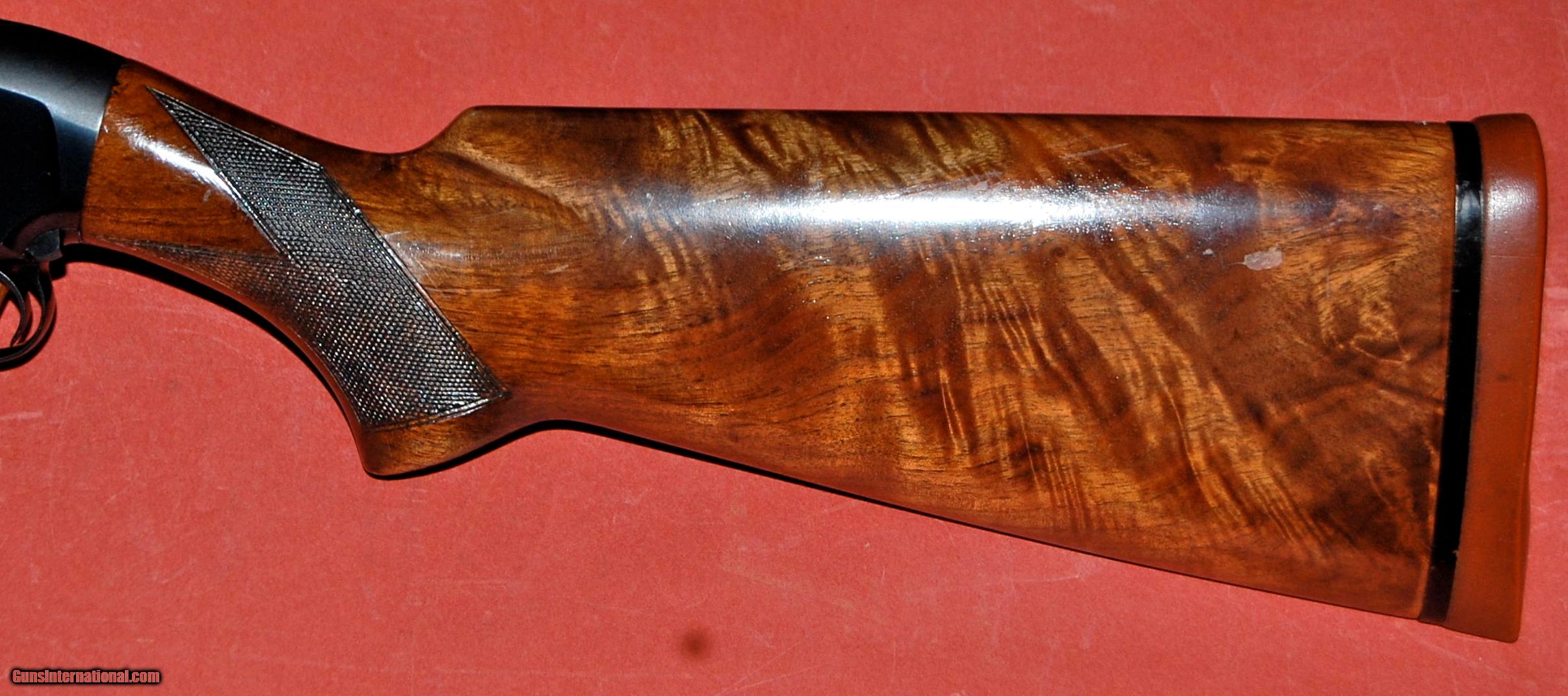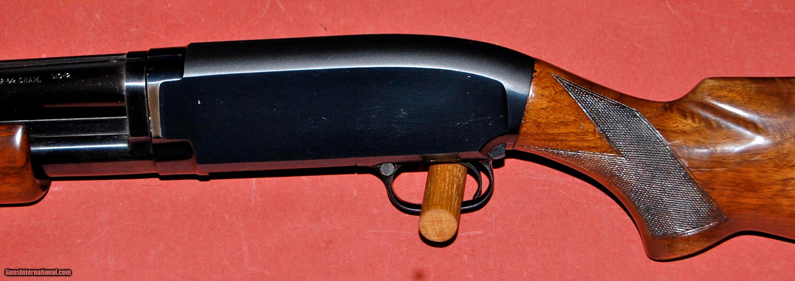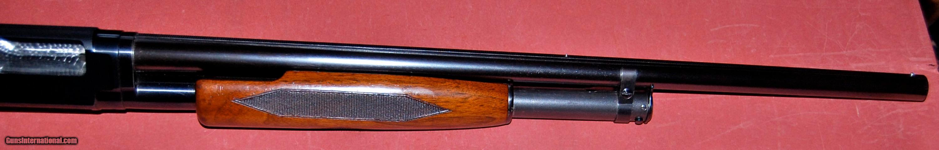 Description: Winchester pre 64 model 12 Deluxe Trap Grade built in 1940.This gun is very rare in that it has a solid rib 26" barrel choked Winchester Skeet 2 (WS-2).WS-2 falls between improved cylinder and modified and is seldom found on model 12s,particularly on a Trap grade.This gun is in remarkable condition for its age.It retains 98% of the original blue and 99% of the original wood finish.The bolt and follower are engine turned from the factory.The wood is highly figured 3X wood.This is a very rare gun in mint condition.I my opinion,it was probably part of a 2 barrel trap/skeet set and the trap barrel is lost.Either way,it is a very desireable model 12.C&R eligible. SOLD Curio/Relic: Yes Manufacturer: Winchester Model: 12 Deluxe Trap Serial Number: 819279 Chambers: 23/4 Metal Condition: mint Wood Condition: mint Bore Condition: mint Barrel Type: Winchester proof steel Action: pump Rib: solid rib Manufacture Date: 1940 Chokes: WS-2 (.014") |