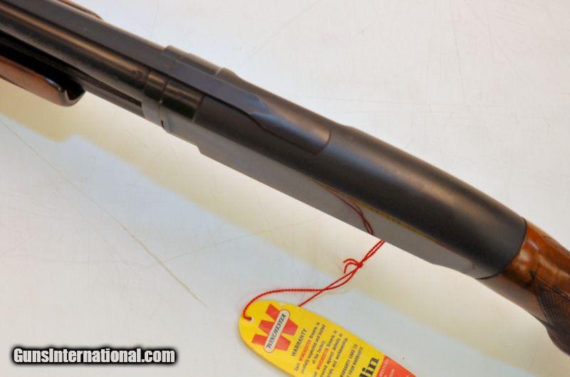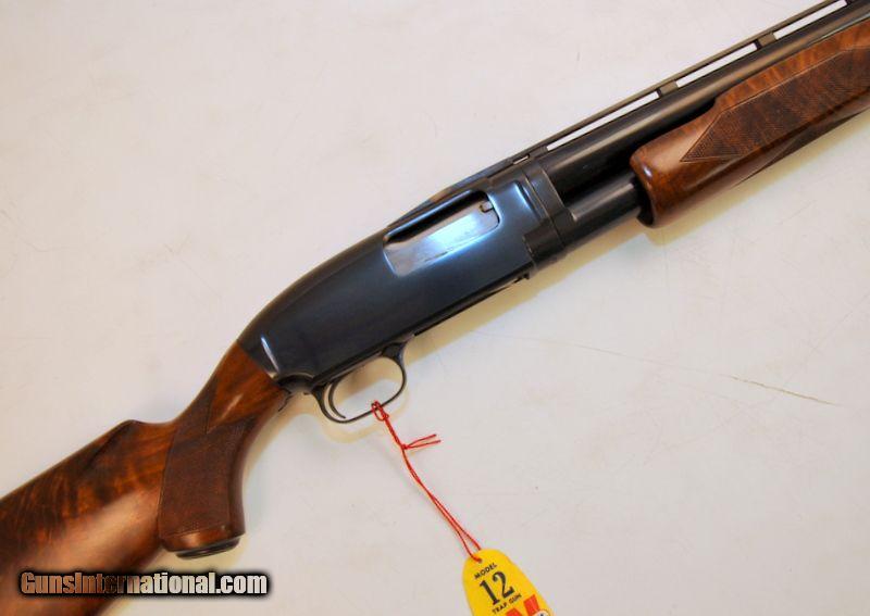 Description: SN, 1957XXX. 12 gauge 2 3/4" chamber 1962 mfg factory trap gun. 30" barrel with 3 pin Winchester New Style Vent Rib with duck bill receiver extension. Checkered fancy walnut beavertail forend. Trap dimension straight comb stock of fancy walnut with steel grip cap & hand checkering. LOP 14 1/2" over original Winchester ventilated pad. Includes a repro hang tag. Gun shows little or no use. Over 98% original blue showing light pump wear on mag tube. Original wood finish shows a few small marks & spotds of grain checking. clean Bright bore. Priority mail to FFL or C&R $25. SOLD Curio/Relic: Yes |