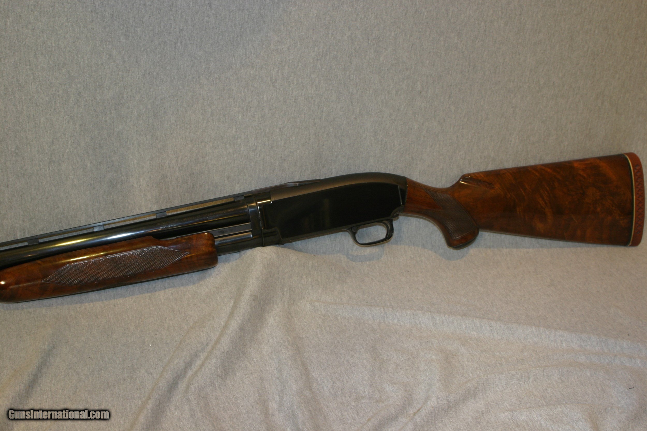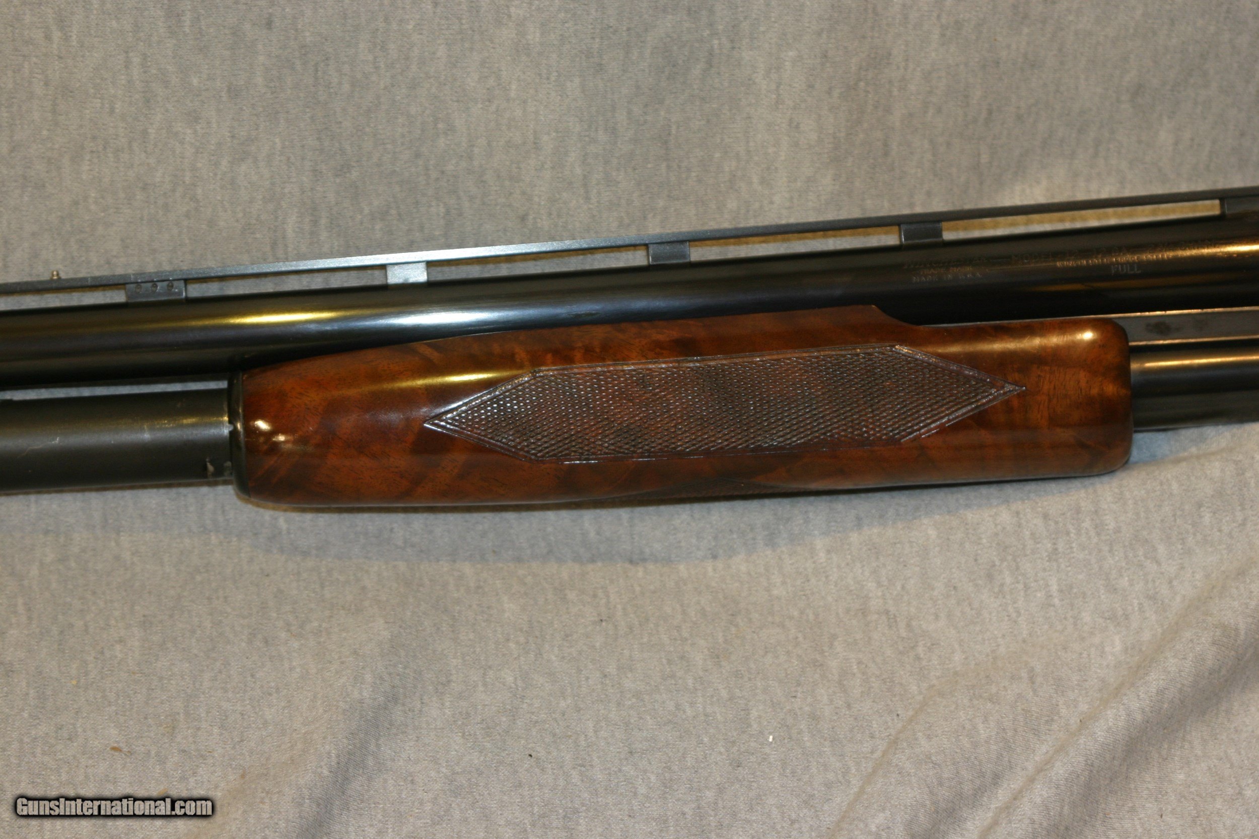 Description: WINCHESTER MODEL 12 SET UP FOR TRAP SHOOTING WITH 30" DUCK BILL RIB AND FULL (.036) CHOKE , VERY GOOD CONDITION! LOP 14 3/8"-1 1/2"-2" SOLD |
