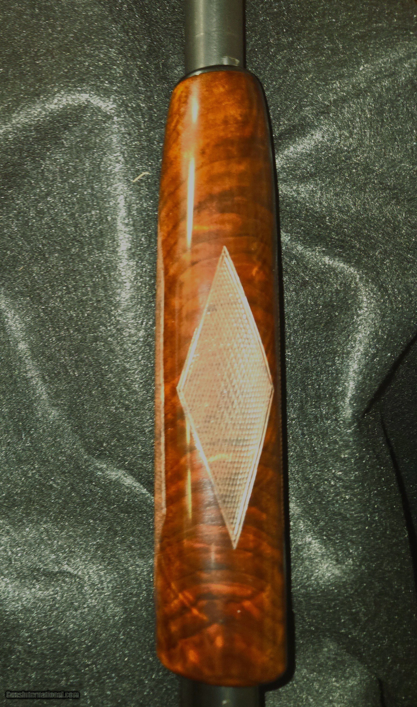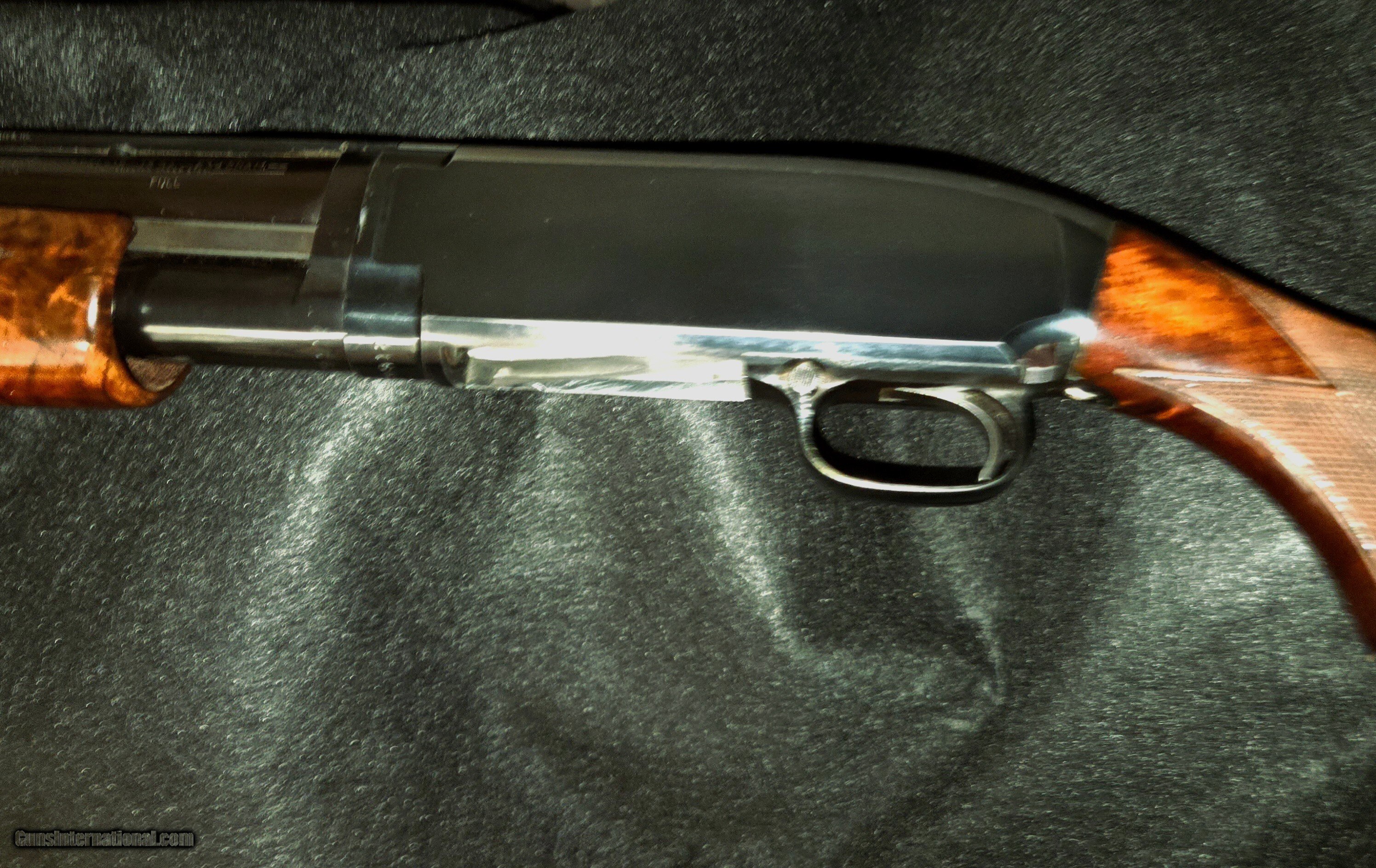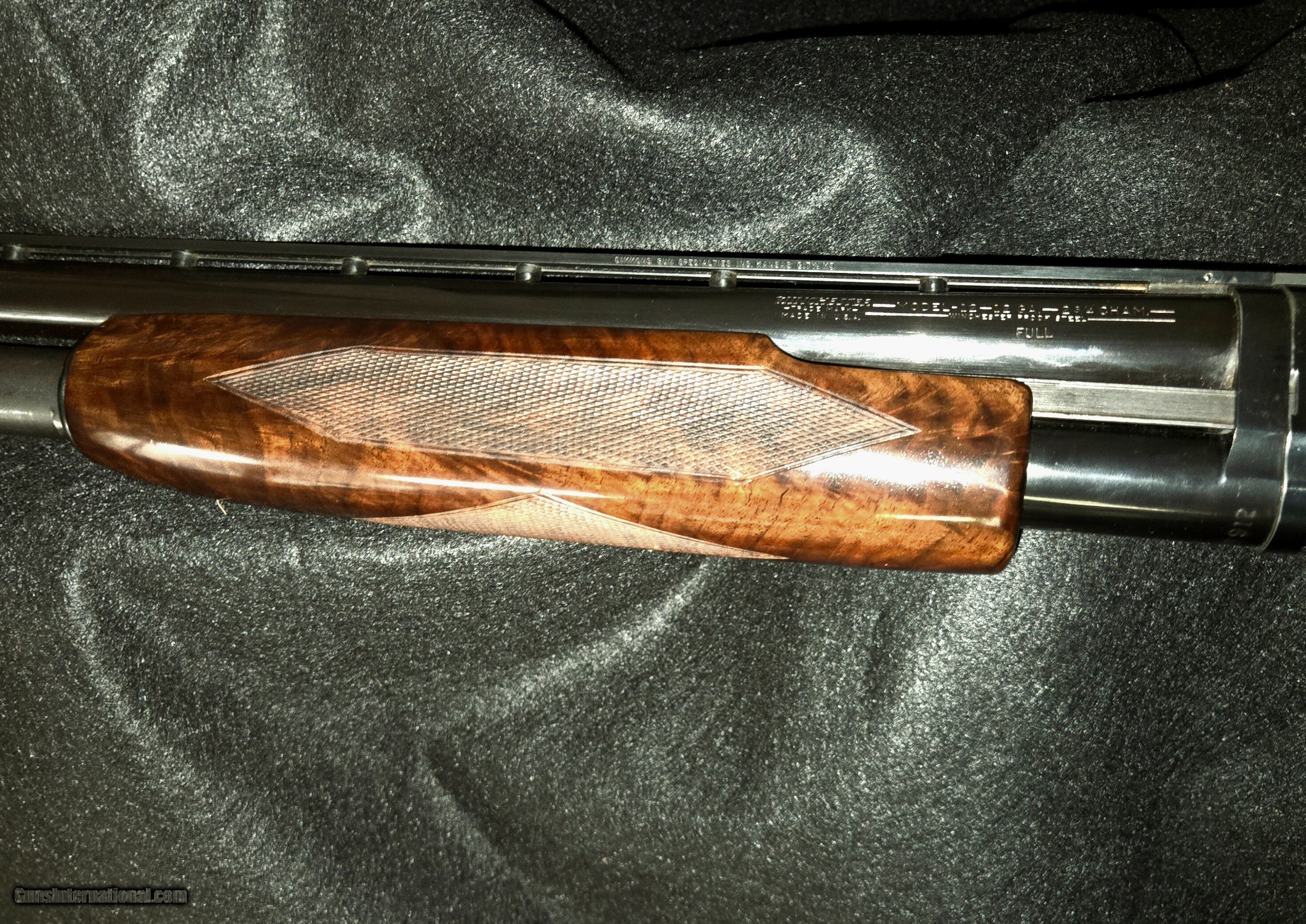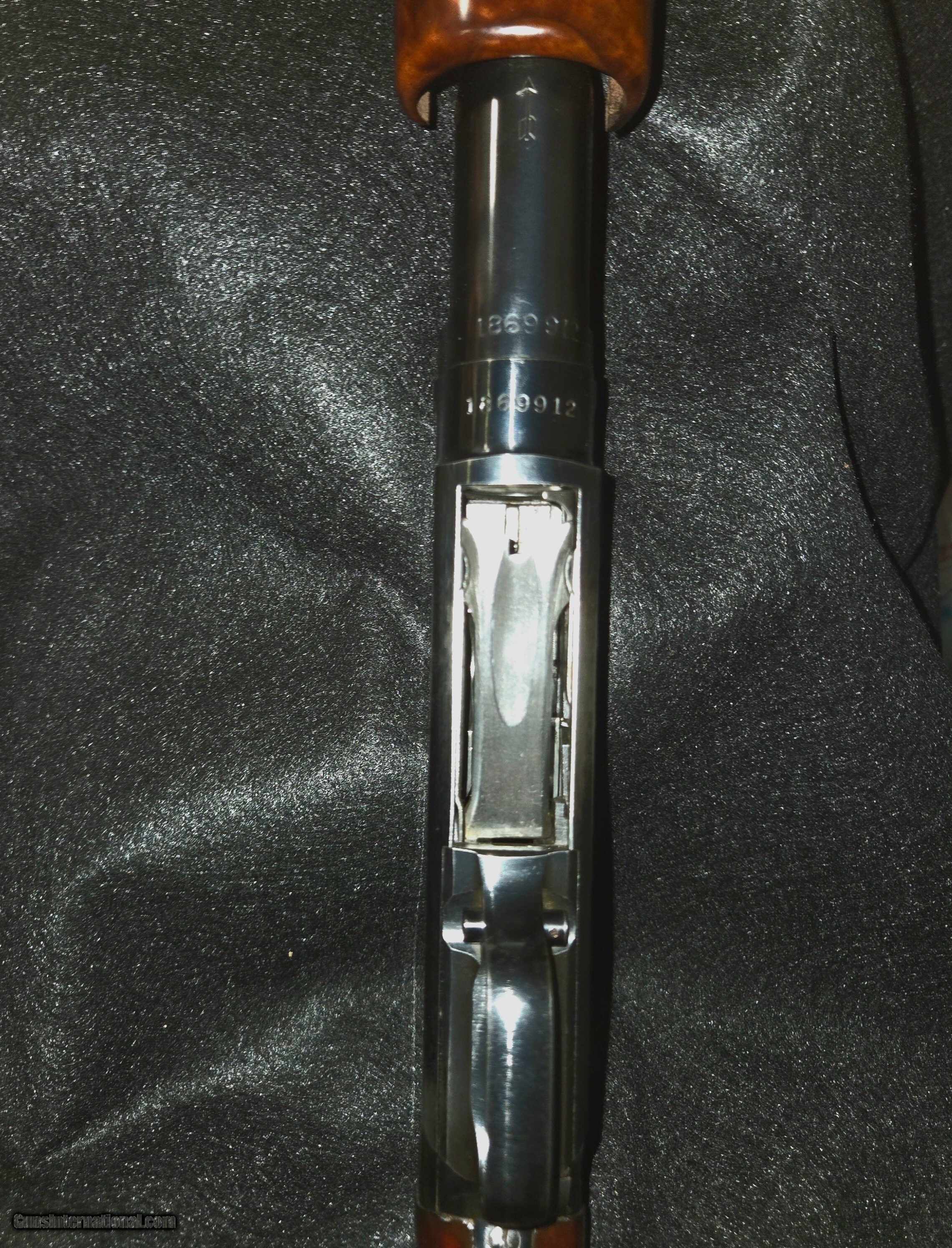 Description: SOLD PENDING FUNDS Marvin C in PA. Just in, a very nice high condition Winchester Model 12, 12ga. This Trap style Model 12 has a Simmons Ventilated Rib, 30in Barrel, Full Choke with mirror bore. All wood shows much figure in beautiful fiddle back with hard to find handling marks. Checkering is quite as sharp on point. The bluing on all metal shows in high condition. The action is smooth and the gun comes up to shoulder quite smooth. A great addition to your collection for either Clays, Trap or Duck gun that is in amazing shape for 65 year old gun. Please call or reply via GI with questions. We speak Shotguns and Clays. Curio/Relic: Yes Shotgun Gauge: 12 Gauge Manufacturer: Winchester Model: 12 Serial Number: 1869912 Barrel Length: 30in Bore Info: 12 Chambers: 2 3/4in Ejectors: Pump Action Condition: Very Good Metal Condition: Very Good Wood Condition: Very Good Bore Condition: Mirror Barrels: Factory matching numbers on barrel Action: Punp Triggers: One LOP: 14 3/8in Rib: Vent Manufacture Date: 1960 Chokes: Full Grips: Pistol Price: $875.00 Shipping: $70.00 Buy Now Contact Seller |