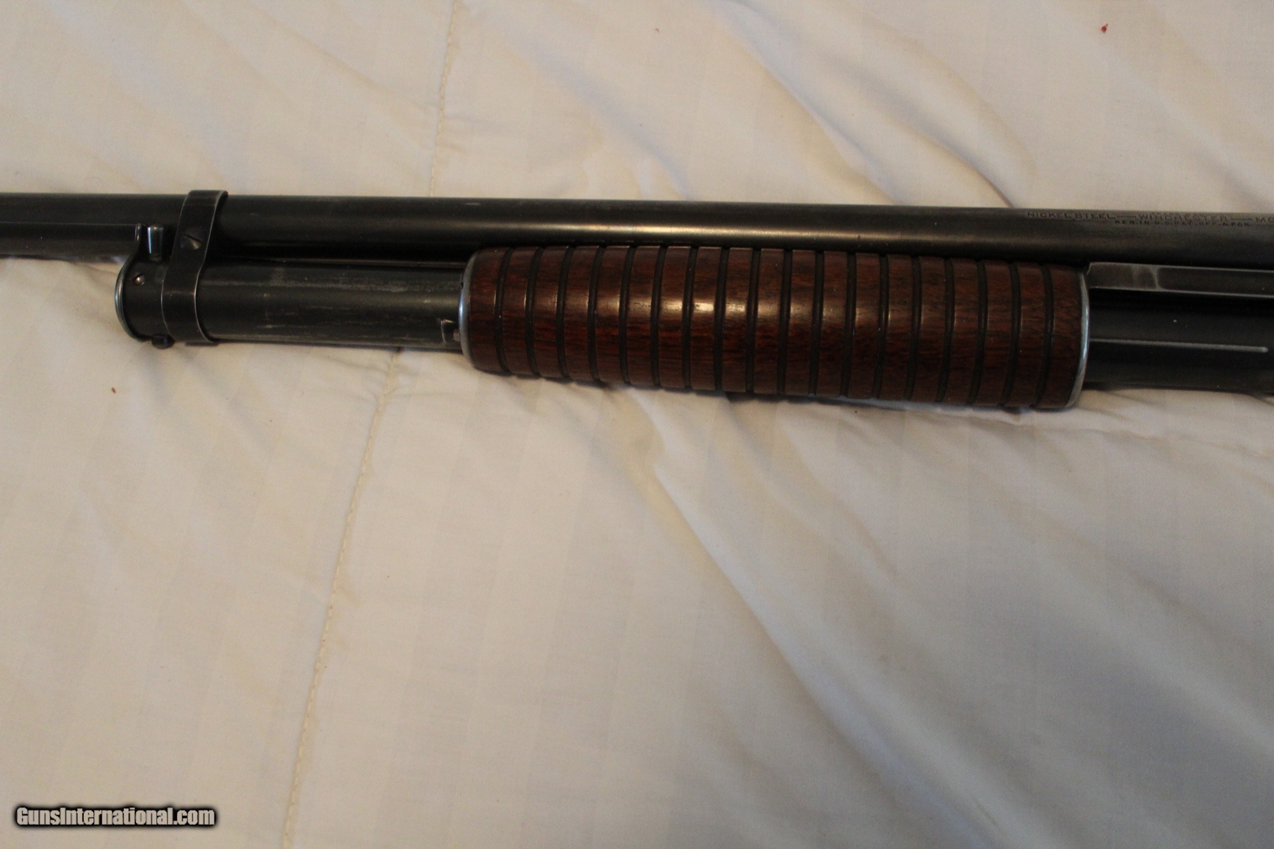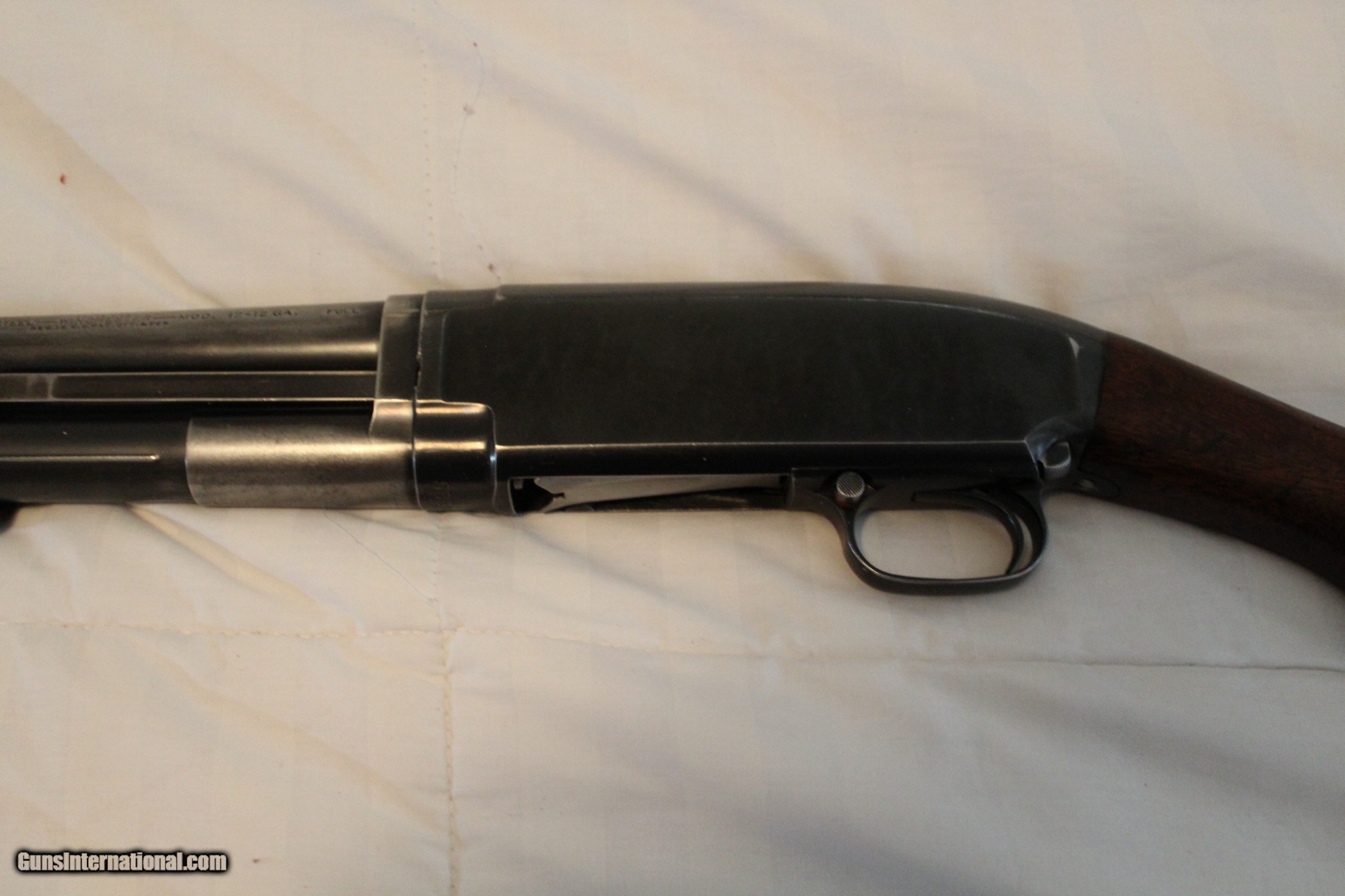 Description: If you are interested in this shotgun, now is the time to make an offer, it will go away next week! Winchester Model 12, 12 gauge. 408,XXX SN, 1924 (?). An original, mechanically solid shotgun that shows some hunting/carry wear from almost 100 years of service but still has a lot of hunting left in it. The gun has a 28&1/2" plain, full choke barrel. The wood has some nicks and scratches but no cracks. The forearm is an 18 grove style and also has no cracks. It retains it's "original" black plastic Winchester butt plate. The metal retains about 70-75% of it original blue finish. This gun, as with all used guns, should be inspected by a trusted gunsmith before firing. No California sales, sorry. Shipping, Packing and Insurance will be at actual cost, We offer a 3 day, NON-FIRING, inspection period with return privileges at your expense. SOLD |
