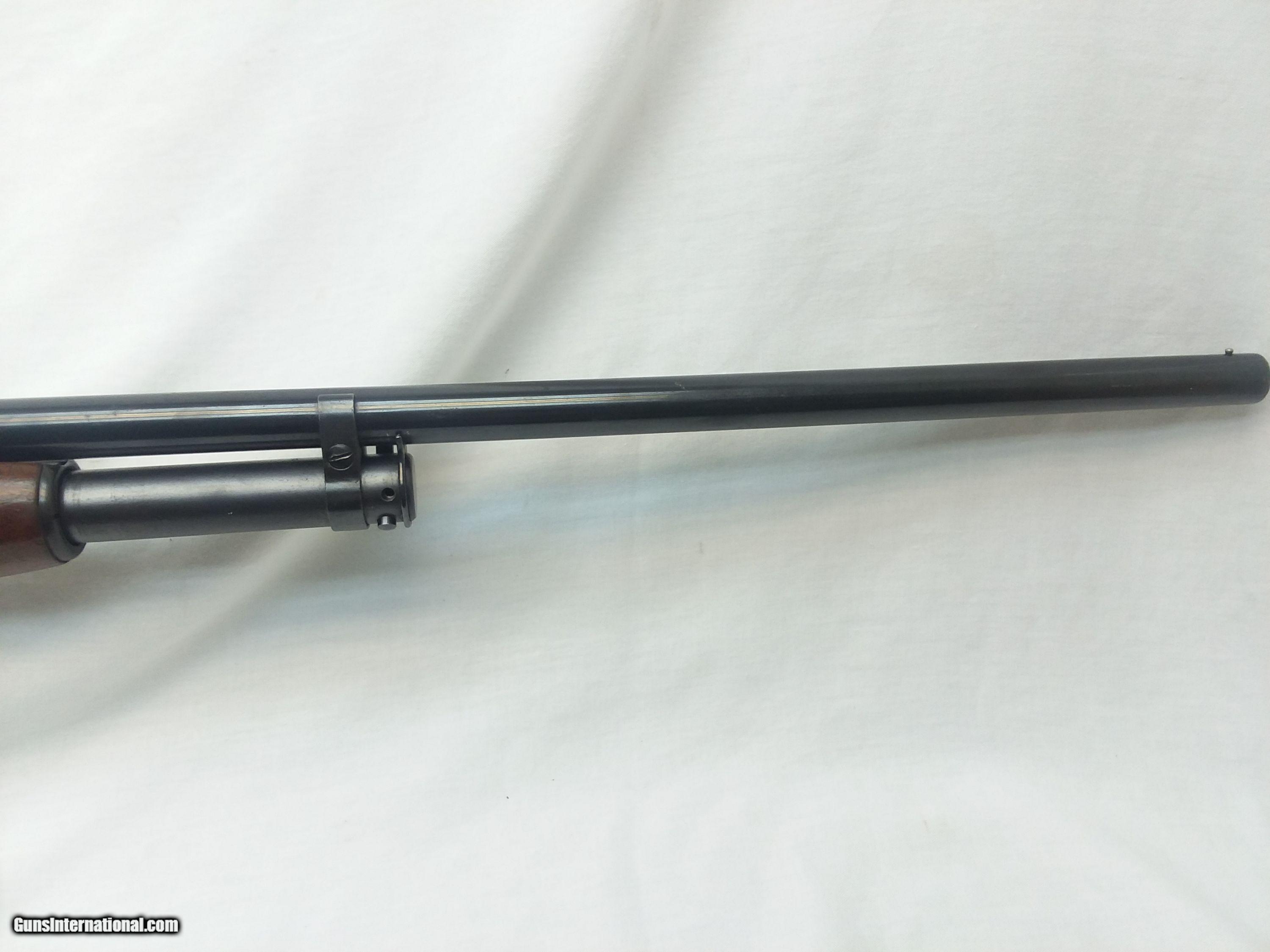 Description: This Winchester Model 12 12 Ga Pump Shotgun is a takedown model. It is chambered for 2-¾” 12 Gauge shells. The 30” blued tapered round barrel with a full choke, is fitted with a silver bead sight. The barrel is in good condition with little to no finish wear. On the left side of the barrel is stamped Made in New Haven Conn US of America Winchester Proof Steel Winchester Trademark Model 12 12 Ga 2 3/4 Cham Full. The bore is in good conditon and shiny. The Walnut stock and forend are in good condition. It is fitted with a checkered black plastic butt pad with Winchester embossed on it. The reciever appears to have it’s original bluing. Length of pull is 14”, overall length is 49-1/2”, and weight is 8.4 Lbs. Our stock number #A630. Willing to ship to any FFL anywhere in the US, buyer pays freight and insurance. SOLD Manufacturer: Winchester Model: Model 12 Bore: Smooth Bore Condition: Good Metal Condition: Good Wood Condition: Good Bore Condition: Good Barrels: 1 Barrel Type: Steel Action: Pump Action Triggers: 1 Gauge Info: 12 Gauge Stock: Walnut Fore End: Walnut Butt Pad: Plastic LOP: 14 Finish: Blued Weight: 7.4 Lbs Sights: silver bead Chokes: Full |