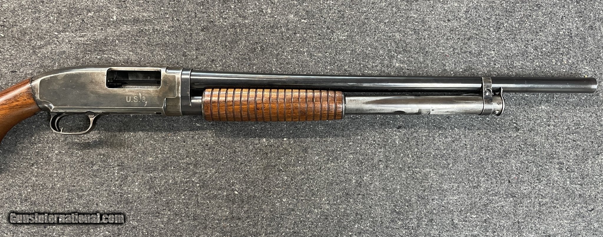 Description: Guns Listing ID: 1309062 The Winchester Model 12 is one of several abbreviations for the Winchester Model 1912 shotgun and the one used for the official military designation of the firearm when it entered service in the the U.S. military. This model 12 shotgun is a U.S. government issue firearm with the U.S. Armory stamp on the receiver. Receiver was manufactured in 1942, stock as G.H.D inspection mark and crossed cannon/bursting bomb final acceptance stamp. The firearm is in good condition with finish wear on the receiver. Stock is in good condition with minor cosmetic damage. SOLD Manufacturer: WINCHESTER Model: MODEL 12 Condition: Used - Non-Certified Barrels: 22 BARREL Gauge Info: 12 GA |