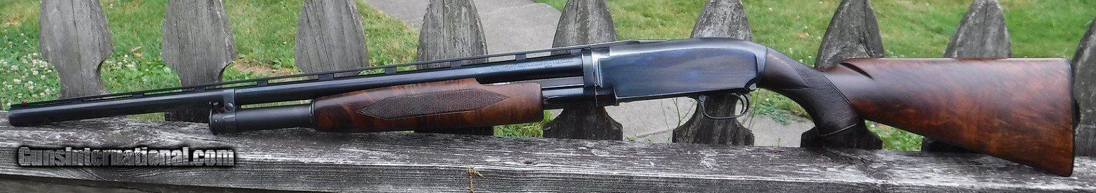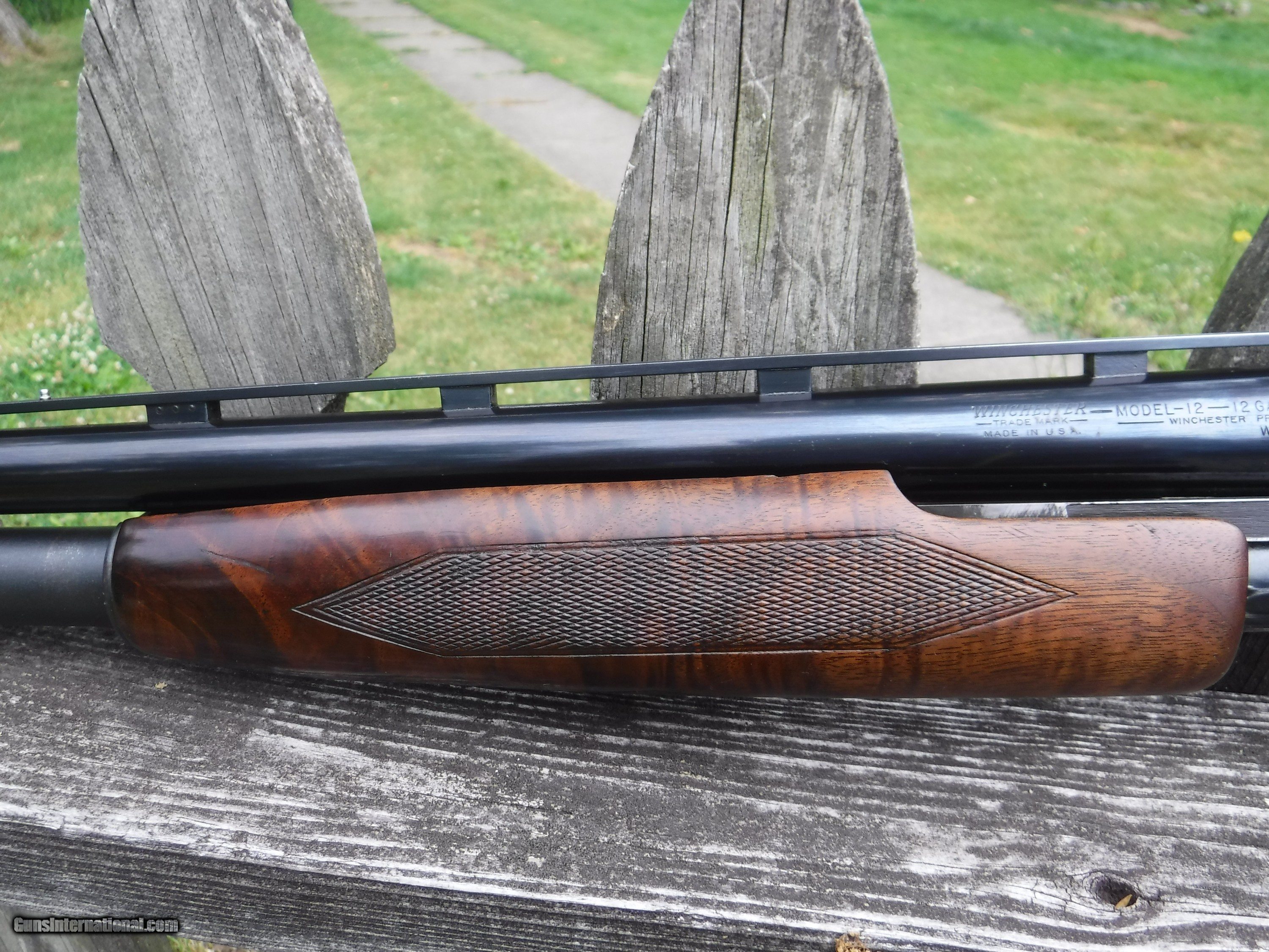 Description: WINCHESTER 12 GAUGE MODEL 12 PUMP ACTTION 26" 3 PIN VENT RIB BARREL CHOKED WS-1 (SKEET) - DELUXE STYLE WOOD - PISTOL GRIP W/CAP - NICE FIGURE IN WOOD. SOME BLUE WEAR ON EDGES. OVERALL CONDITION IS 90%. SOLD |