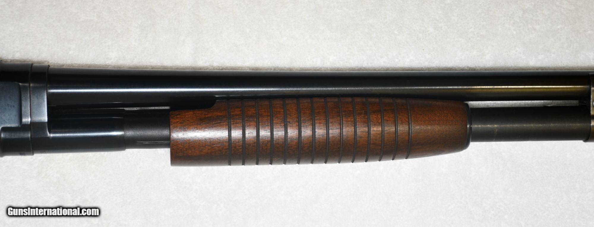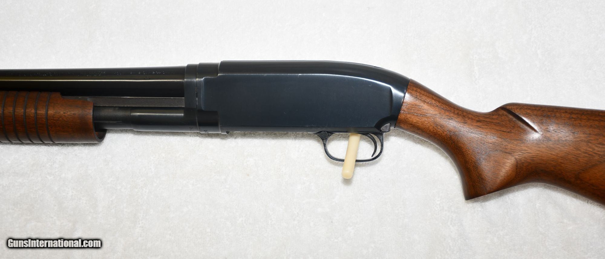 Description: Winchester Model 12. SN# 1735724. Receiver and barrel extension number dates to 1959. Up for sale is a very clean Winchester Model 12 police riot gun chambered for the 12 gauge 2 3/4" cartridges. The history of this shotgun starts with the building at the factory followed by the purchase in late 1960 by the county law enforcement in my region. The gun was stored in the law armory until early 1962 when it was issued to the county sheriff. In 1965 the shotgun was transferred to the police dept. and was carried in a squad car from time to time. Sometime in 1969 the gun was taken out of the police service register and was put into armory storage. The gun has been very well cared for with some light oil rubbed from time to time and remains in excellent condition. All factory original blued metal parts and excellent wood grain help to showoff this as a great collector's shotgun. Freight and insurance 50.00 SOLD Curio/Relic: Yes |