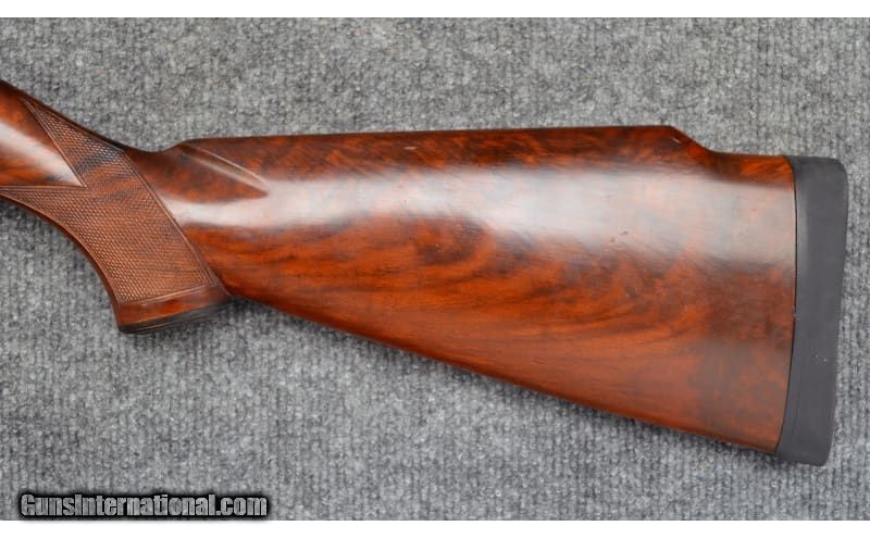 Description: For your consideration, a Winchester Model 12 chambered in 12 Gauge. This piece has been engraved with scenes of pointers afield at left, ducks landing at right, and scroll accents. The stock features an attractive crotch grain pattern. An artfully blended spacer has been added to correct previous shortening. Dates to 1948. 12 Gauge SOLD Curio/Relic: Yes Chambers: 2.75 Metal Condition: Excellent Wood Condition: Excellent Bore Condition: Excellent Barrels: 30 Triggers: Smooth Stock Dimensions: 14" LOP Fore End: Checkered Butt Pad: Rubber Weight: 8.25 lbs Sights: Solid Rib and Bead Chokes: Full Item Location: Hamburg, PA |