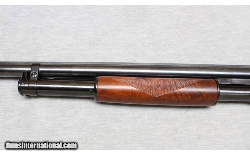 Description: Winchester Model 12 in 12 Gauge. The Model 12 is an internal-hammer pump-action shotgun with an external tube magazine. This shotgun features a 30-inch steel barrel and a walnut pistol grip stock. It set the standard for pump-action shotguns over its 51-year production life and over 2 million were made. This shotgun was made in 1958. The barrel was made before 1919 and is stamped MOD.1912-12 GA. 12 Gauge SOLD Chambers: 2 9/16 Inches Metal Condition: Very good Wood Condition: Excellent Bore Condition: Bright Barrels: 30 Inches Triggers: Factory Stock Dimensions: LOP 13 1/2 inches Fore End: Checkered walnut Butt Pad: Plastic pad Sights: White bead on solid rib Chokes: Full Item Location: La Vista, NE |