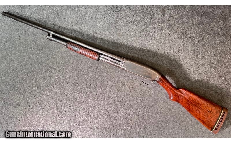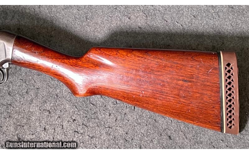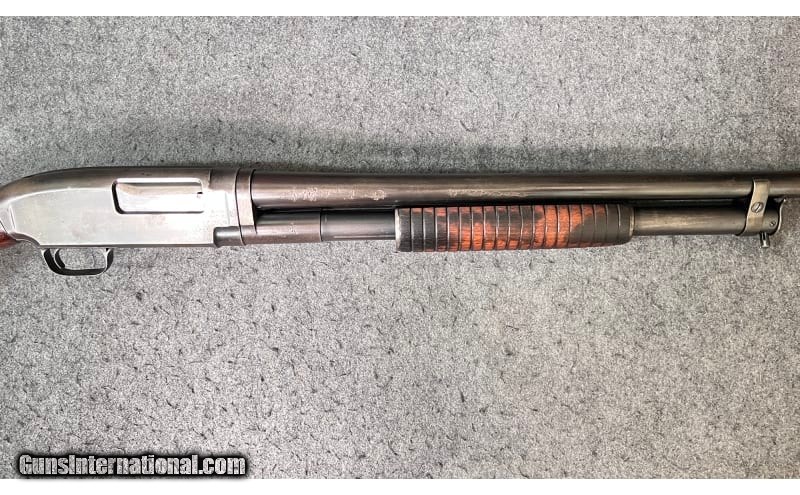 Description: This iconic pump-action pre-World War II (1939) manufactured shotgun is a Winchester Model 12 chambered in 12 Gauge. It has a silver round bead front sight, a forward-of-the-trigger guard safety button, a ringed wood forearm, a 28" barrel, and a 2¾" chamber. The serial numbers match on magazine tube and receiver. The reputable Winchester Model 12 shotgun started production in 1912 and ended in 1964. The Model 12 is very sought after by collectors and gun enthusiasts alike. This particular shotgun has significant wear marks on the action from use, and virtually no bluing remaining. There are many areas that show significant erosion to the metal. The wood shows significant handling wear and marks throughout, with large areas of dark black staining present on fore arm. 12 Gauge SOLD Curio/Relic: Yes Chambers: 2¾" shells Metal Condition: "Virtually no bluing remaining, and there are many areas that show significant erosion to the metal Wood Condition: "Significant handling wear and marks throughout, with large areas of dark black staining present on fore arm Barrels: 28" barrel Triggers: Smooth trigger Stock Dimensions: "13¾"" LOP, overall length 46¾"" Fore End: Round ringed wood fore arm with large areas of dark black staining present Butt Pad: "Thick ventilated rubber butt pad, not original to the gun Weight: 7 lb 4 oz Sights: Round silver bead front sight Chokes: Barrel is a modified choke Item Location: Wichita, KS |