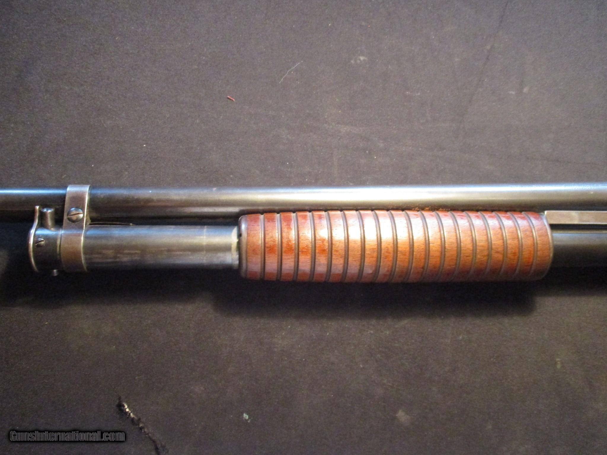 Description: Winchester Model 12, 12ga, 2.75" chamber, 30" plain barrel, fixed full choke. SN is 4201xx, made in 1925. Factory finish on both wood and metal, factory butt plate. Nice classic old gun!Email me if you would like these pics sent to you, they will come through bigger and better than on the listing page here. We do offer Lay-A-Way. Our standard terms are 25% down, 90 days. Initial deposit is not refundable. Email me with any questions. I am a store front dealer, and I will close s if the gun sells locally. Once it has aI will pull it from my shelves. Please check your local laws to confirm it is legal to own in your state! Buyer pays $25 shipping and insurance to your FFL in the lower 48. AK, HI or PR is extra. I will ship to California, NO PROBLEM! All my guns come with a non-firing, 3 day unconditional return privilege, from the day UPS delivers to your dealer. Buyer pays shipping both ways if the gun comes back. I can add a new hard case by PLANO for secure shipping for $25 if the buyer wishes (highly recommended, cheap insurance, really helps keep the UPS monster from eating my guns!). No sales tax on guns ship out of Kansas, guns sold in Kansas are subject to Kansas sales tax. I am a licensed FFL, and will include a copy of my FFL with the gun for your dealer’s records. I will ship to a C&R if the gun is eligible. I will ship to California, but you need to confirm the gun is legal where you are, California or other. WE BUY AND CONSIGN GUNS AND GUN COLLECTIONS! We will travel to pick up collections! I am always looking for good clean, old original Winchesters to buy, consign, or trade, especially Pre '64's model 70's and model 54's. WE ALSO TRADE FOR CLASSIC CARS AND TRUCKS! Email me with any questions, and good luck! SOLD |