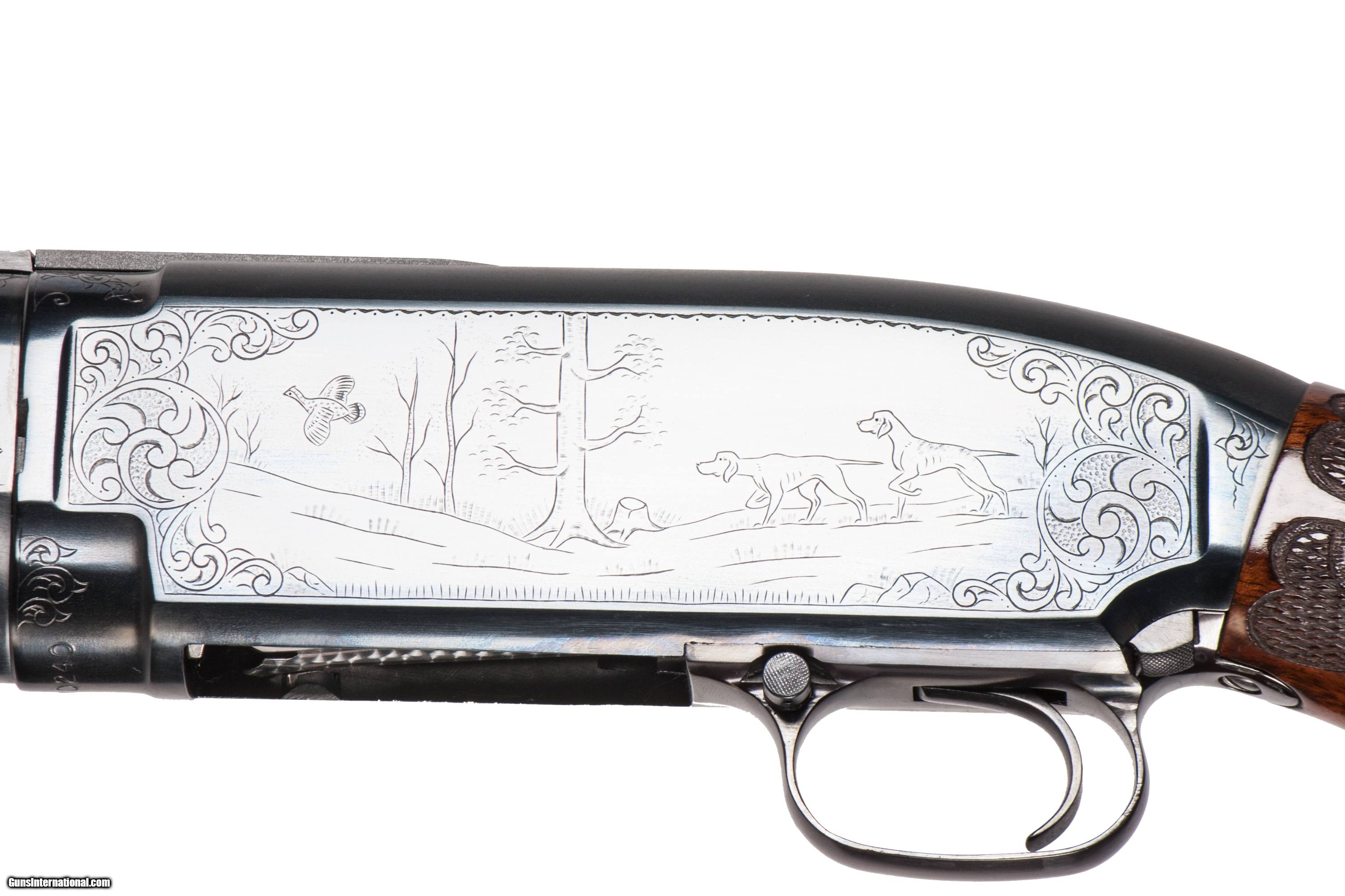 Description: A Winchester Model 12 chambered in 12 gauge with a 30 1/4 inch barrel with a bright and shiny bore with beautiful engraving throughout the receiver and fancy grade wood. This firearm is in excellent condition and is covered by Dury's Lifetime Warranty.