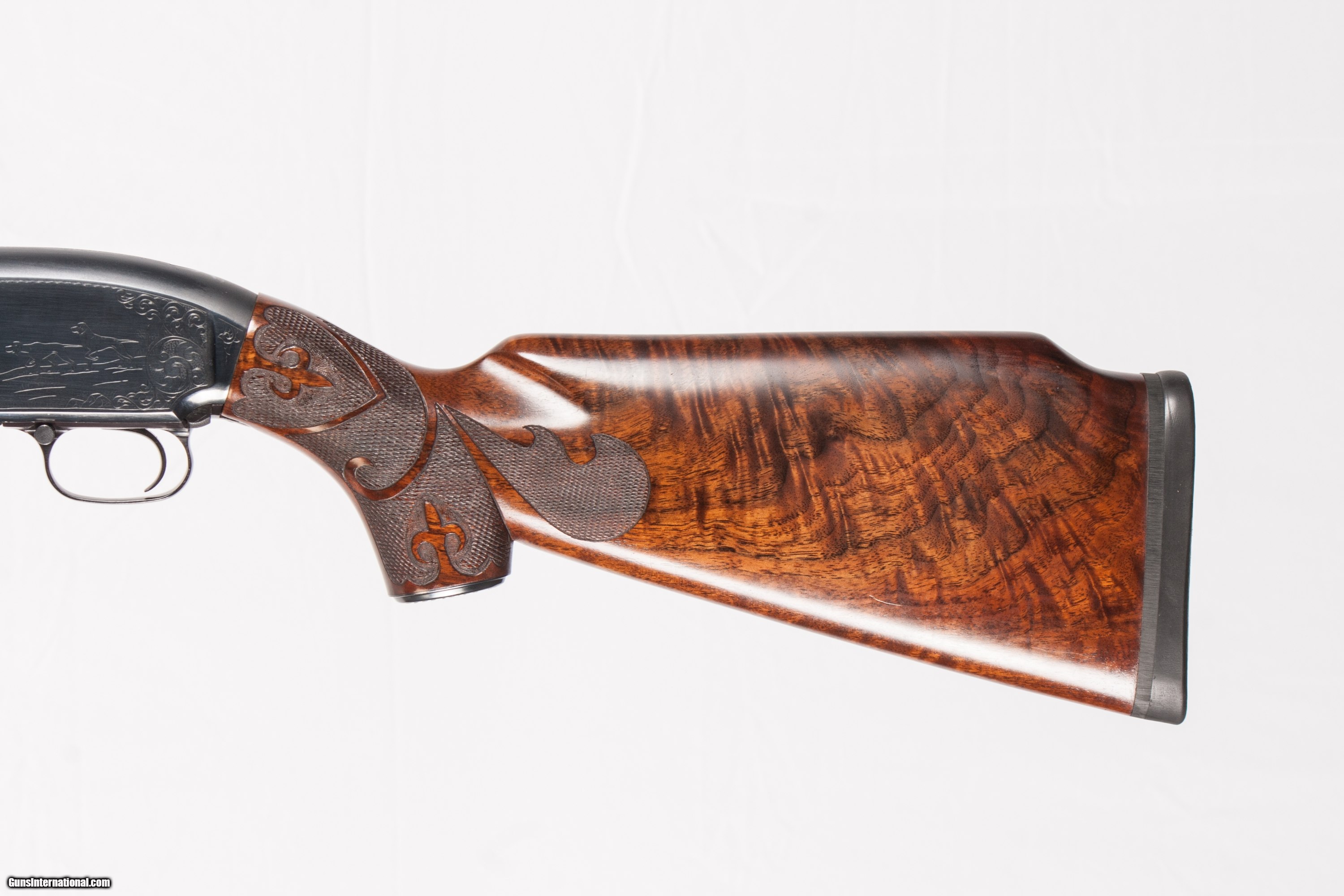 A Winchester Model 12 chambered in 12 gauge with a 30 1/4 inch barrel with a bright and shiny bore with beautiful engraving throughout the receiver and fancy grade wood. This firearm is in excellent condition and is covered by Dury's Lifetime Warranty.