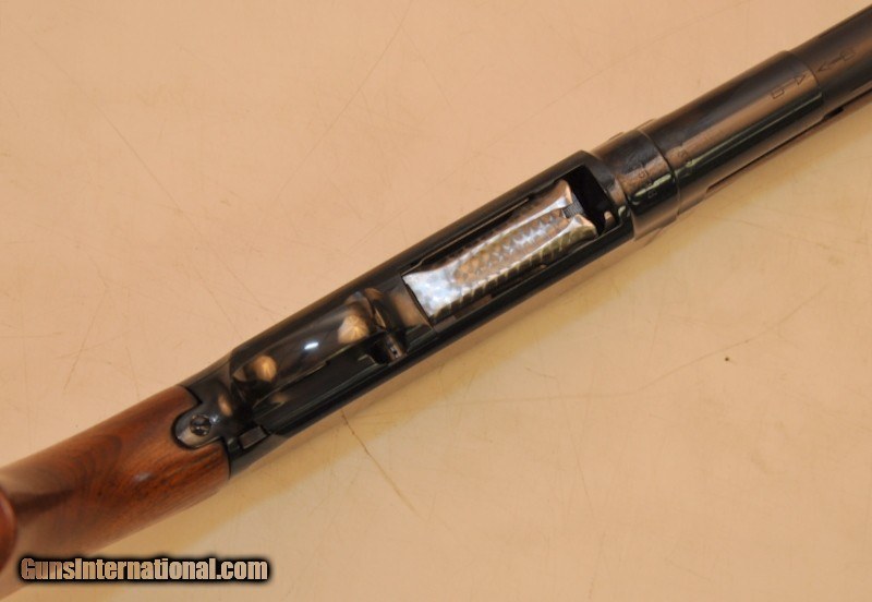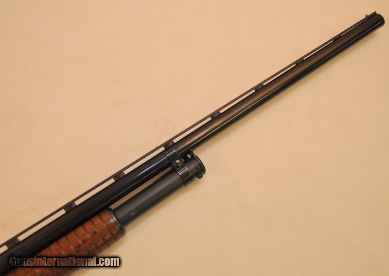 Description: Serial number 907528. 2-3/4" chamber. 28" barrel with after market Simmons vent rib. Fixed MOD choke. Pistol grip stock with original buttplate & small round grooved forend are nicely refinished. Jewelled bolt & carrier. 98% Simmons reblue. Bright bore. Sound mechanics. Priority mail to FFL or C&R $25.00. SOLD |