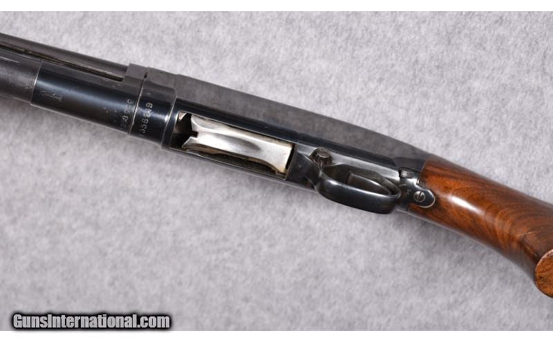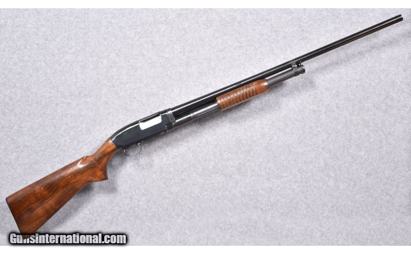 Description: The Model 12 was the next step from the Winchester Model 1897 hammer-fired shotgun, which in turn had evolved from the earlier Winchester Model 1893 shotgun. The Model 12 was designed by Winchester engineer T.C. Johnson, and was based in part on the M1893/97 design by John M. Browning, in that it used a sliding forearm or "pump action" to cycle the mechanism. It was initially available in 20 gauge only (12 and 16 gauge guns were not sold until late 1913). The Model 12 was a very successful internal hammer pump-action shotgun. This particular Model 12 was made in 1953 and has been nicely reblued. The stock is in very good condition with a minimal loss of finish around the butt plate. See photos. The Model 12 in 16 gauge is very desirable, and this example is in very good condition. 16 Gauge SOLD Chambers: 2¾" chamber Metal Condition: Very good Wood Condition: Very good Bore Condition: Excellent Barrels: 28 Stock Dimensions: 14" length of pull Butt Pad: Winchester Repeating Arms butt plate Weight: 6.6 lbs Sights: Front bead Chokes: Full Item Location: Boise, ID |