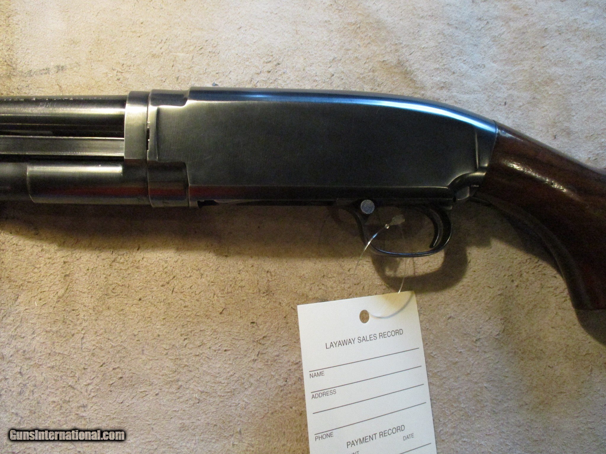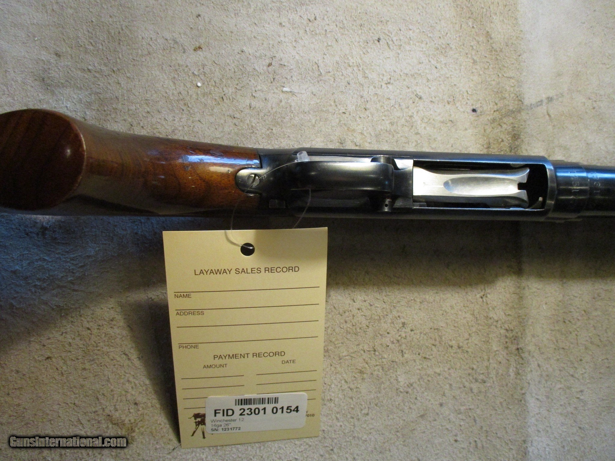 Description: Winchester model 12, pre 1964, made 1950. 16ga, 2.75" chamber, 26" poly choke. SN is 12317xx, both numbers do match. Factory finish on both wood and metal, factoy butt plate. Nice clean classic gun ready to go on your next hunting trip! Perfect bore, does not appear to have been shot much at all. We will trade for silver and gold. We accept personal check, any certified funds, Venmo or Zelle. We can also take your credit card, +3%. Email me if you would like these pictures sent to you, they will come through bigger and better than on the listing page here. We do offer Layaway. Our standard terms are 25% down, 90 days. Initial deposit is not refundable. Email me with any questions. Please check your local laws to confirm it is legal to own in your state! Buyer pays $60 shipping and insurance in a brand new PLANO hard case to your FFL in the lower 48. AK, HI or PR is extra. I will ship to California, as long as it is legal, NO PROBLEM! All my guns come with a non-firing, 3 day unconditional return privilege, from the day UPS delivers to your dealer. Buyer pays shipping both ways if the gun comes back. Please make sure to make it to your FFL to inspect within the 3 days. I am a licensed FFL, and will include a copy of my FFL with the gun for your dealer’s records. I will ship to a C&R if the gun is eligible. I will ship to California, but you need to confirm the gun is legal where you are, California or other. WE BUY AND CONSIGN GUNS AND GUN COLLECTIONS! We will travel to pick up collections! I am always looking for good clean, old original Winchesters to buy, consign, or trade, especially Pre '64's model 70's and model 54's. WE ALSO TRADE FOR CLASSIC CARS AND TRUCKS! We also trade for gold and silver. SOLD Shotgun Gauge: 16 Gauge Manufacturer: Winchester Model: 12 Barrel Length: 26 Condition: Used |