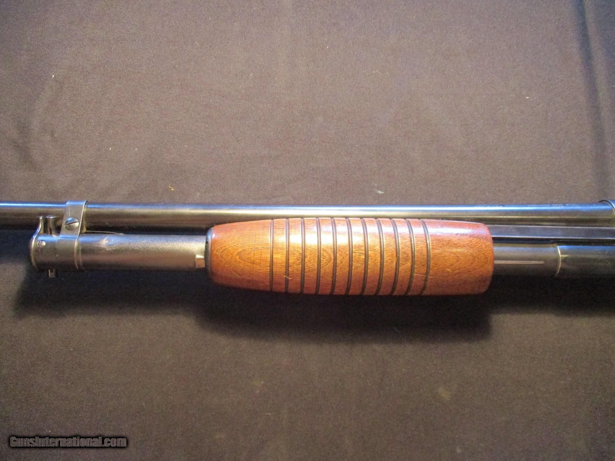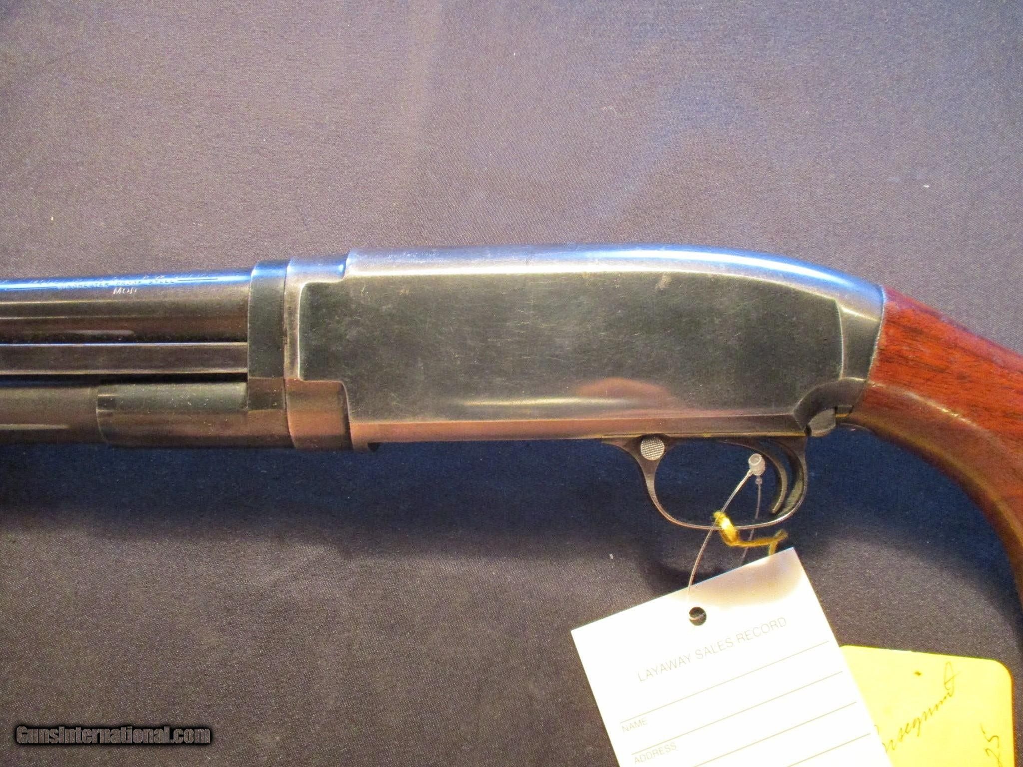 Description: Winchester Model 12, 16ga, 2.75" chamber, 28" plain barrel, fixed modified choke. SN is 16576xx, makes here a 1960 gun. Factory finish on both wood and metal, factory butt plate. Email me if you would like these pics sent to you, they will come through bigger and better than on the listing page here. We do offer Lay-A-Way. Our standard terms are 25% down, 90 days. Initial deposit is not refundable. Email me with any questions. I am a store front dealer, and I will close s if the gun sells locally. Once it has aI will pull it from my shelves. Please check your local laws to confirm it is legal to own in your state! Buyer pays $25 shipping and insurance to your FFL in the lower 48. AK, HI or PR is extra. I will ship to California, NO PROBLEM! All my guns come with a non firing, 3 day unconditional return privilege, from the day UPS delivers to your dealer. Buyer pays shipping both ways if the gun comes back. I can add a new hard case by PLANO for secure shipping for $25 if the buyer wishes (highly recommended, cheap insurance, really helps keep the UPS monster from eating my guns!). No sales tax on guns ship out of Kansas, guns sold in Kansas are subject to Kansas sales tax. I am a licensed FFL, and will include a copy of my FFL with the gun for your dealers records. I will ship to a C&R if the gun is eligible. I will ship to California, but you need to confirm the gun is legal where you are, California or other. . WE ALSO TRADE FOR CLASSIC CARS AND TRUCKS! Email me with any questions, and good luck! SOLD |