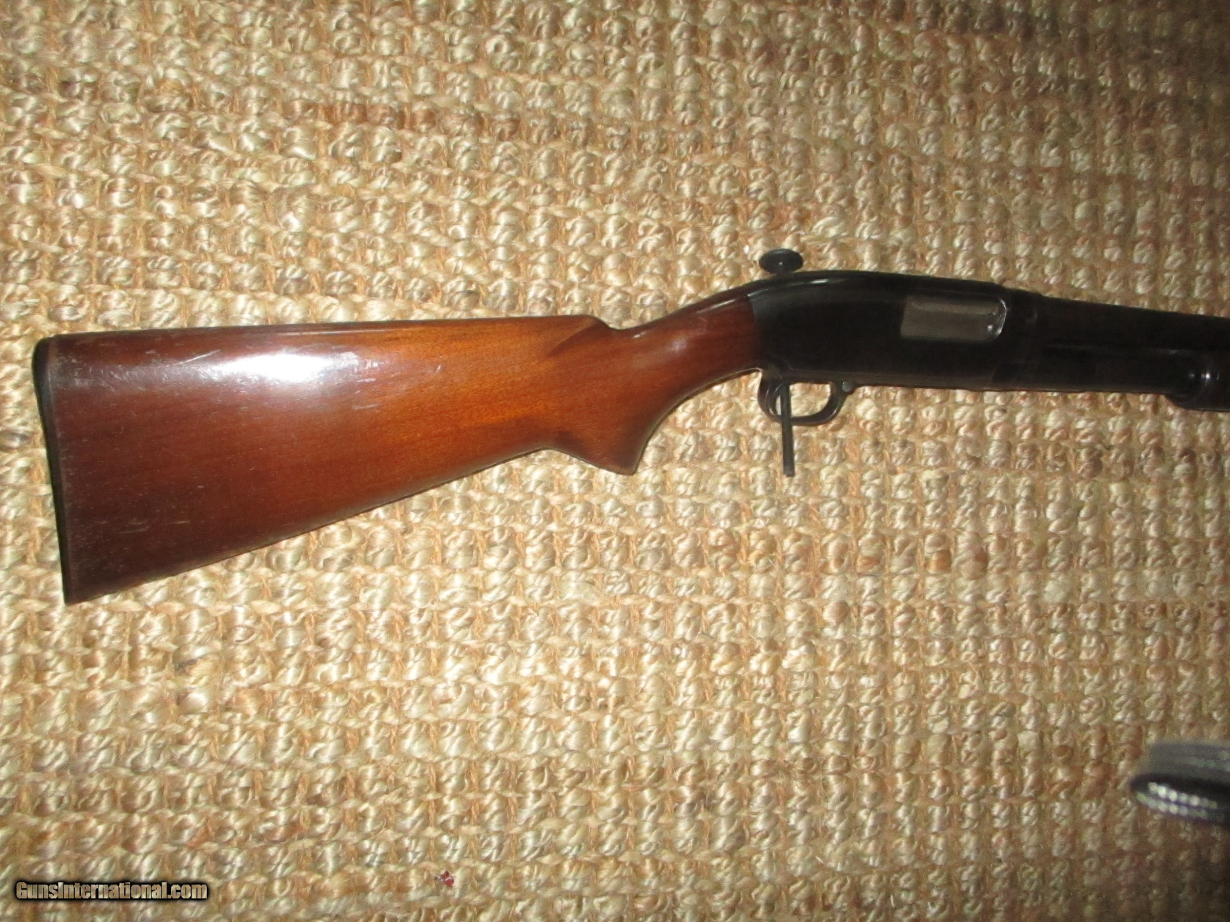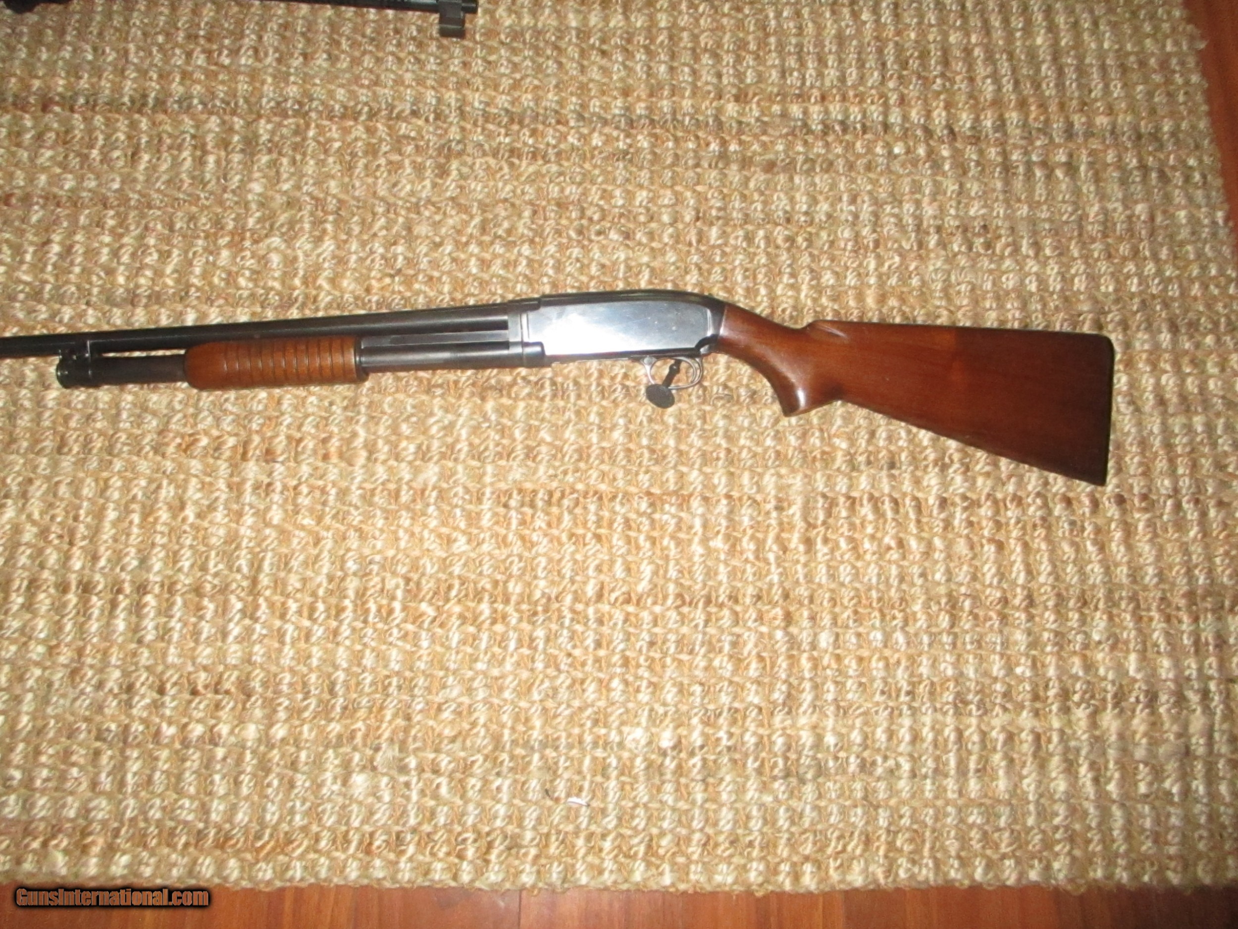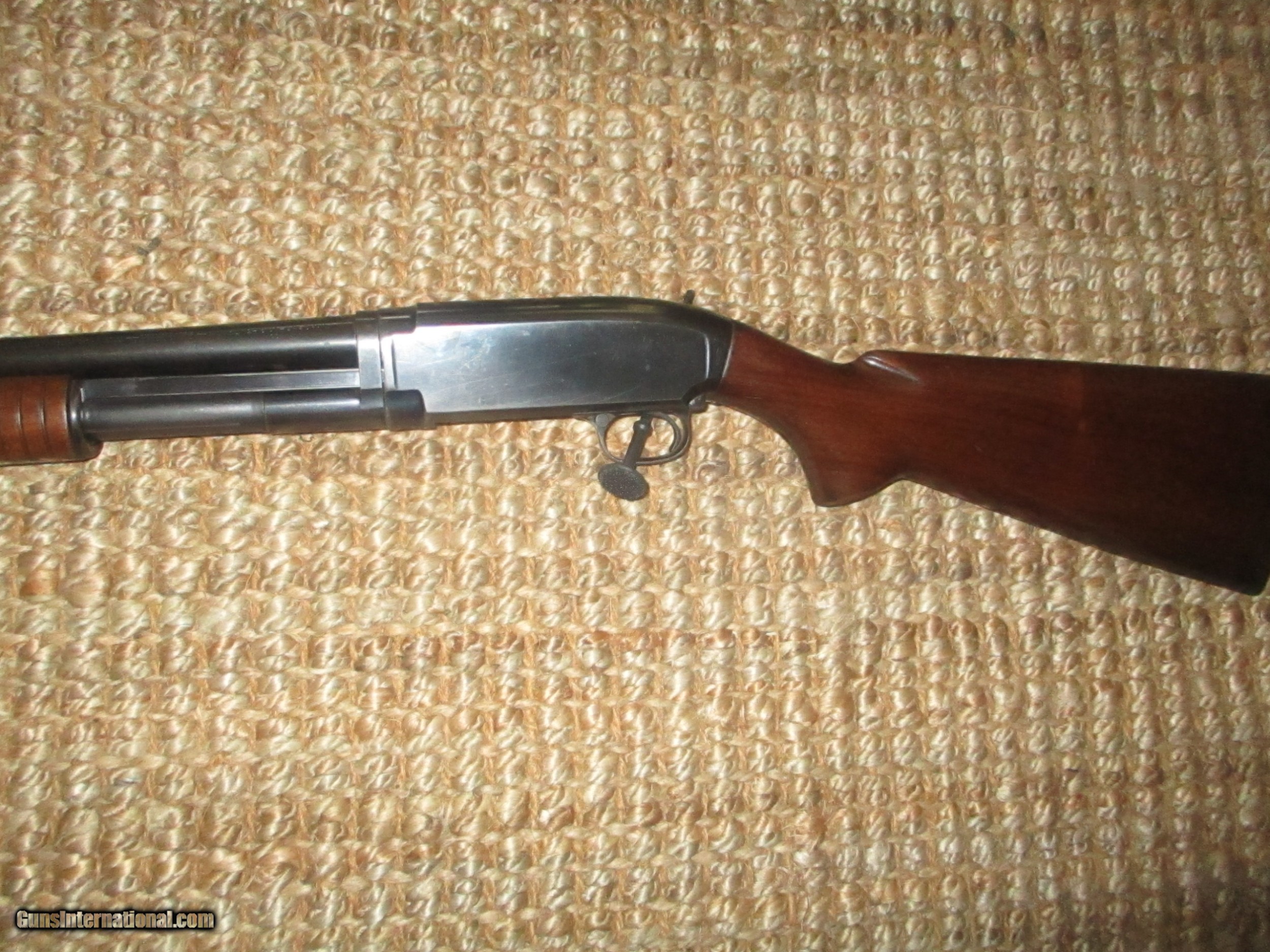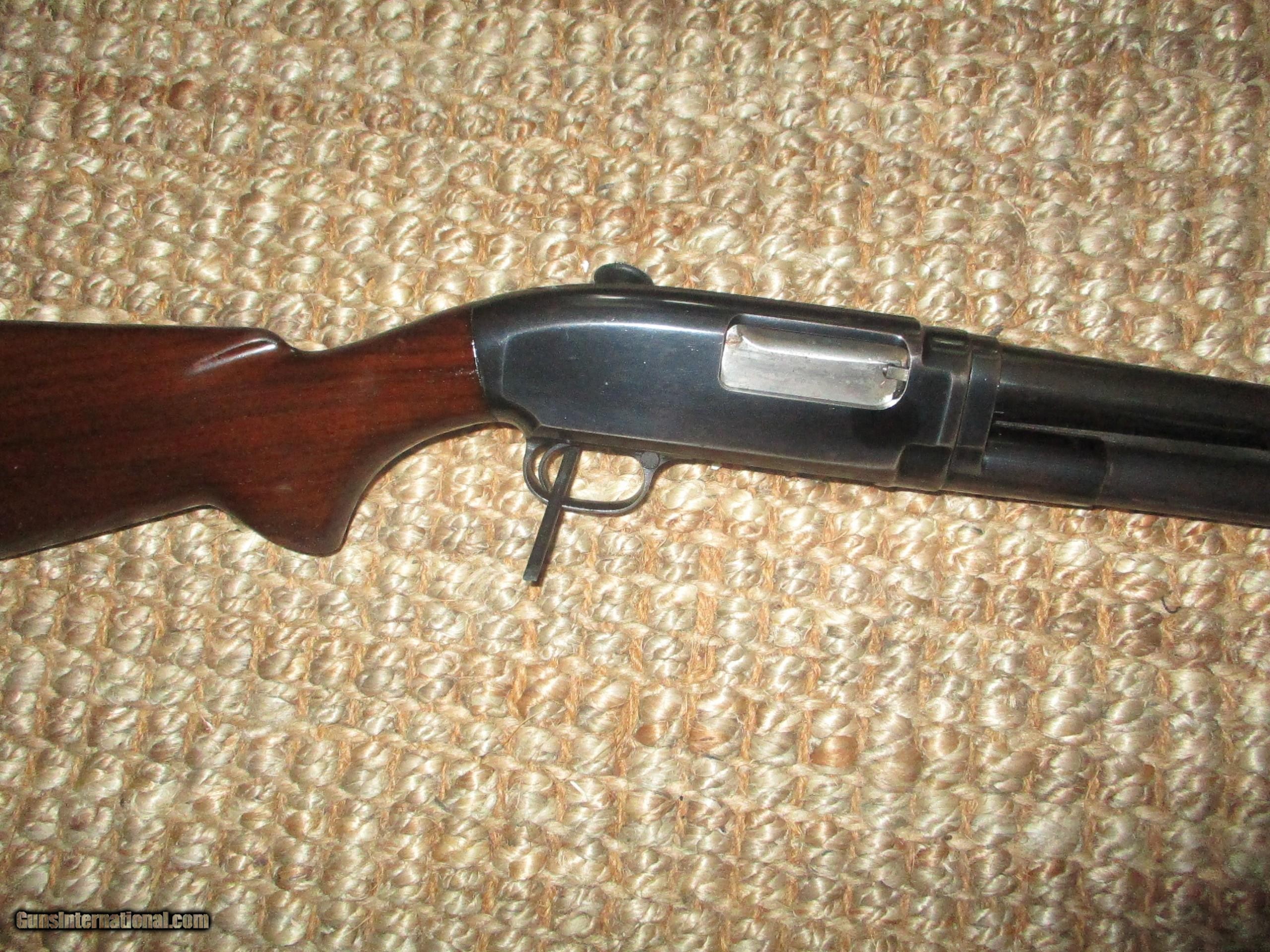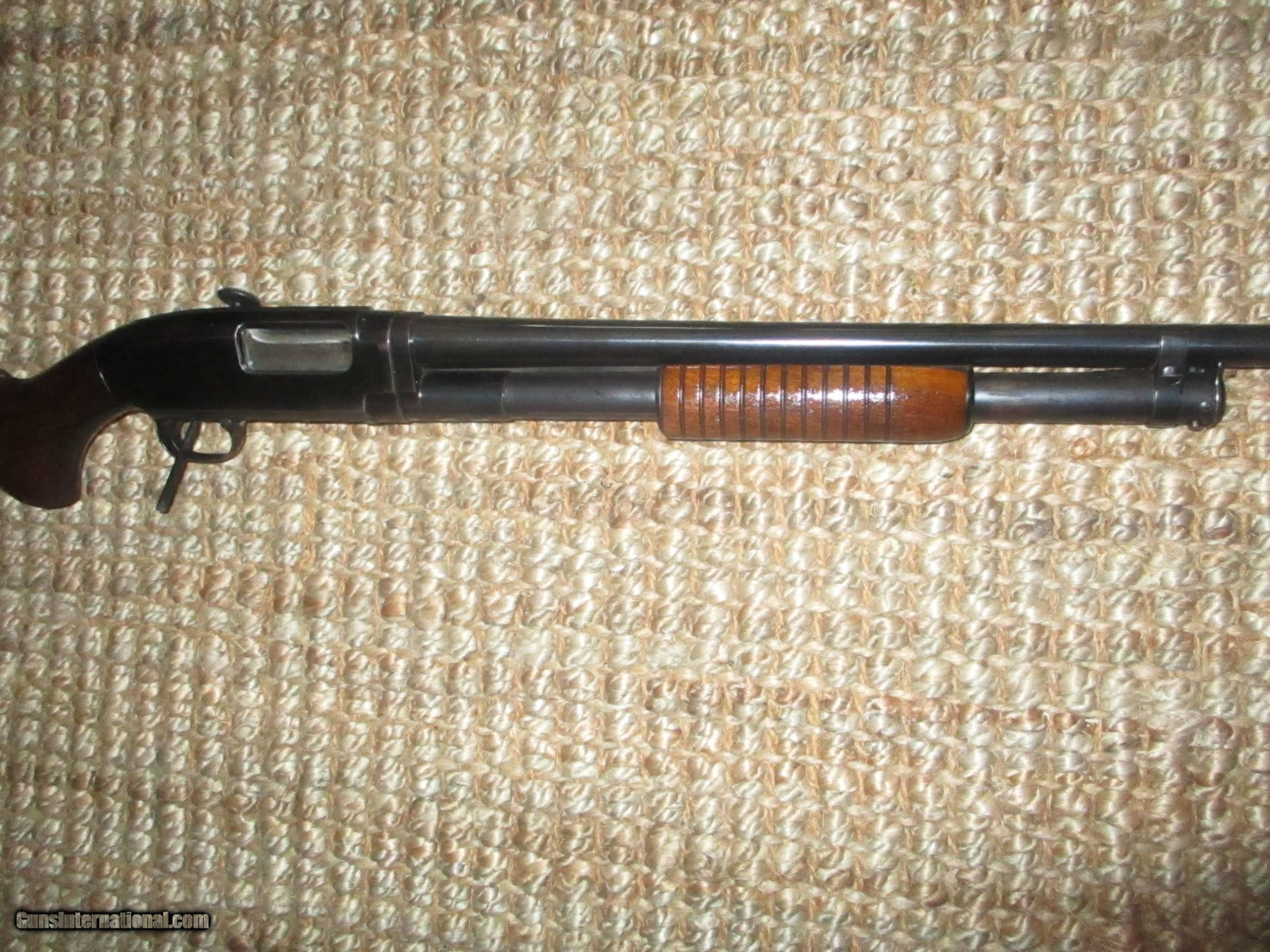 Description: 28" Win. steel bbls., choked modified, American walnut stock & small forearm with 11 band smooth botton, no cracks or hairlines, minor scratches & few pings, 95% bbl. blue, 90%+ receiver, very tight, shot little: SOLD |