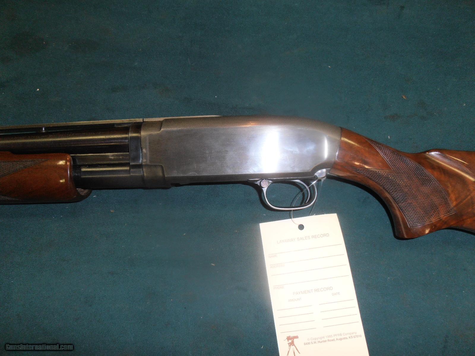 Description: Winchester model 12, 16ga with 26" vent rib barrel, factory marked Full but has a weaver choke system. 2.75" chamber. It has a vent rib, and appears to be factory, however it doesn't have the offset proof marks I normally see. SN is 6797xx. I don't know for sure, but I think they called this model the deluxe with the checkered stock and forarm. Has a Bishop recoil pad. Nice old gun! Email me if you would like these pics sent to you, they will come through bigger and better than on the listing page here. Email me with any Beretta, Benelli, Sako, Franchi, Stoeger, or Uberti needs. Email me with any questions. I am a store front dealer, and I will close s if the gun sells locally. Once ahas reached my reserve, I will pull it from my shelves. Please check your local laws to confirm it is legal to own in your state! Buyer pays $25 shipping and insurance to your FFL, in the lower 48. AK, HI or PR is extra. I will ship to California, NO PROBLEM! All my guns come with a non firing, 3 day unconditional return privilege, from the day UPS delivers to your dealer. Buyer pays shipping both ways if the gun comes back. I can add a new hard case by PLANO for secure shipping for $25 if the buyer wishes (highly recommended, cheap insurance, really helps keep the UPS monster from eating my guns!). No sales tax on guns ship out of Kansas, guns sold in Kansas are subject to Kansas sales tax. I am a licensed FFL, and will include a copy of my FFL with the gun for your dealers records. I will ship to a C&R if the gun is eligible (you look it up!). I will ship to California, but you need to confirm the gun is legal where you are, California or other. I am always looking for good clean, old original Winchesters to buy, consign, or trade, especially pre '64's model 70's and model 54's. WE ALSO TRADE FOR CLASSIC CARS AND TRUCKS! I will leave feedback as soon as the buyer leaves feedback on me. Email me with any questions, and good luck! SOLD |