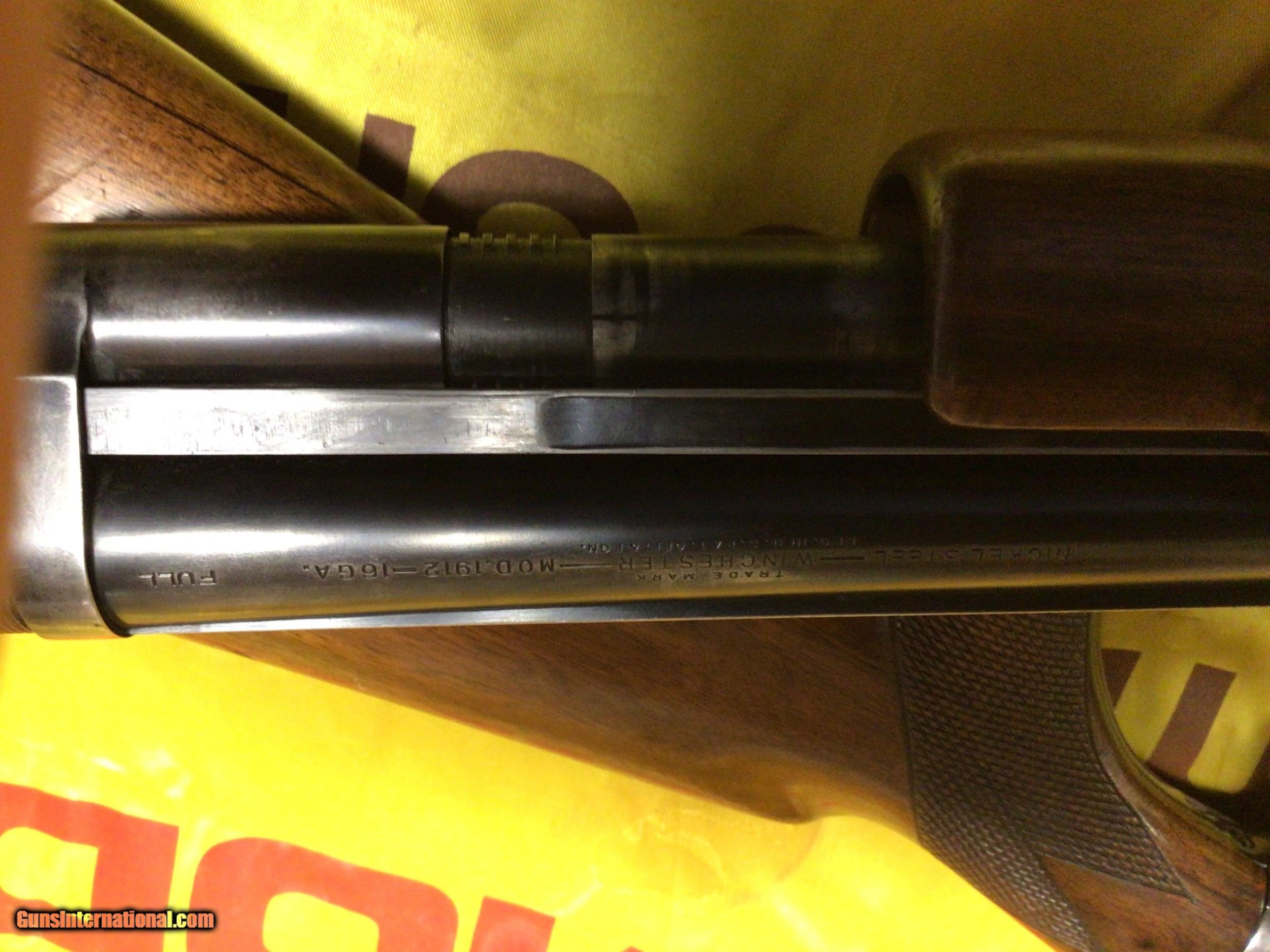 Description: winchester model 1912 16ga solid rib ser # 98541 nickel steel full choke good tight gun to bad about pad added 13 3/8 to wood lop 14 1/4 2 9/16 chamber SOLD |