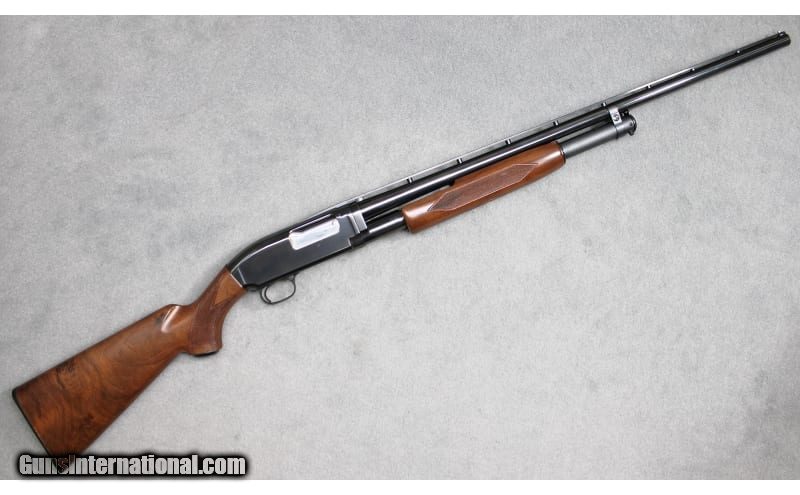 Description: Winchester Model 12 pump-action shotgun chambered in 20 Gauge. Features include a 26-inch barrel with 2-3/4 inch chamber and fixed Improved Cylinder choke. Produced in Japan, the serial number (MT1257) suggests that the shotgun was produced post-1980. No accessories. 20 Gauge SOLD Chambers: 2.75 inch Barrels: 26 inch Stock Dimensions: 14 inch LoP Butt Pad: Checkered Plastic Sights: Silver Front Bead on Ventilated Rib Chokes: Fixed Improved Cylinder Item Location: Fort Worth, TX |
