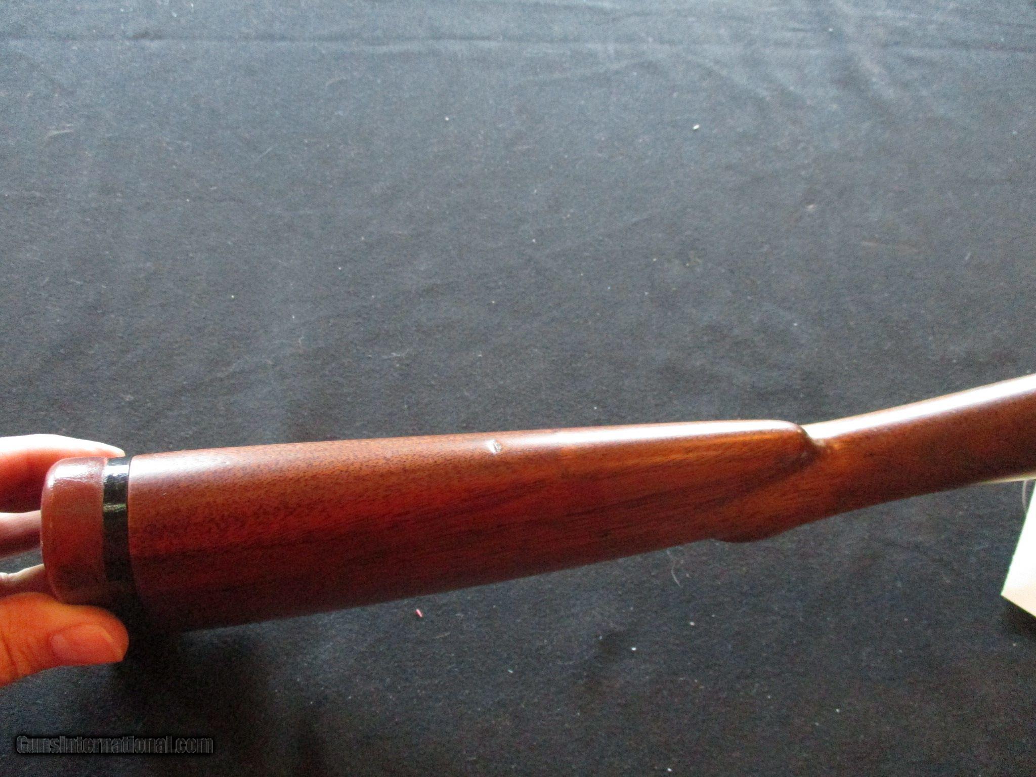 Description: Winchester Model 12, 20ga, 2.75" chamber (stamped on the barrel), plain barrel, fixed full choke. SN is early, 158xx, both numbers match. The gun has a correct Winchester pad (not a REPO). The gun has been expertly restored, nice clean gun! Email me if you would like these pics sent to you, they will come through bigger and better than on the listing page here. Email me with any questions. I am a store front dealer, and I will close s if the gun sells locally. Once ahas reached my reserve, I will pull it from my shelves. Please check your local laws to confirm it is legal to own in your state! Buyer pays $25 shipping and insurance to your FFL, in the lower 48. AK, HI or PR is extra. I will ship to California, NO PROBLEM! All my guns come with a non firing, 3 day unconditional return privilege, from the day UPS delivers to your dealer. Buyer pays shipping both ways if the gun comes back. I can add a new hard case by PLANO for secure shipping for $25 if the buyer wishes (highly recommended, cheap insurance, really helps keep the UPS monster from eating my guns!). No sales tax on guns ship out of Kansas, guns sold in Kansas are subject to Kansas sales tax. I am a licensed FFL, and will include a copy of my FFL with the gun for your dealers records. I will ship to a C&R if the gun is eligible (you look it up!). I will ship to California, but you need to confirm the gun is legal where you are, California or other. I am always looking for good clean, old original Winchesters to buy, consign, or trade, especially pre '64's model 70's and model 54's. WE ALSO TRADE FOR CLASSIC CARS AND TRUCKS! I will leave feedback as soon as the buyer leaves feedback on me. Email me with any questions, and good luck! SOLD |