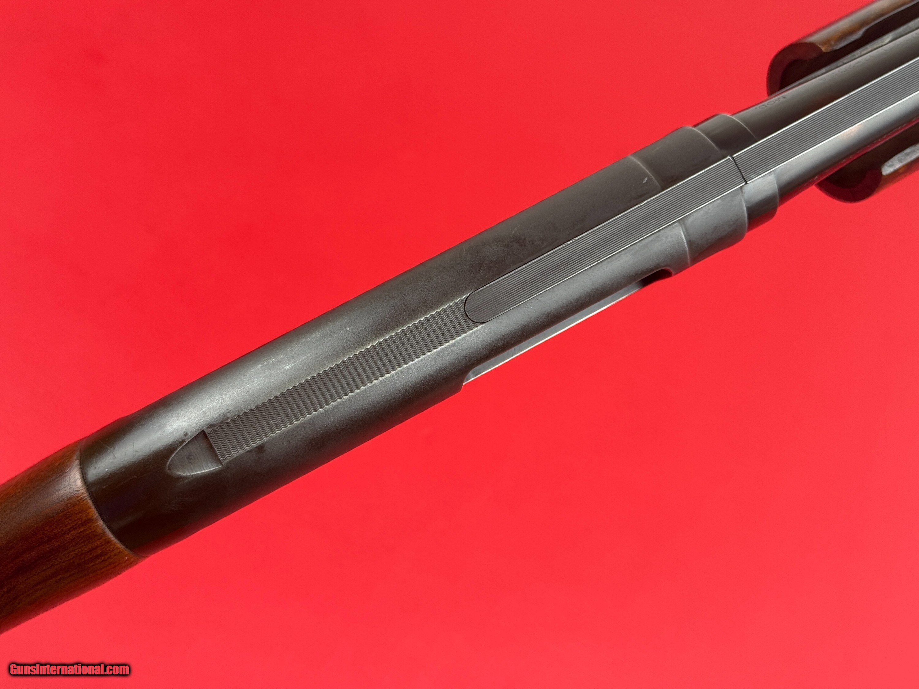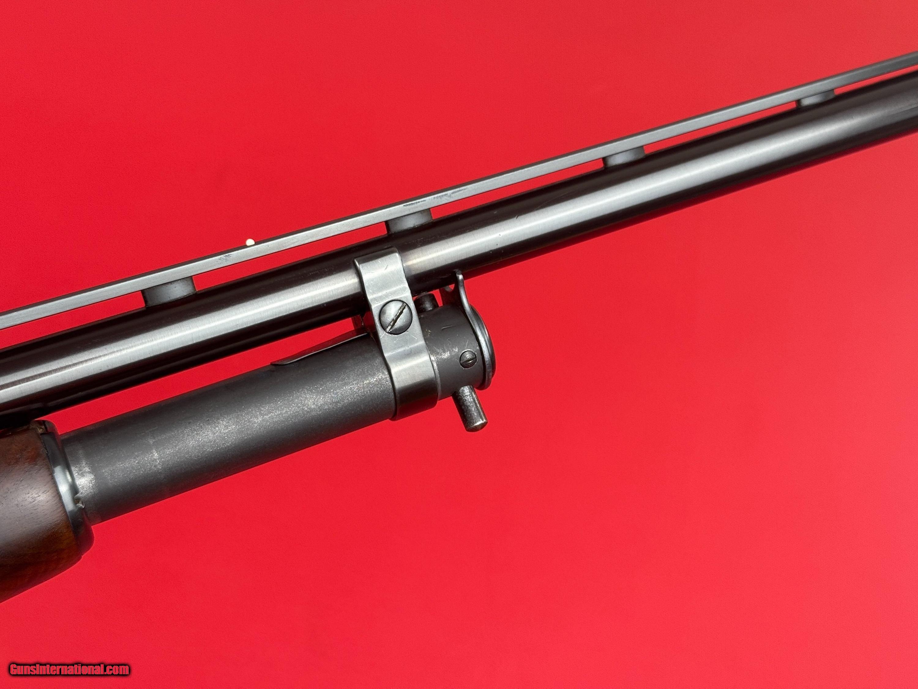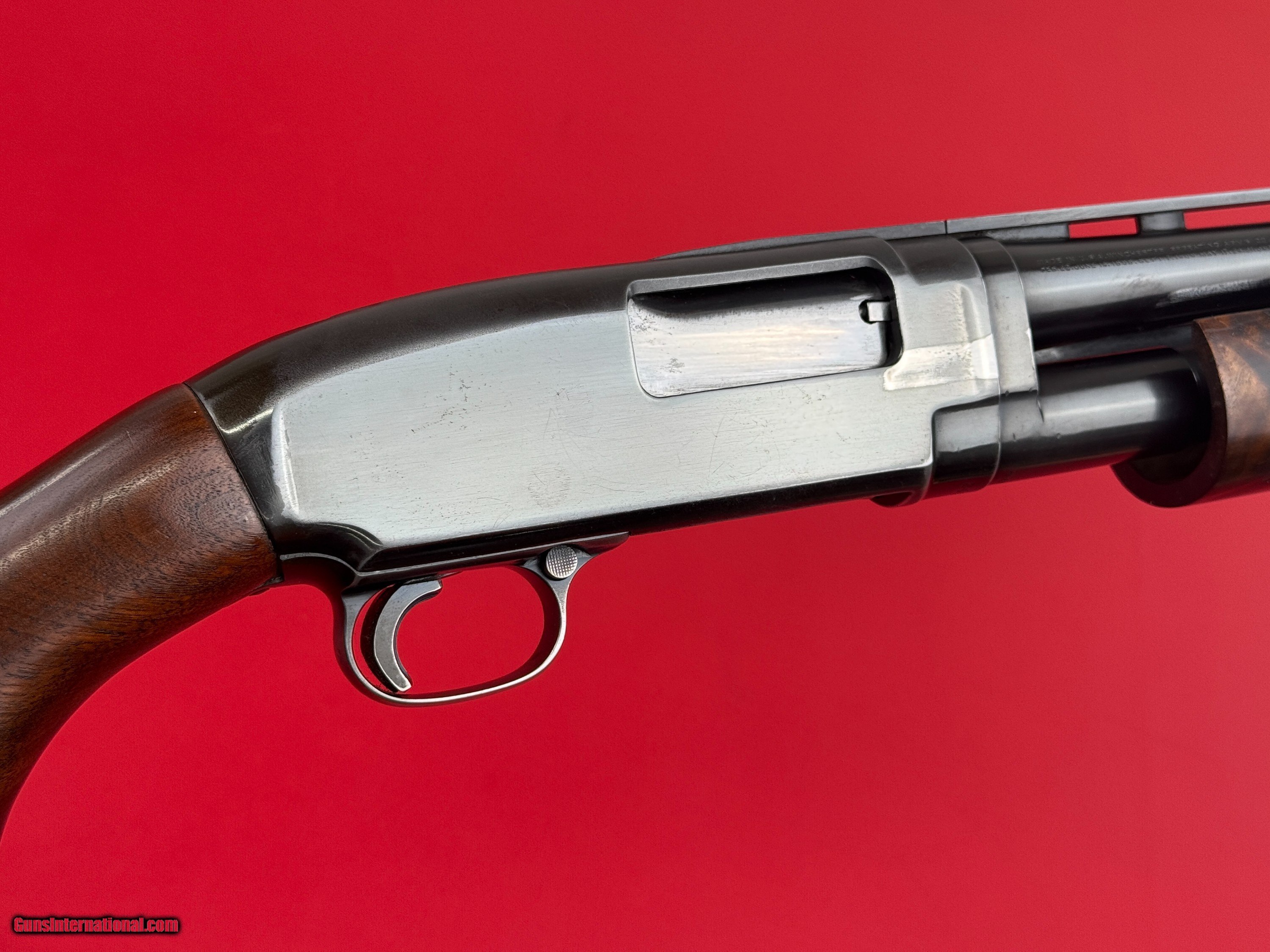 Description: Offered for sale is a classic Winchester Model 12 chambered in 20 gauge, manufactured in 1923. This early production shotgun features a 26" vent rib barrel with a modified choke, ideal for upland game or clays. The walnut stock and forearm remain in very good condition, displaying attractive grain with only minor handling marks consistent with age. The blued finish also rates very good, showing strong original coloration. The receiver has some light wear marks—please refer to photos for detailed condition. Mechanically, the action is smooth and locks up tight, true to the Model 12’s legendary reputation for reliability and craftsmanship. This firearm is a fine example of Winchester’s early 20th-century quality and would make a great addition to any collection or a reliable field gun. Don’t miss this opportunity to own a piece of American shotgun history in such well-preserved condition. FOR FULL PHOTO ALBUM ASK US FOR THE LINK! SPECS: