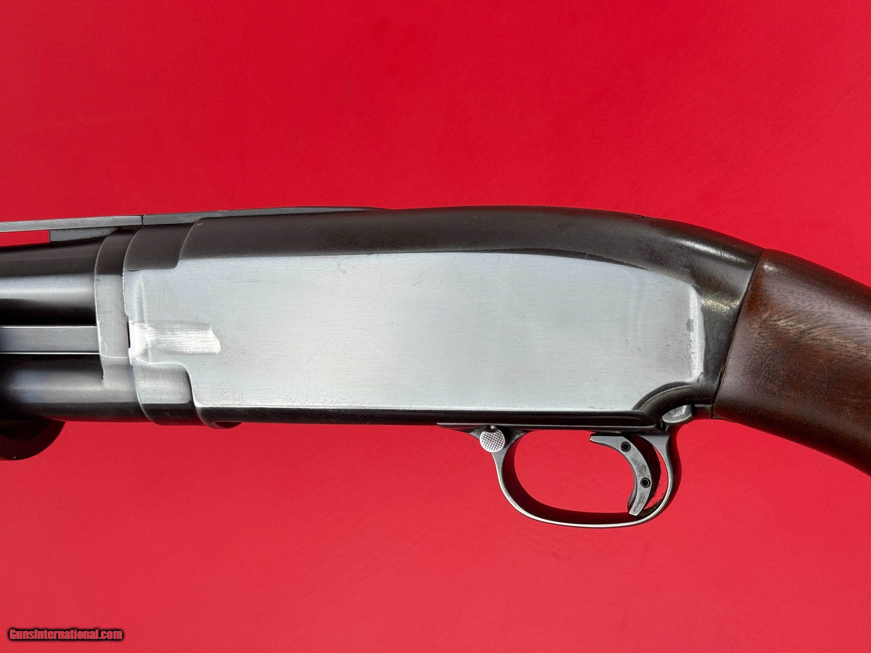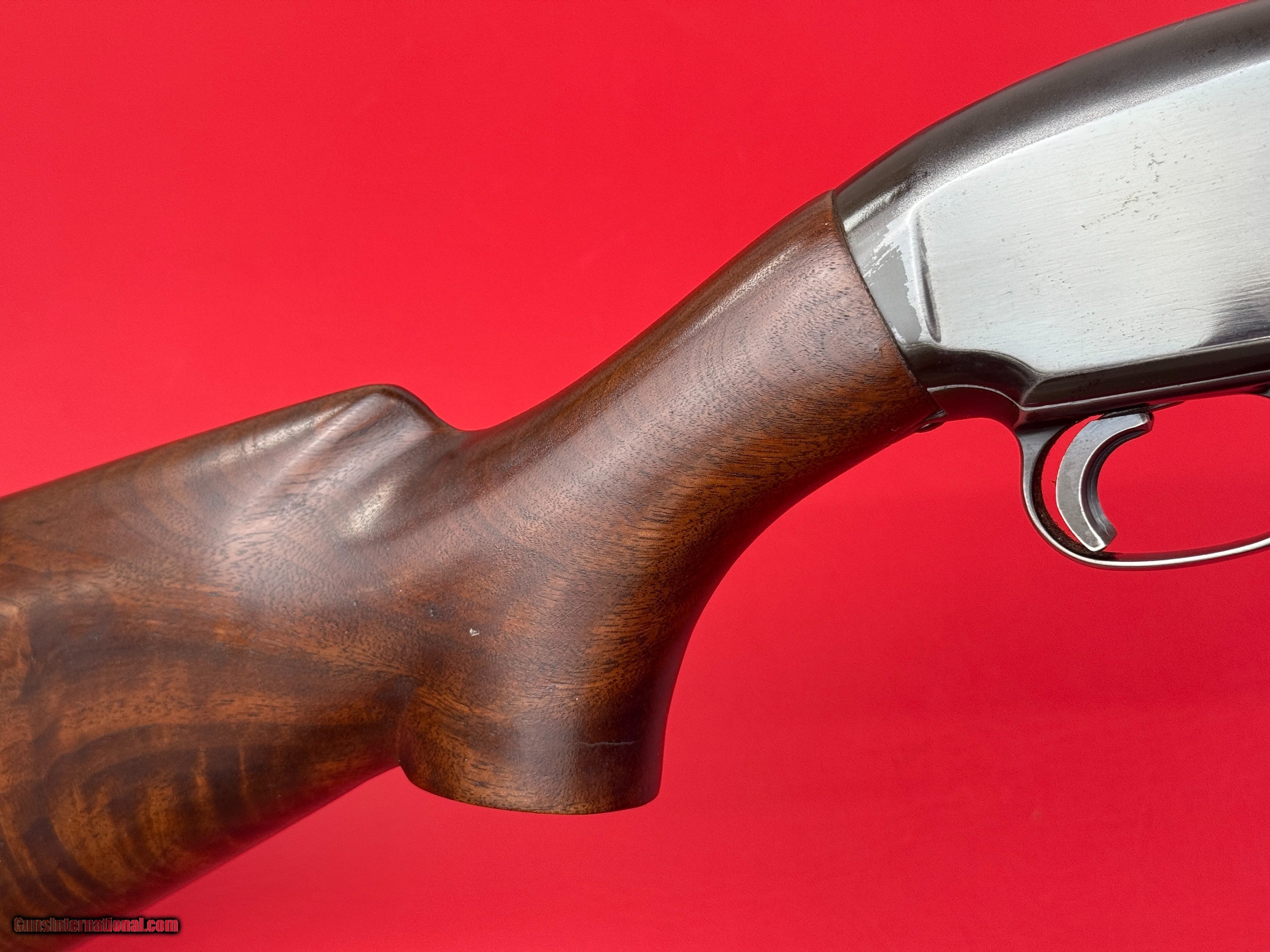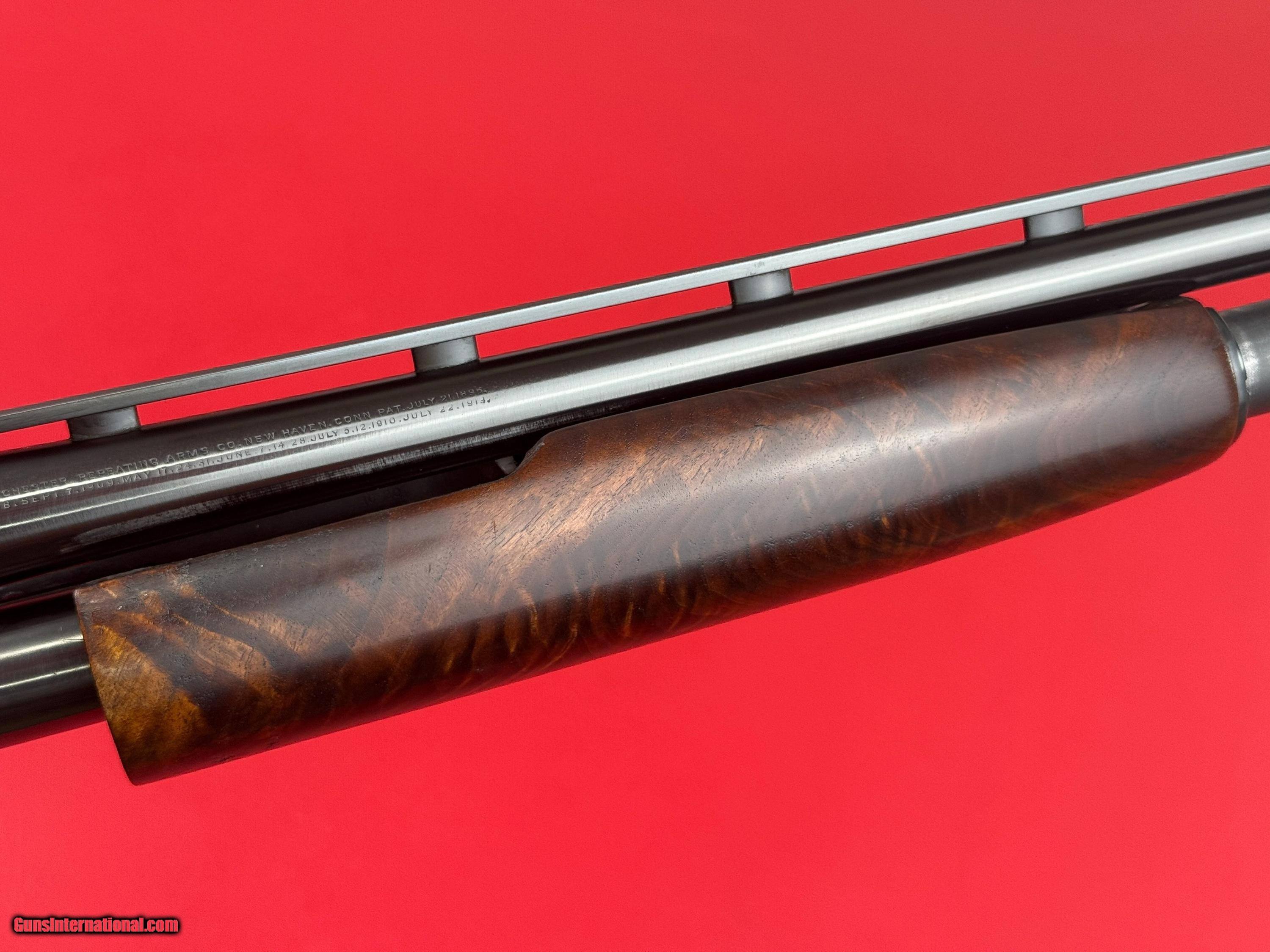 Description: Offered for sale is a classic Winchester Model 12 chambered in 20 gauge, manufactured in 1923. This early production shotgun features a 26" vent rib barrel with a modified choke, ideal for upland game or clays. The walnut stock and forearm remain in very good condition, displaying attractive grain with only minor handling marks consistent with age. The blued finish also rates very good, showing strong original coloration. The receiver has some light wear marks—please refer to photos for detailed condition. Mechanically, the action is smooth and locks up tight, true to the Model 12’s legendary reputation for reliability and craftsmanship. This firearm is a fine example of Winchester’s early 20th-century quality and would make a great addition to any collection or a reliable field gun. Don’t miss this opportunity to own a piece of American shotgun history in such well-preserved condition. FOR FULL PHOTO ALBUM ASK US FOR THE LINK! SPECS: