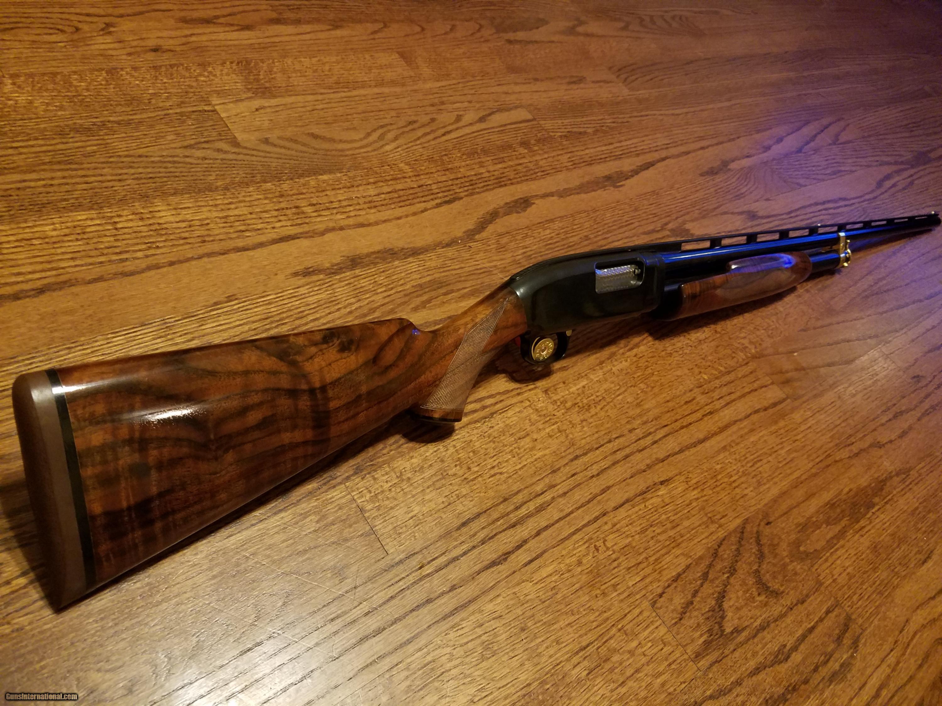 Description: Beautiful gun here restored by simmons. 20ga built and sold in 1955 Both have matching numbers receiver to barrel. Fixed full chokes vent ribb . 20ga 28in barrel & LOP 14".25 Stock has ding shown in picture. SOLD Condition: Clean Metal Condition: Clean blueing no pit Wood Condition: One small ding on stock Bore Condition: Smooth clean Barrel Type: Vent Action: Pump Triggers: Single Gauge Info: 20 |