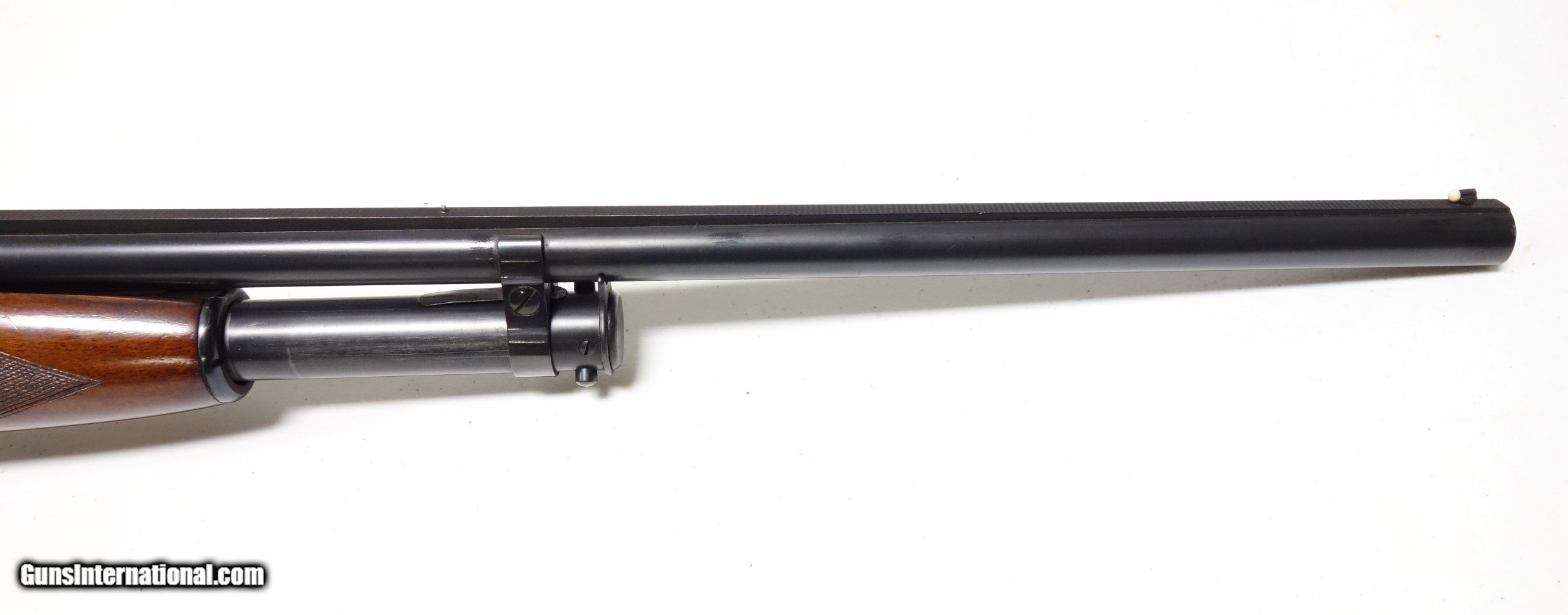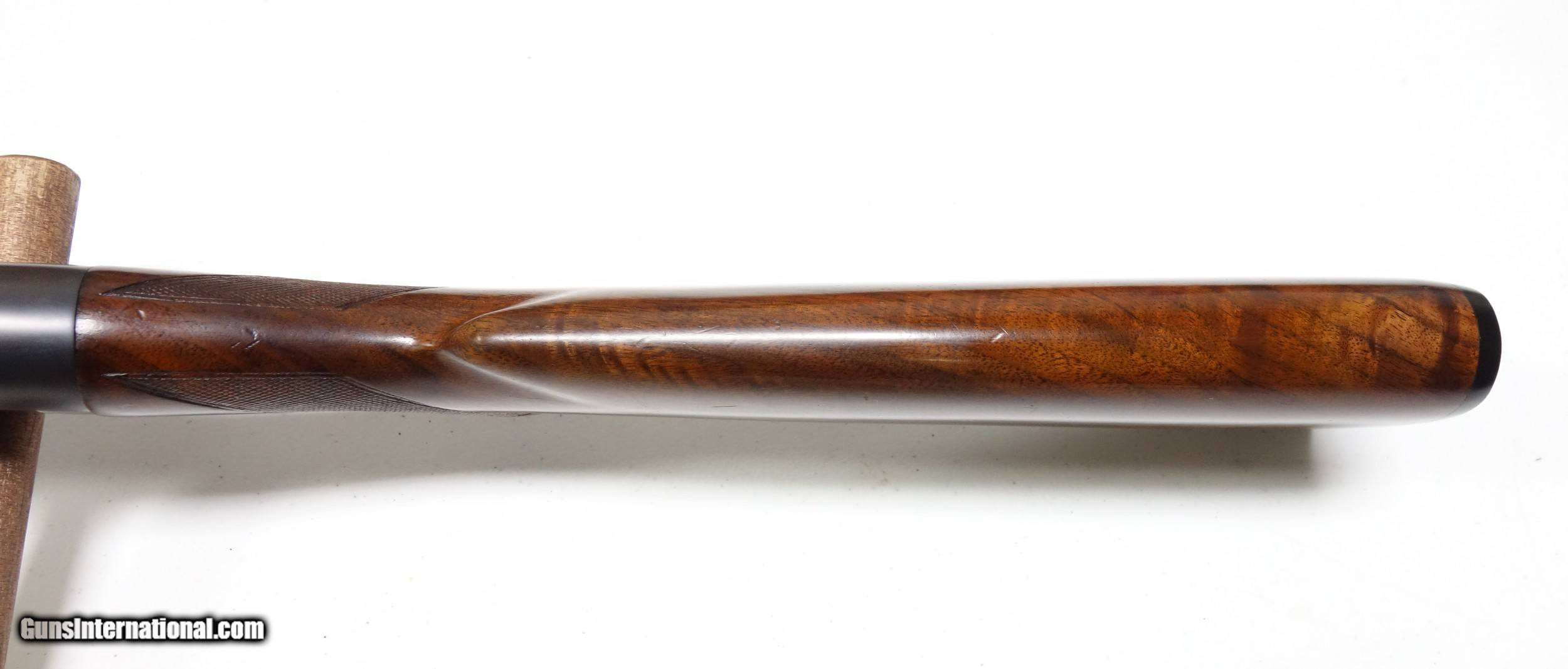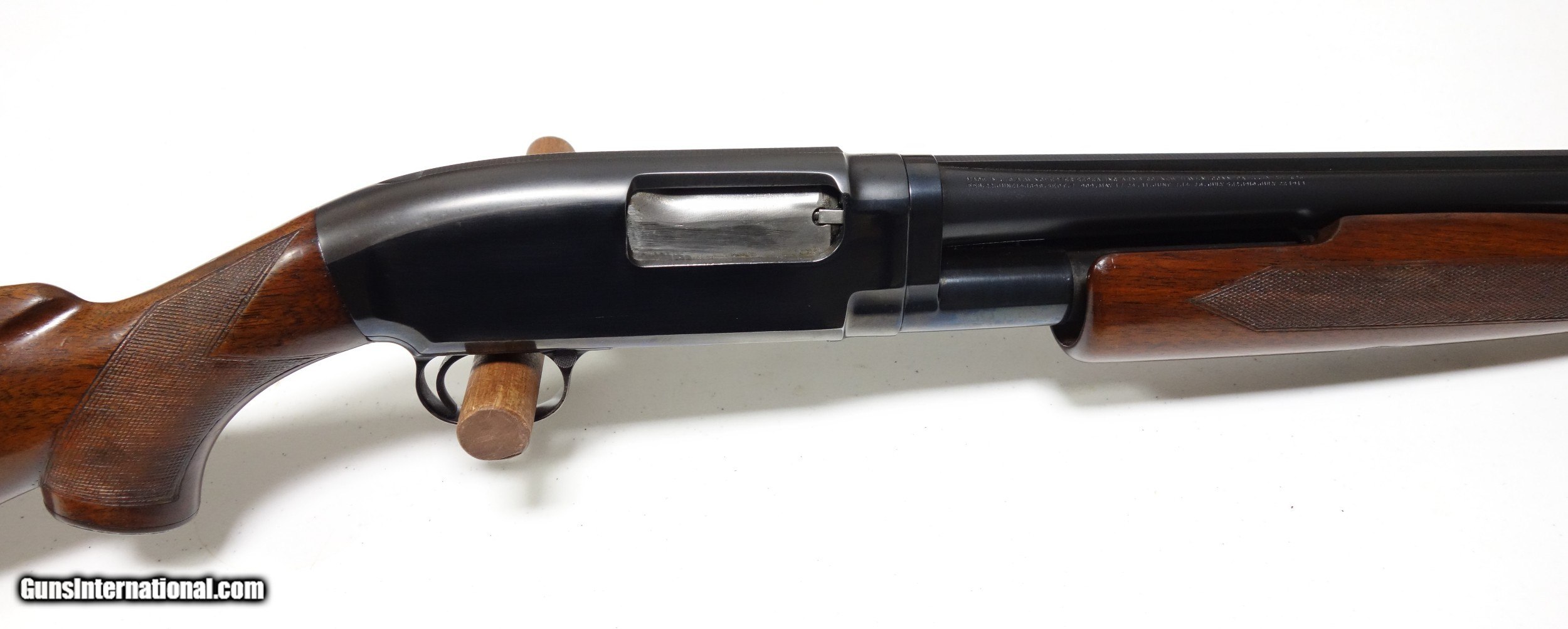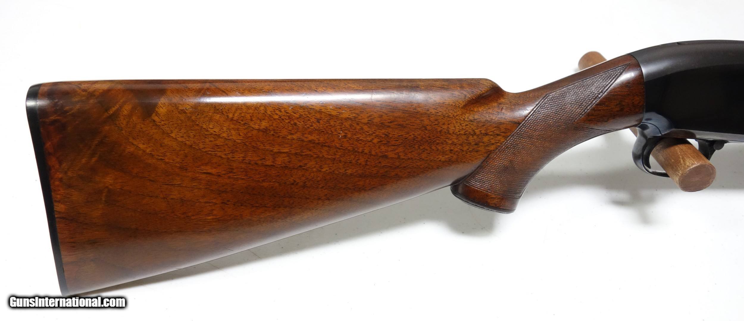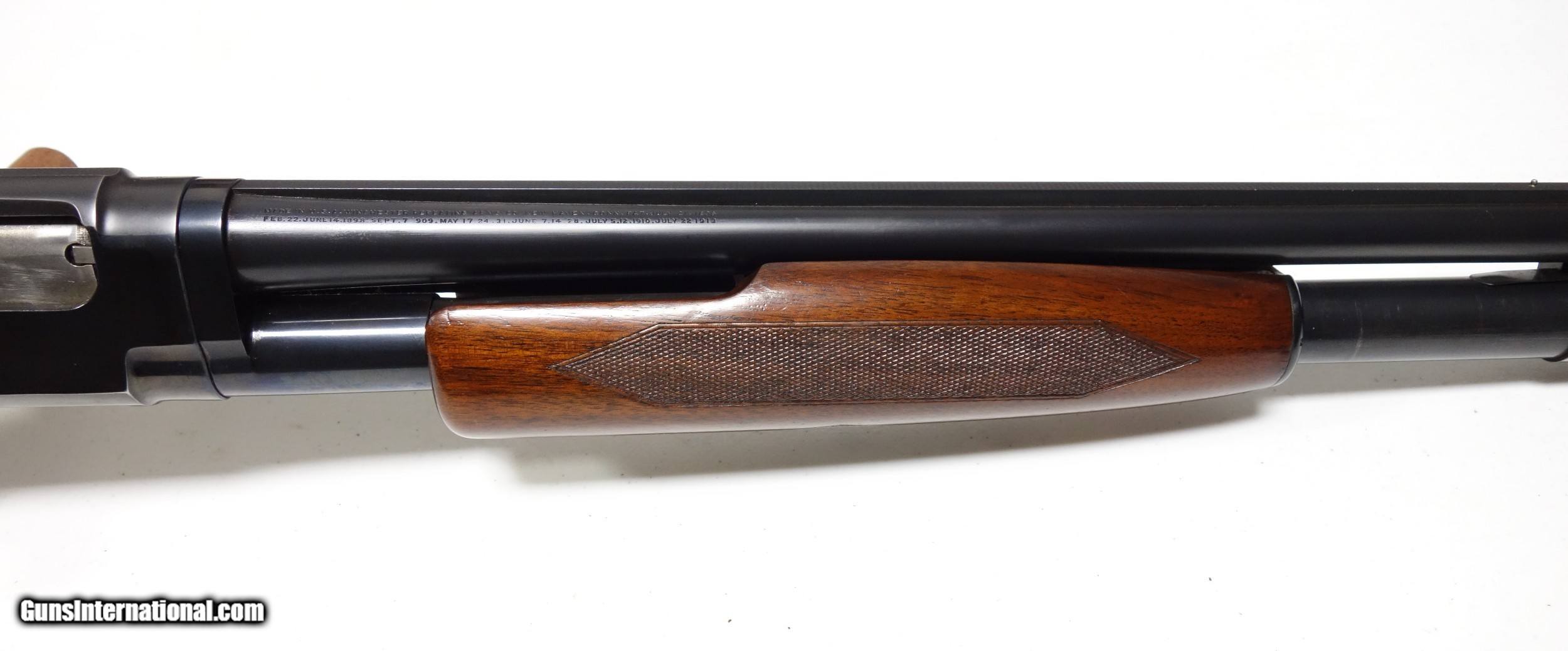 Description: Excellent condition Pre War Winchester Model 12 Skeet Grade in ultra rare 28 gauge! S/N 749269 made in 1937. 98% Blue, 97% Varnish. Most desirable 26" Solid Rib barrel choked SKEET. 2 7/8" chamber. Receiver is marked SKEET. Front magazine tube clamp is stamped "20" which occured frequently on original 28 gauges. I have carefully examined all of the internal and external components unique to genuine 28 gauge Model 12s, along with the various metal stampings and all appear positively correct and uncontrived. Special features of the 28 gauges included unique shell cut off (factory stamped "28"), high walled and differently shaped magazine follower, back of receiver stamped "28", bottom of magazine tube has different crimp than all other gauges. This shotgun is the real deal and one of the few chances you will ever have to add one of these to your collection! SOLD Curio/Relic: Yes |
